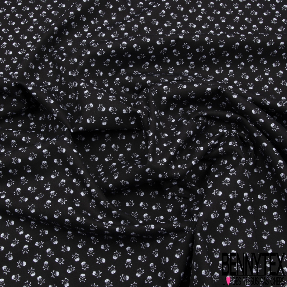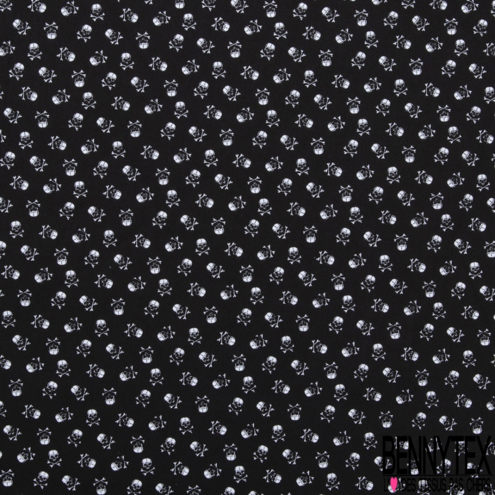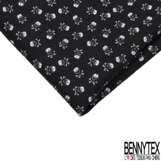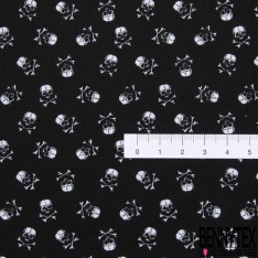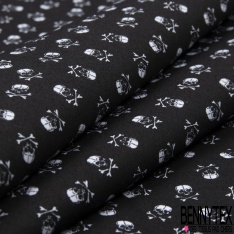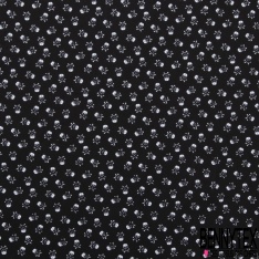 Coupon 3m coton imprimé petite tête de mort blanche fond noir