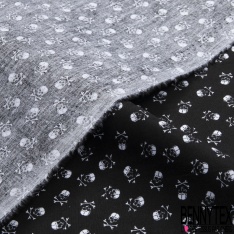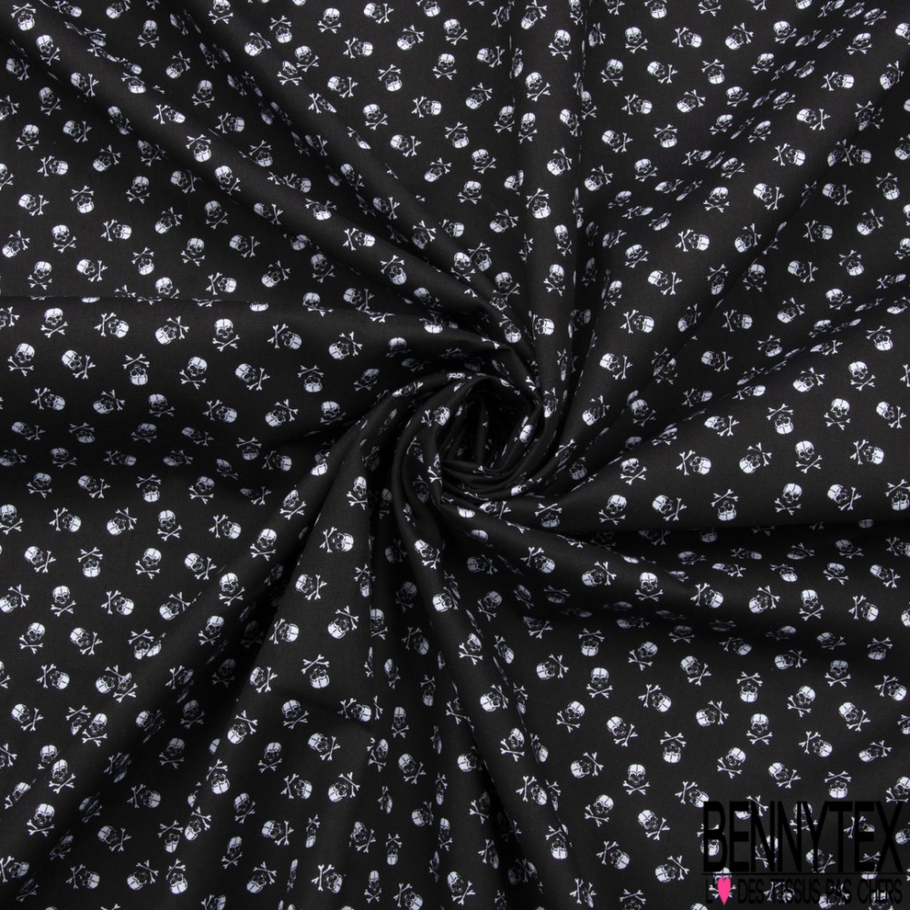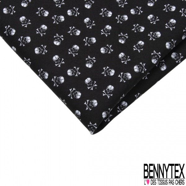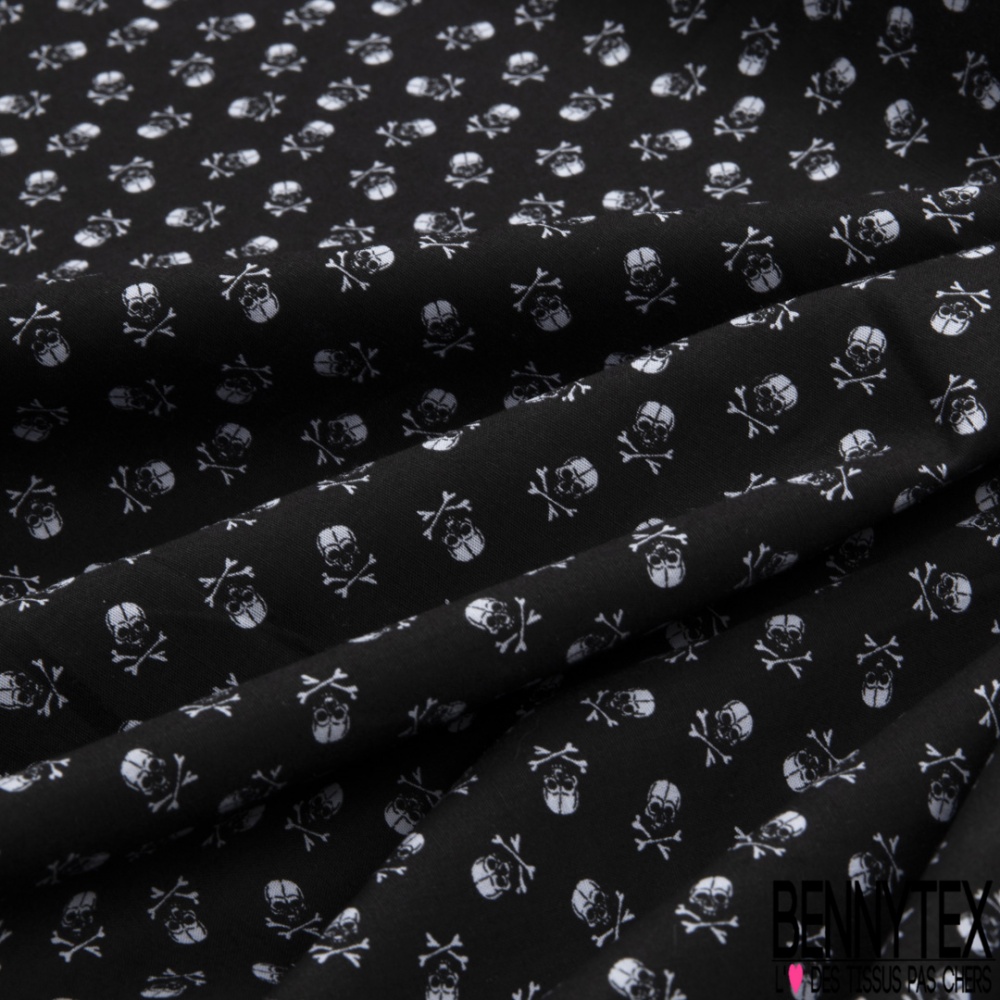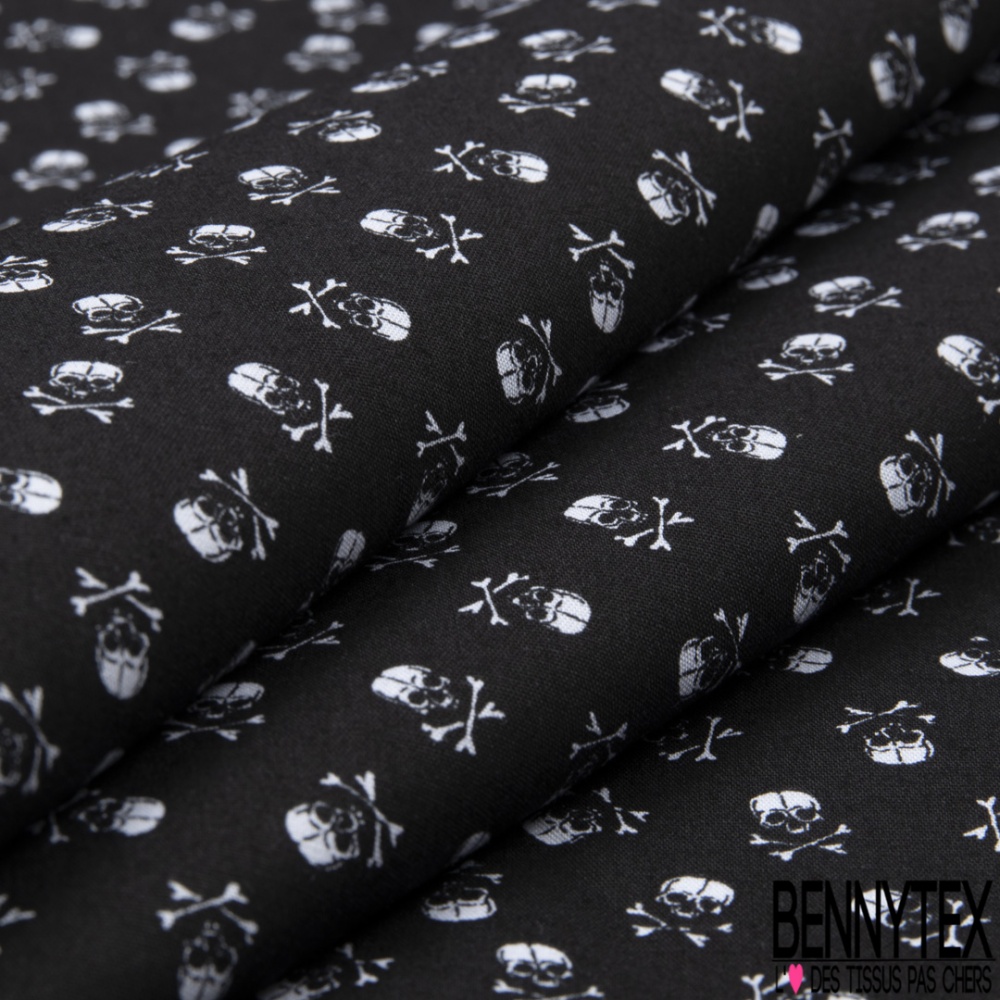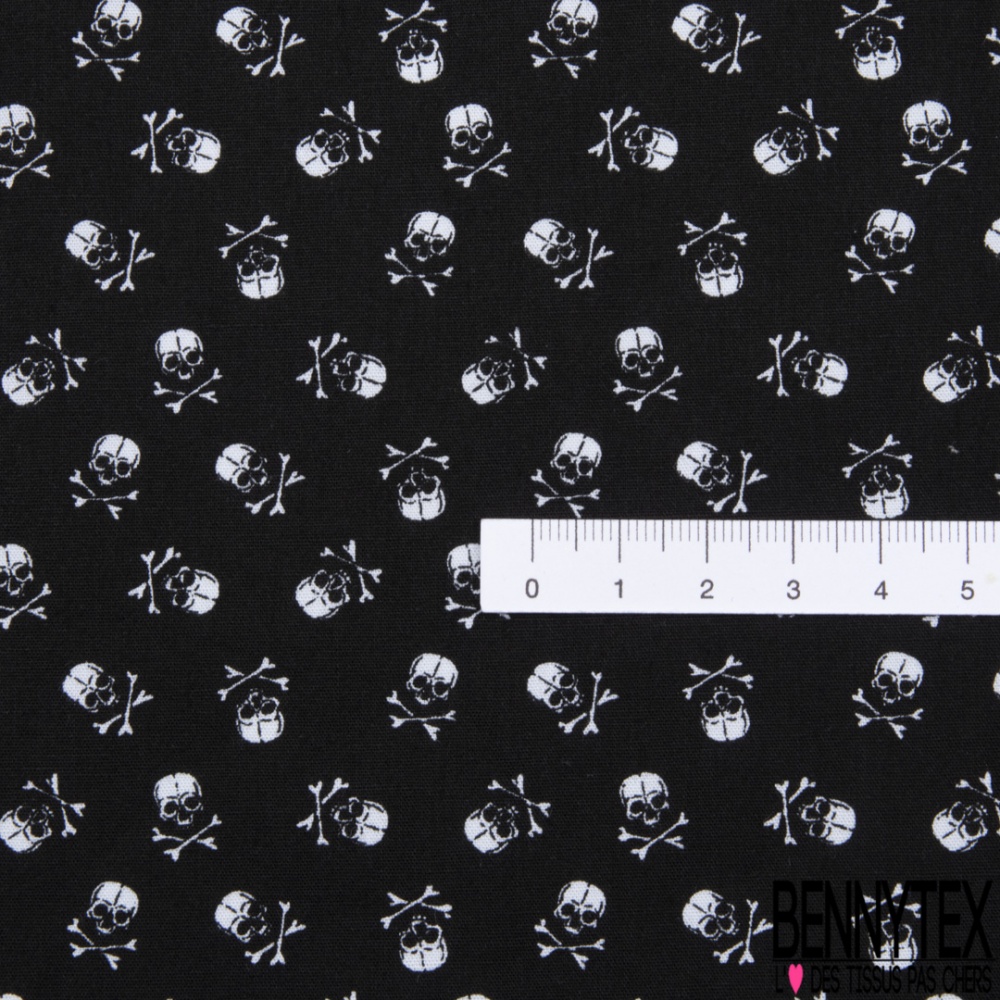 Laissez-vous séduire par le Coupon 3m coton imprimé petite tête de mort blanche fond noir