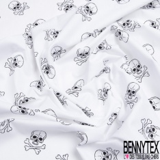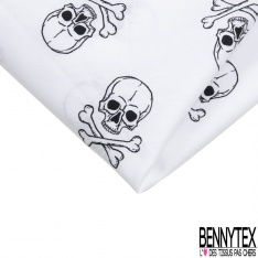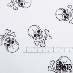 Coupon 3m coton imprimé grande tête de mort fond blanc