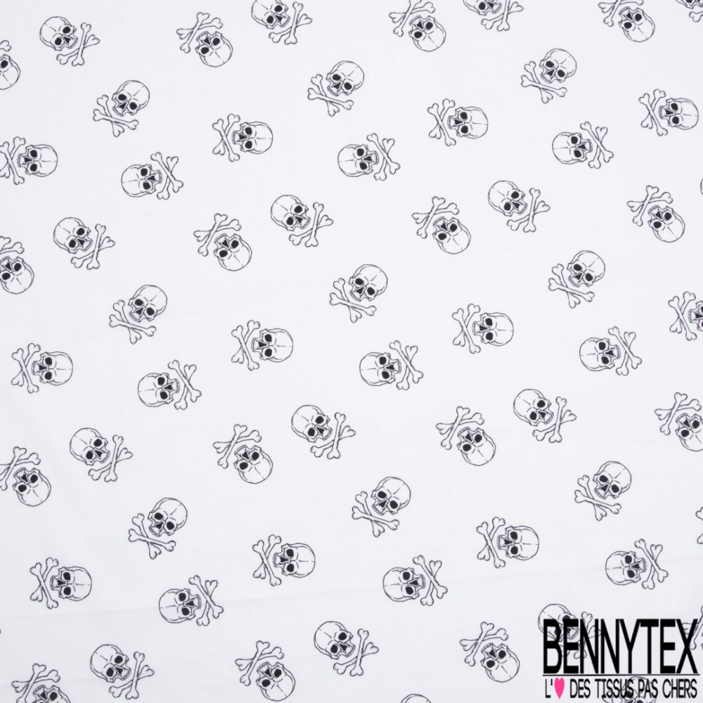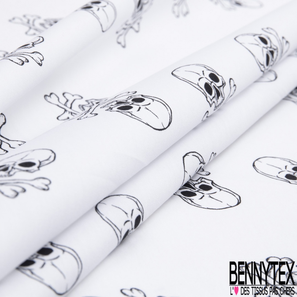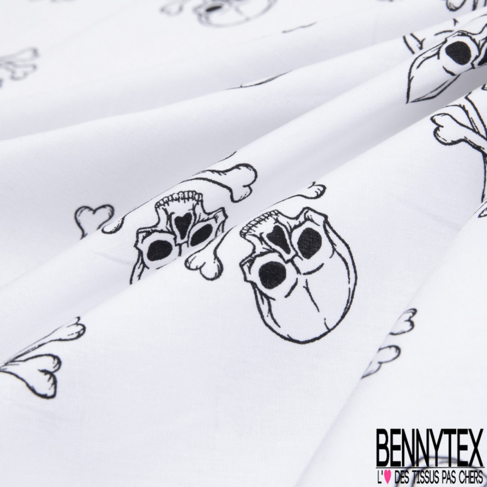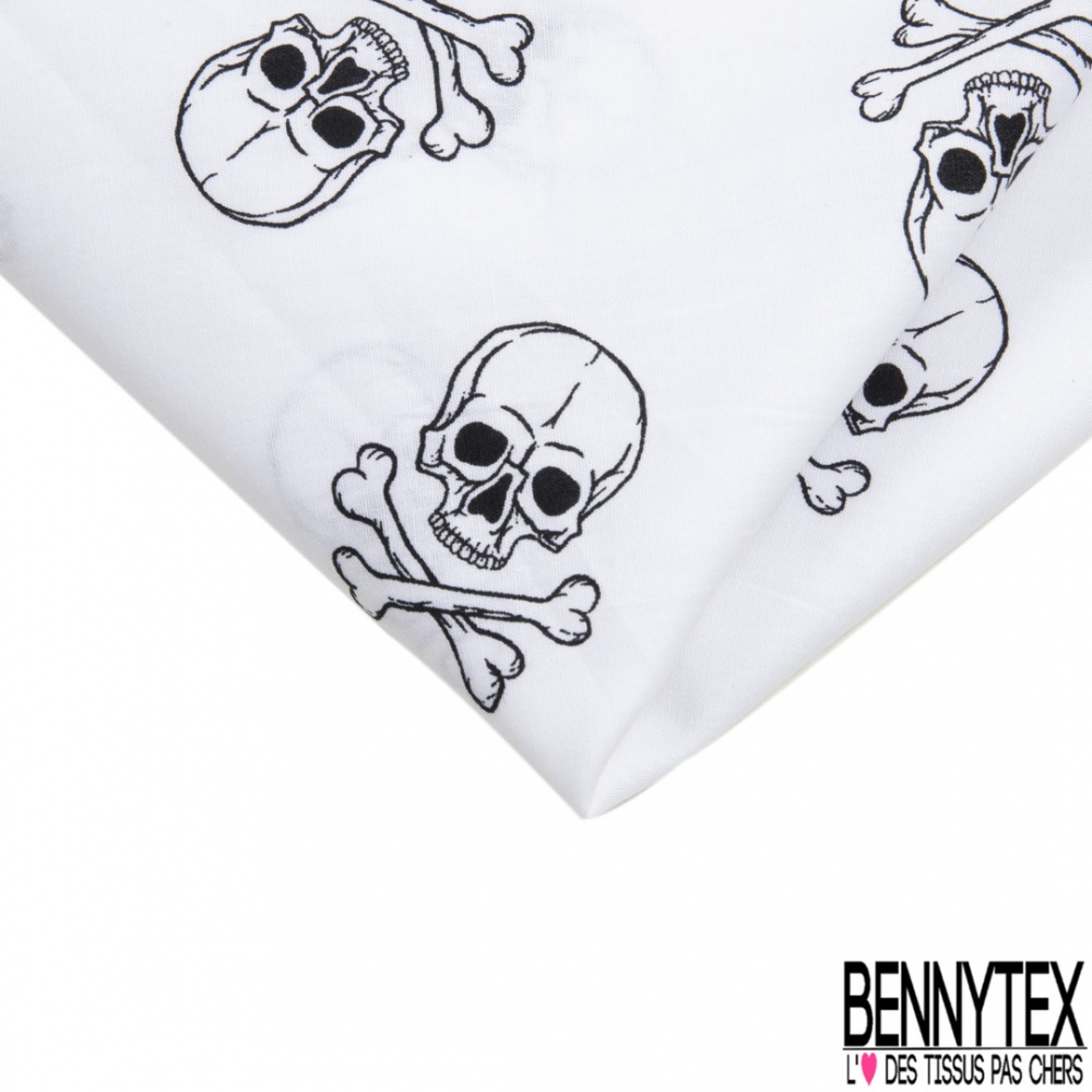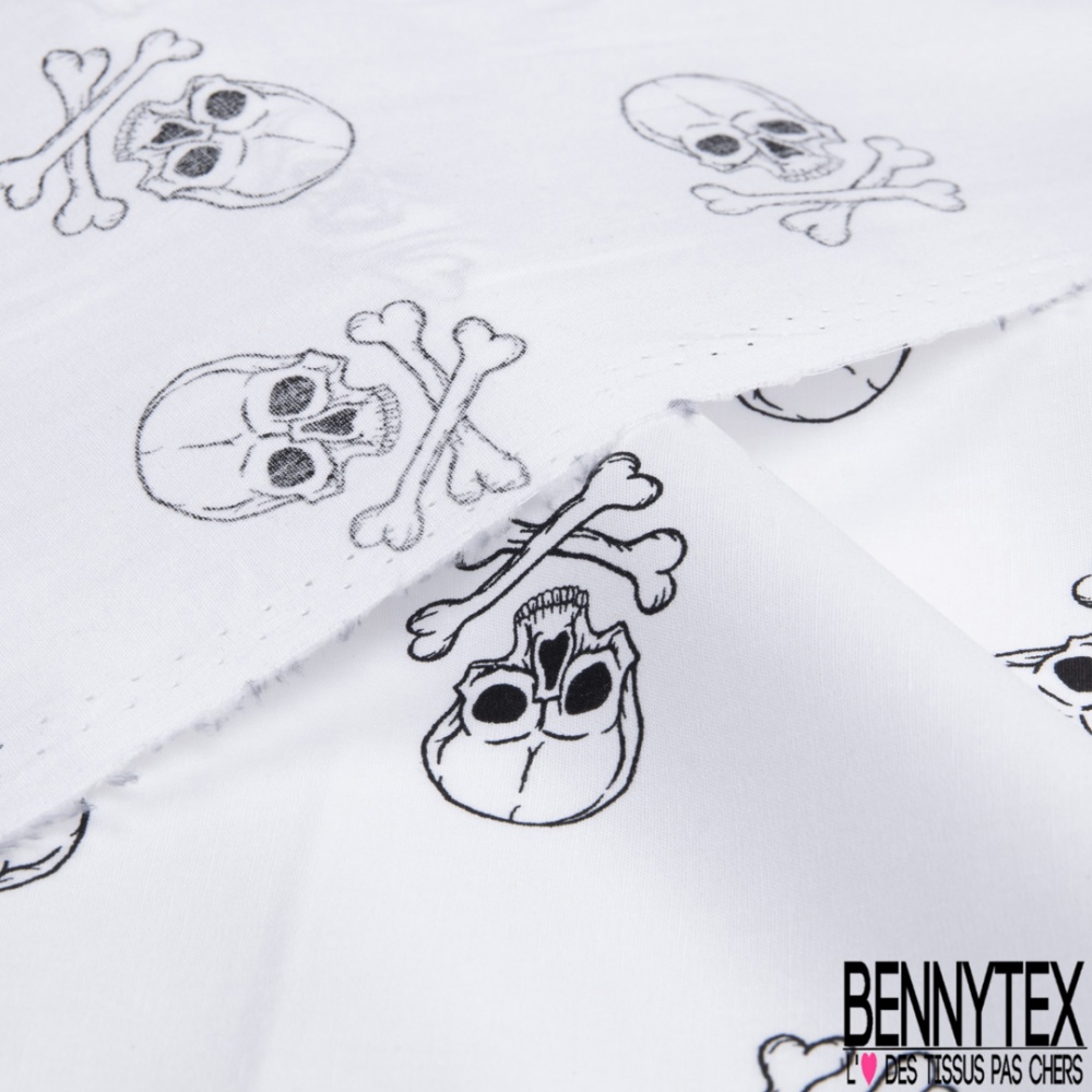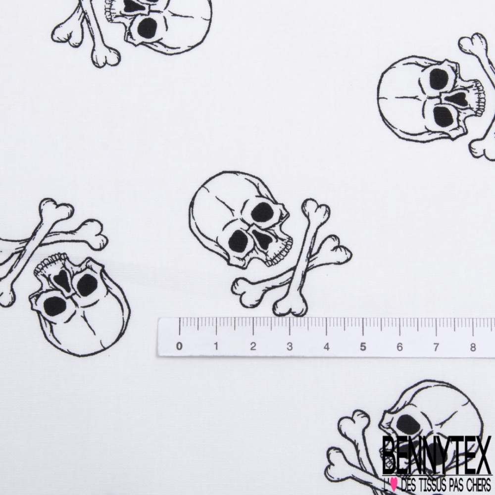 Laissez-vous séduire par le Coupon 3m coton imprimé grande tête de mort fond blanc