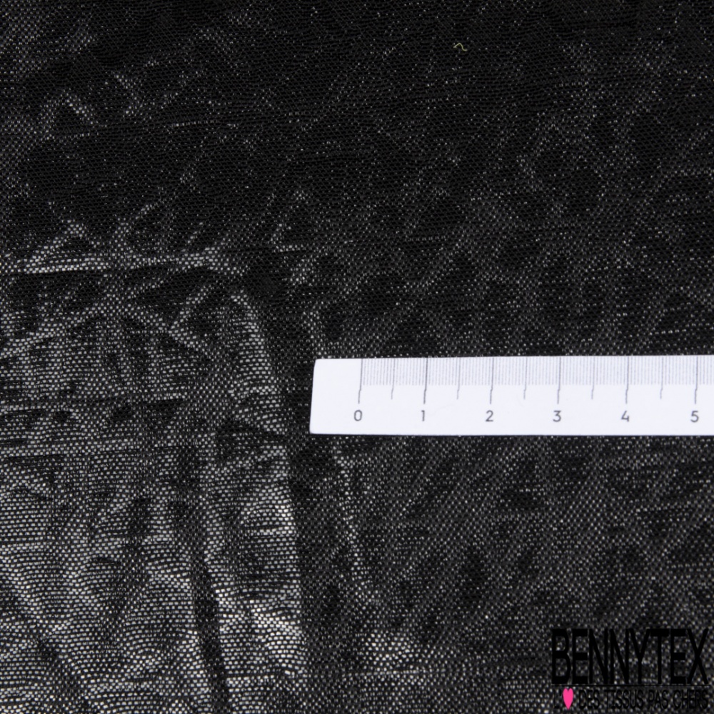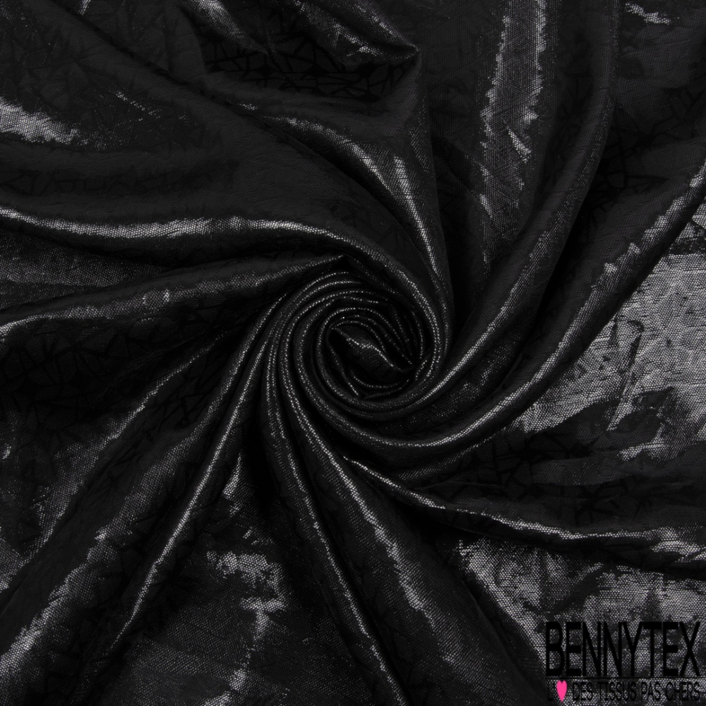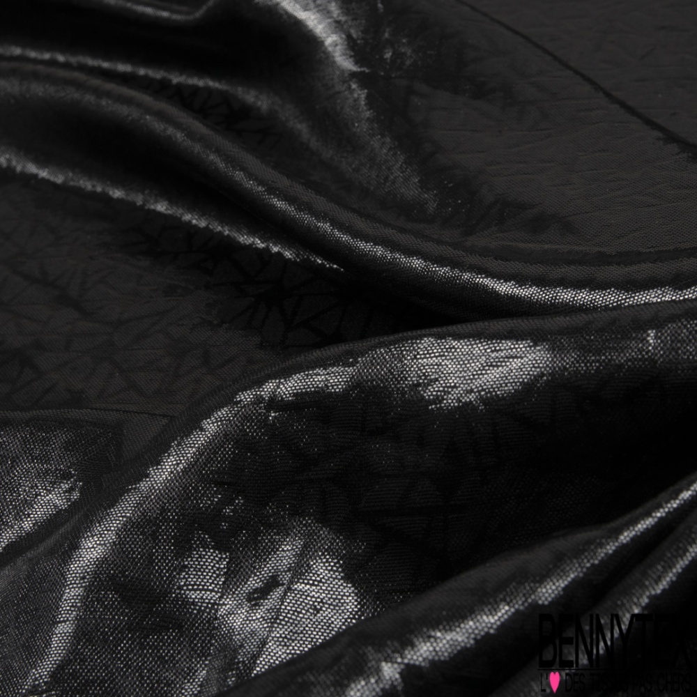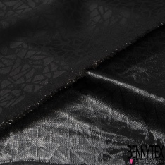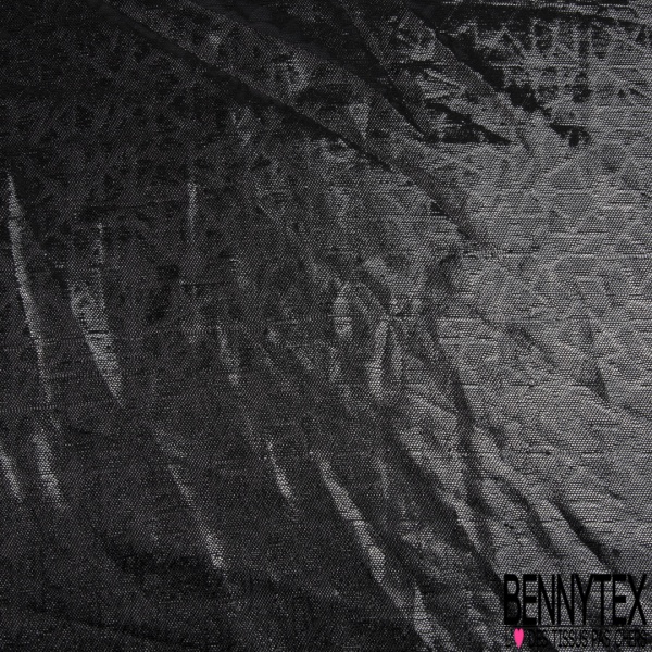 Satinette jacquard de soie imprimé mosaïque ton sur ton noir