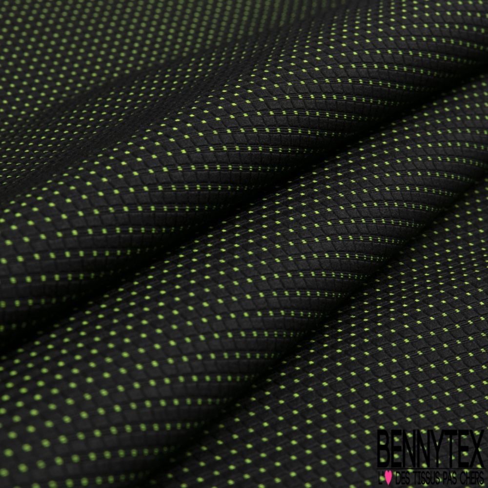 Le Jacquard piqué strié jaune fluo fond noir est une matière à effet de tissage.