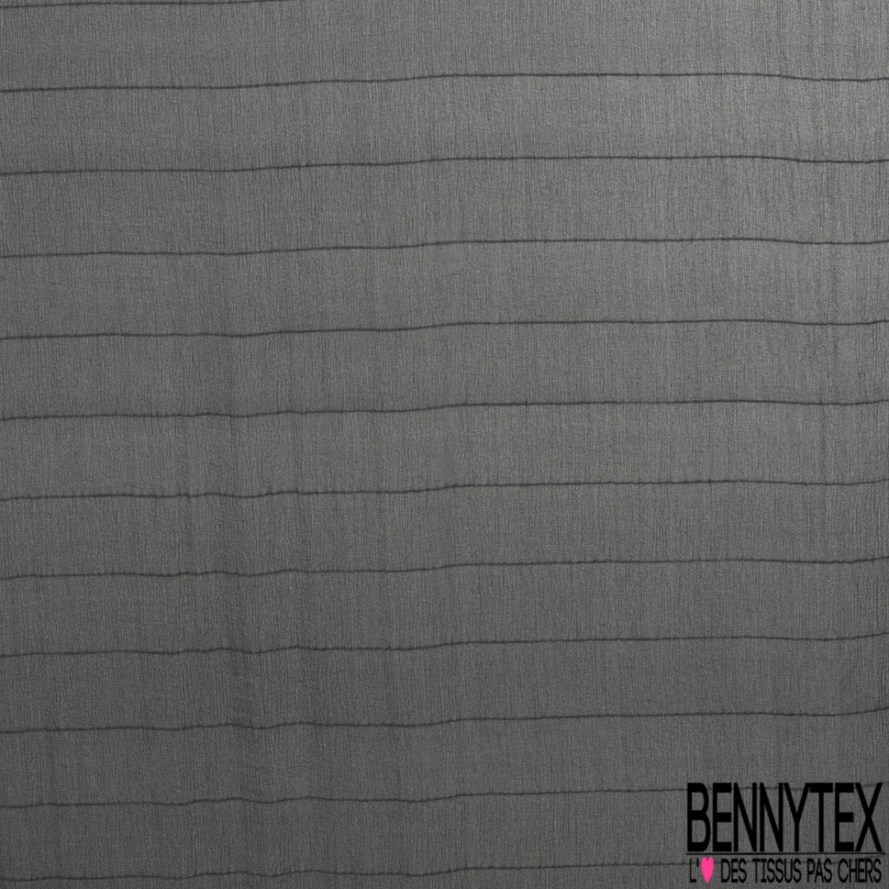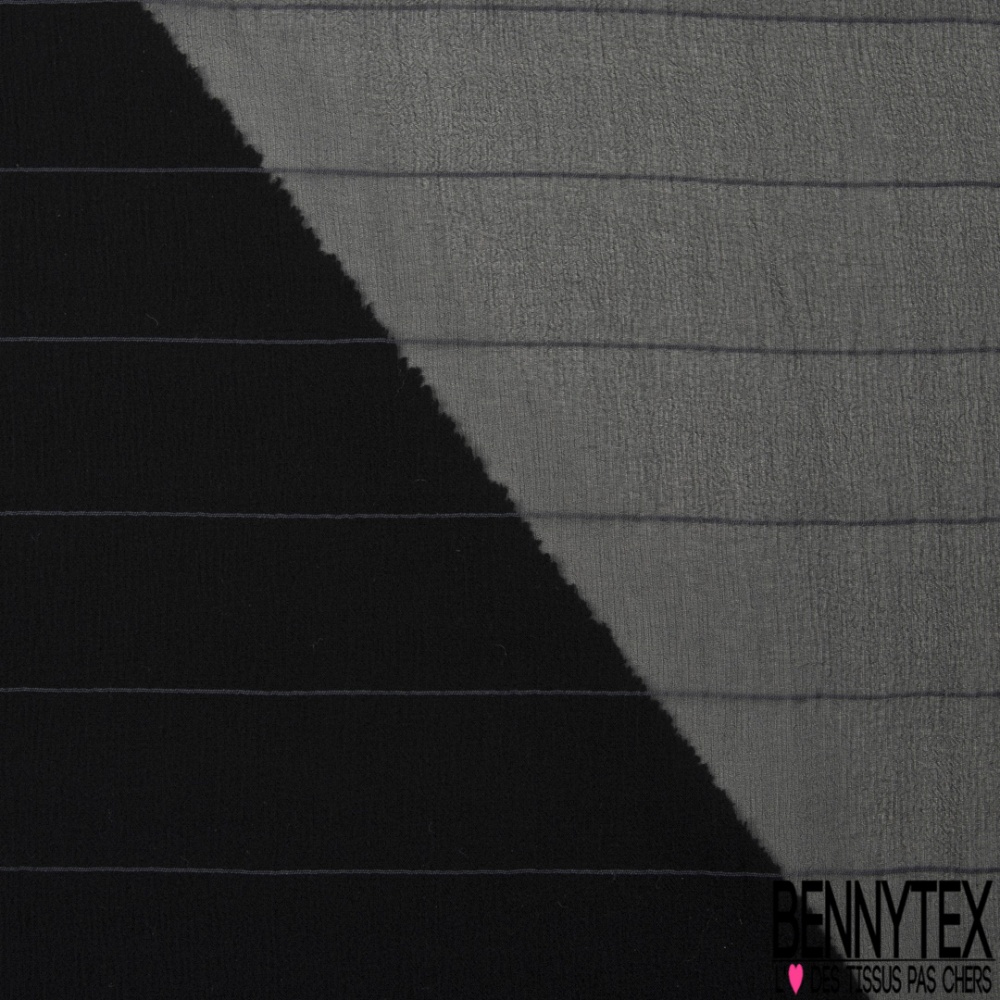 Mousseline crêpon soie coton élasthanne motif rayure horizontale ton sur ton noir