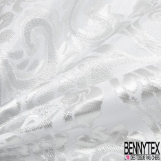 Jacquard acétate motif baroque argent blanc optique