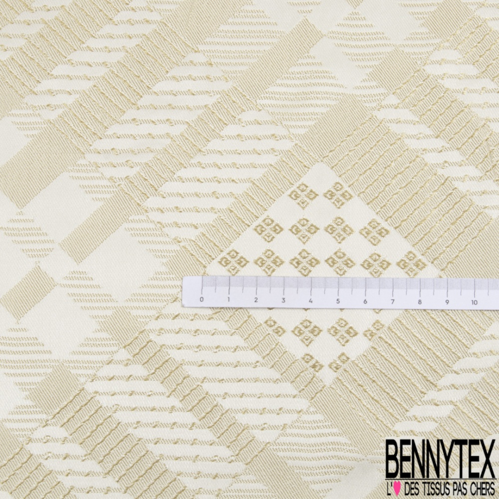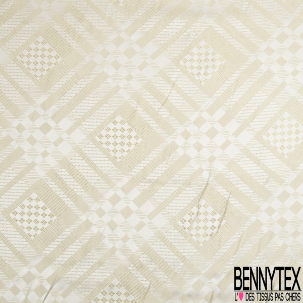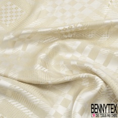 Jacquard viscose soie créateur motif quadrillage fantaisie ton sur ton mastique jaunâtre
