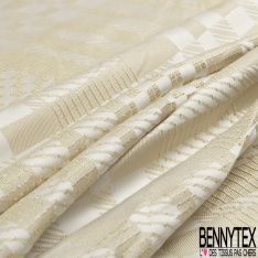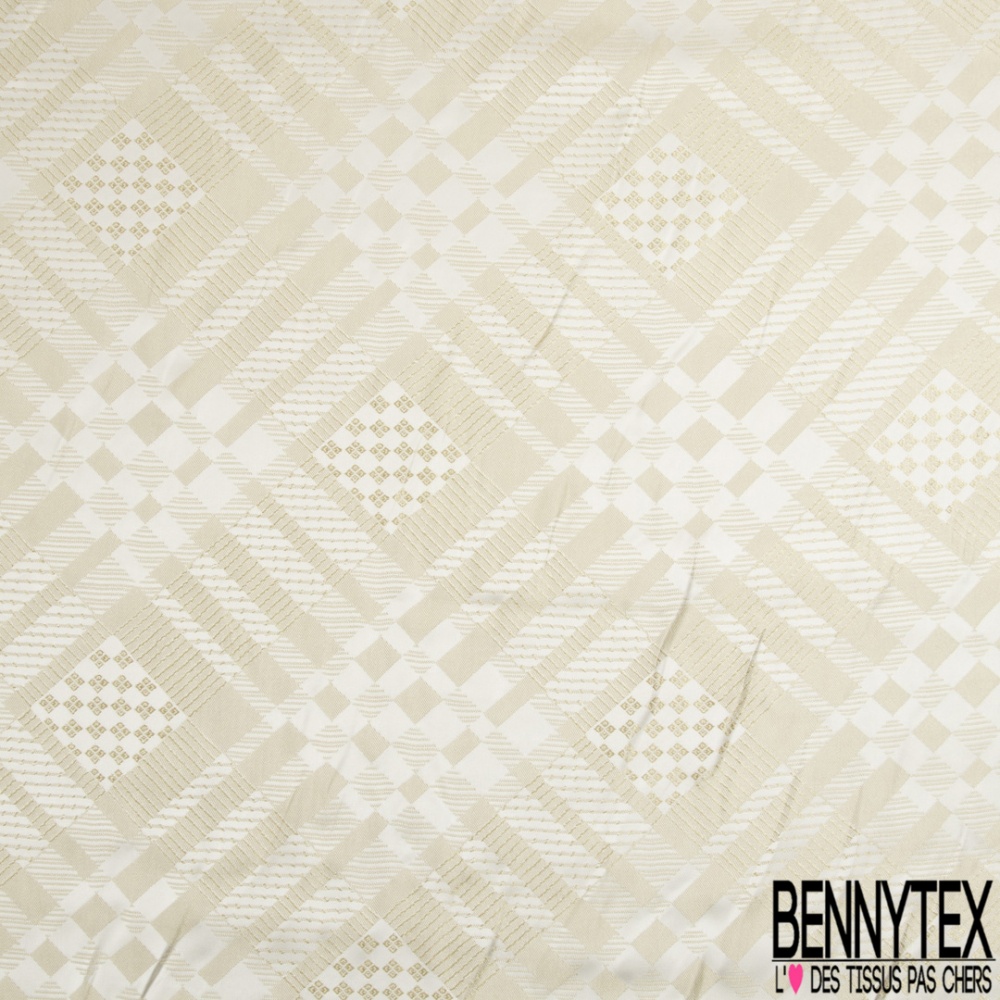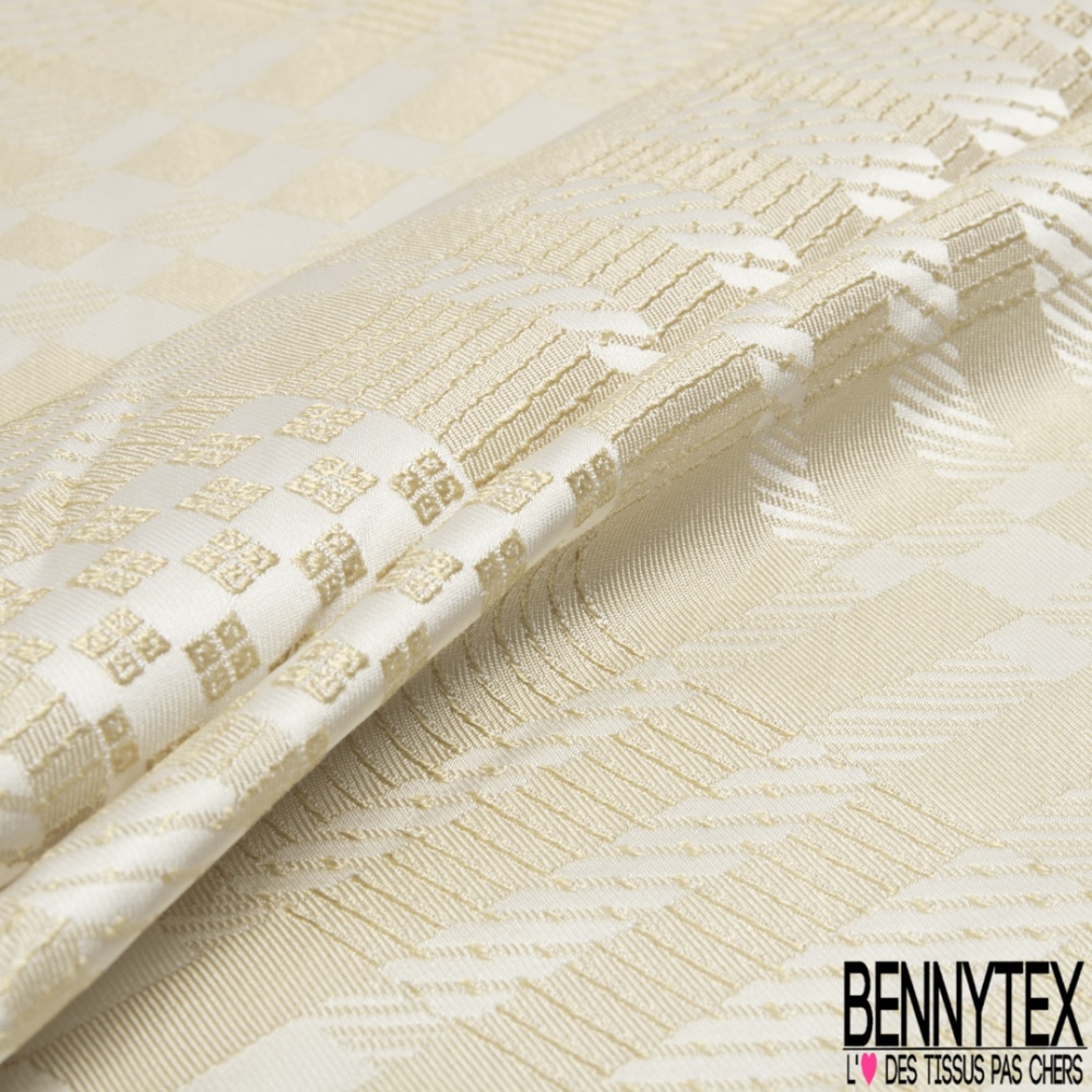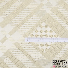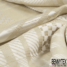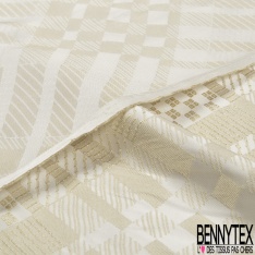 Le Jacquard viscose soie créateur motif quadrillage fantaisie ton sur ton mastique jaunâtre est une matière à effet de tissage.