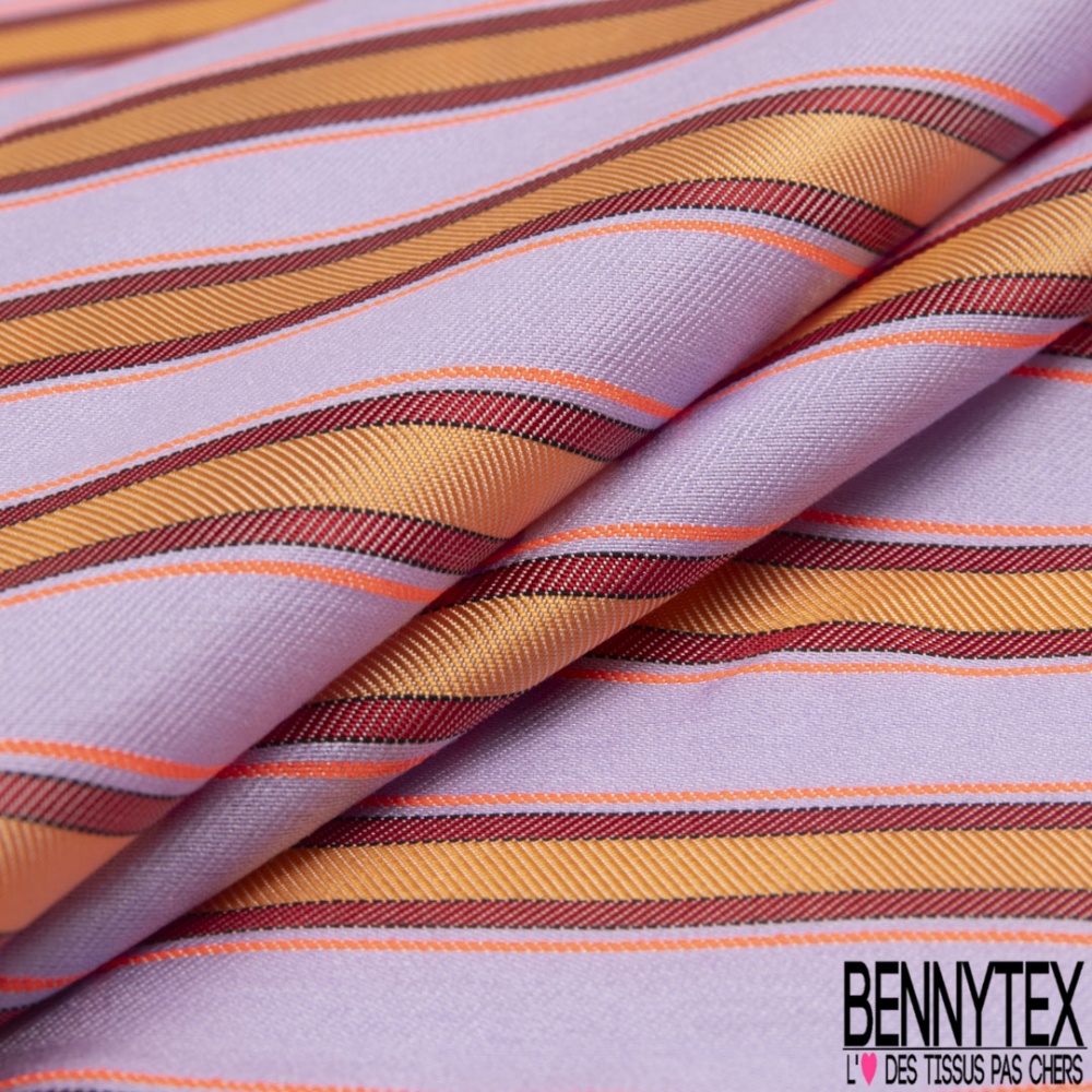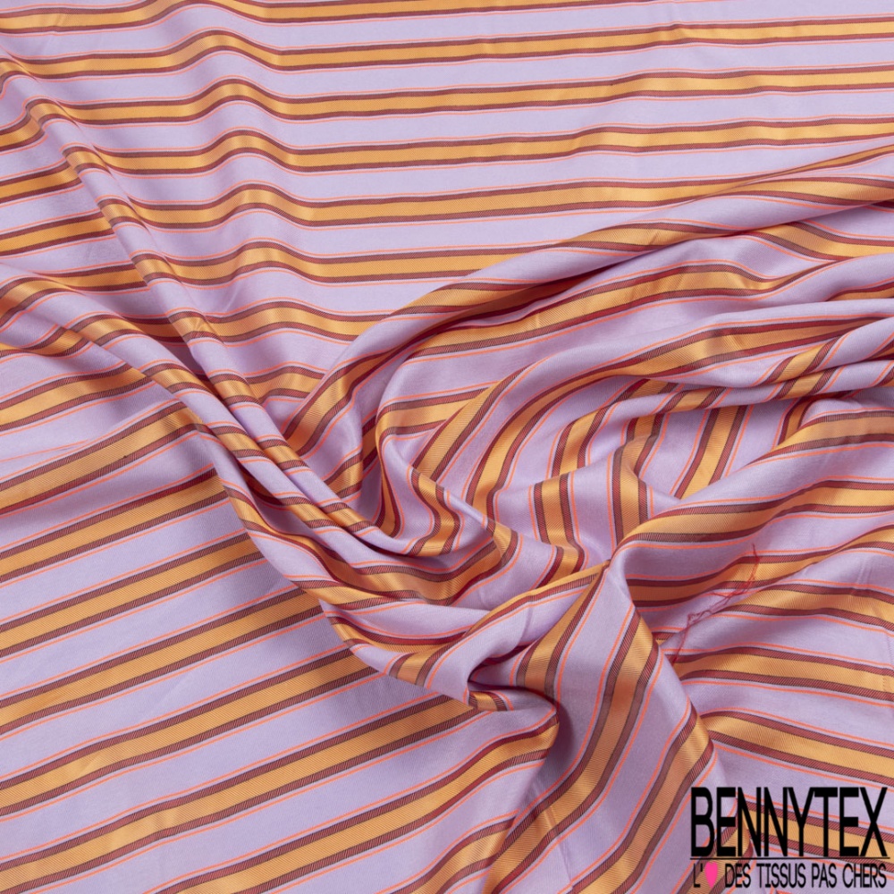 Doublure viscose motif rayure horizontale lilas orange givré rouge fluo rouge foncé noir