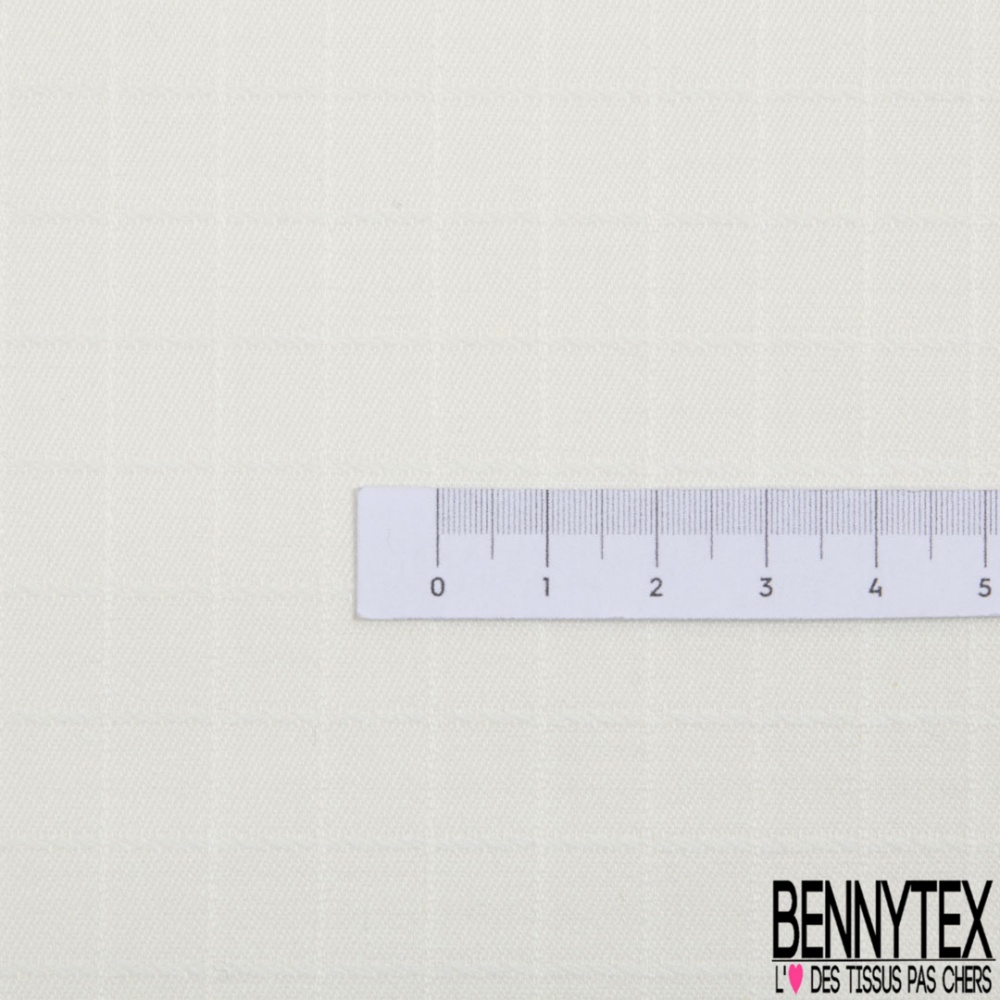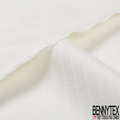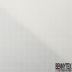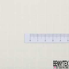 Toile coton élasthanne motif quadrillage ton sur ton blanc discret