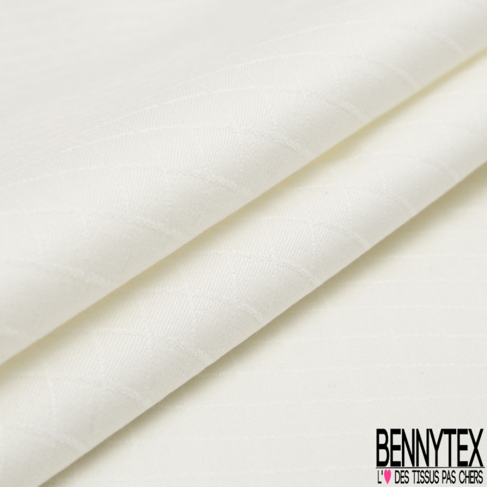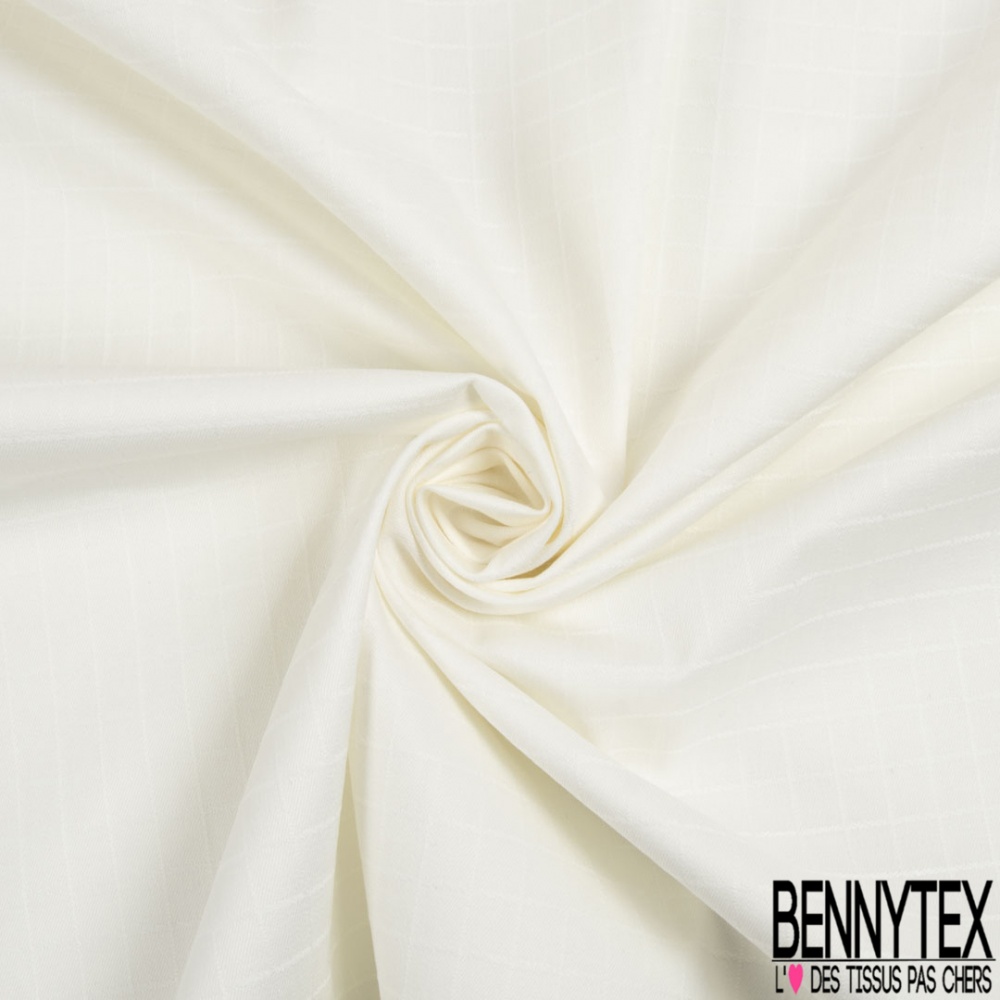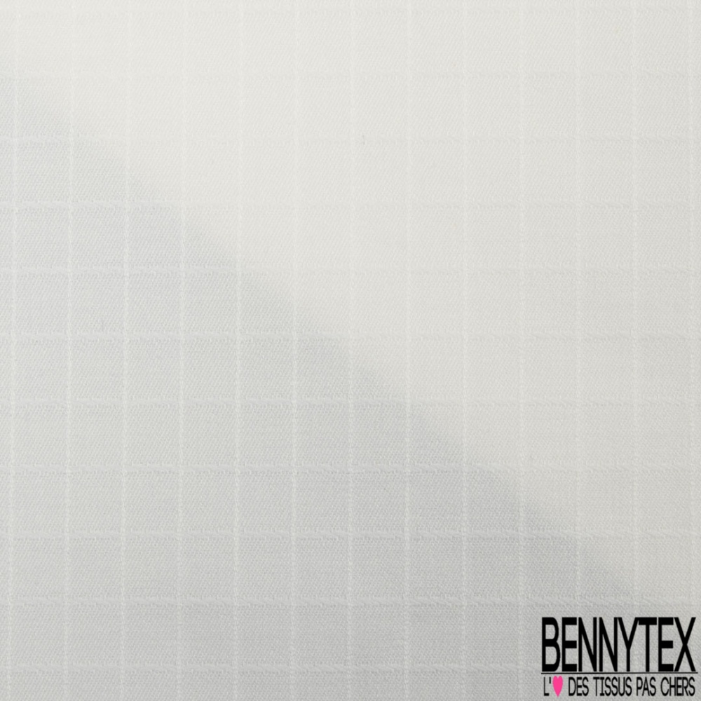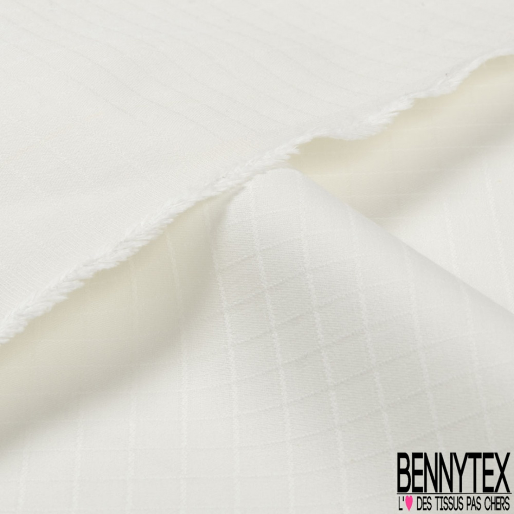 Laissez-vous tenter par notre Toile coton élasthanne motif quadrillage ton sur ton blanc discret