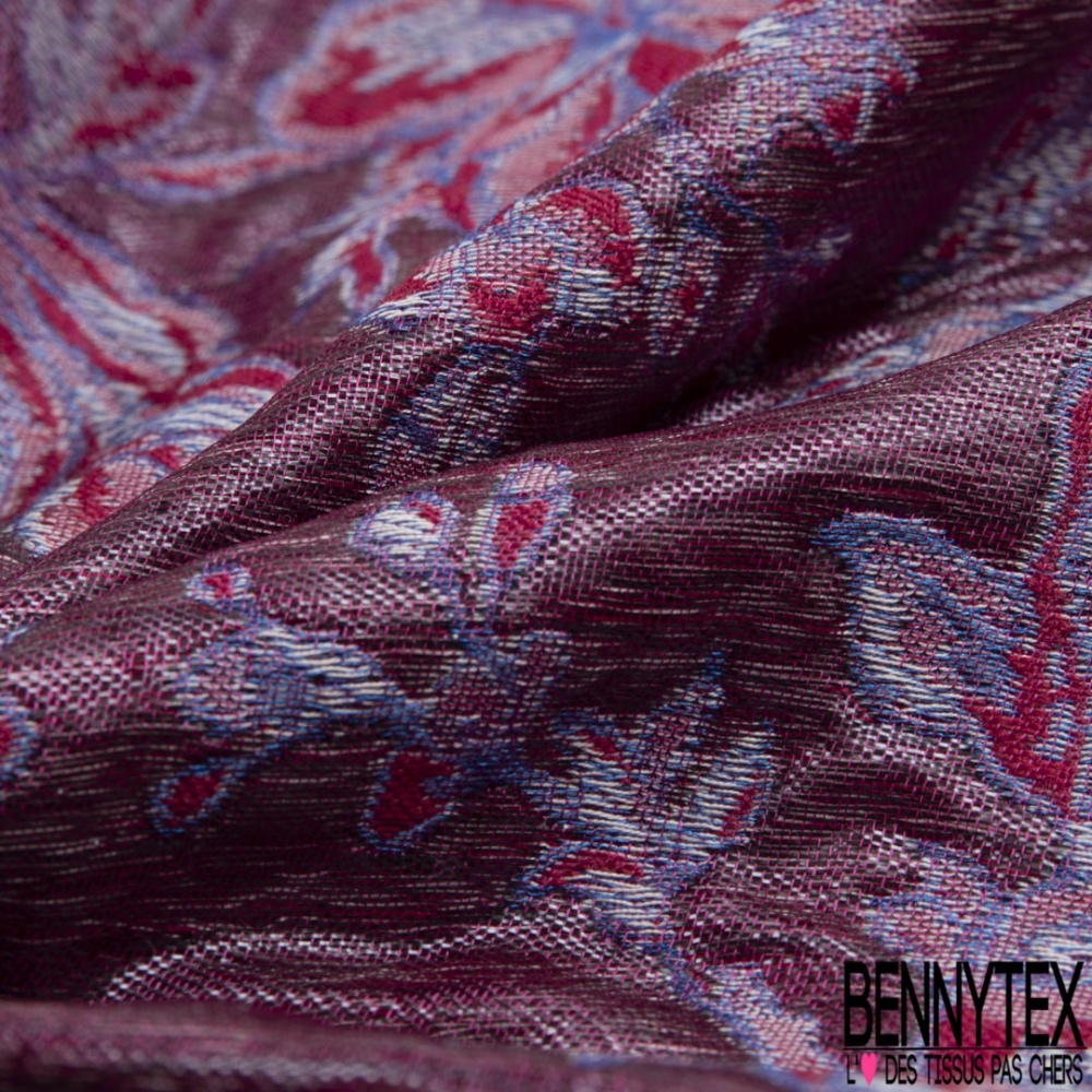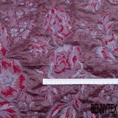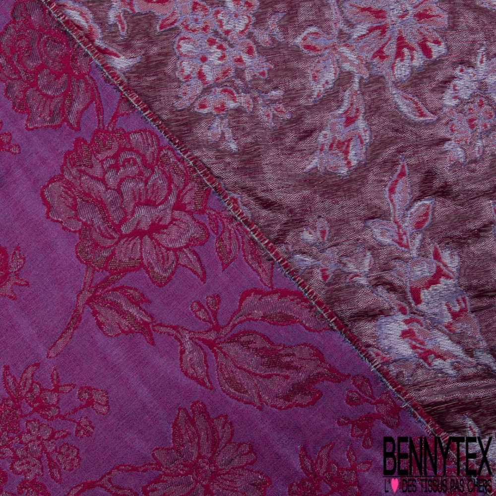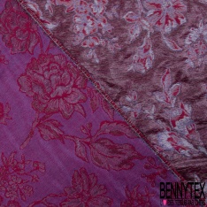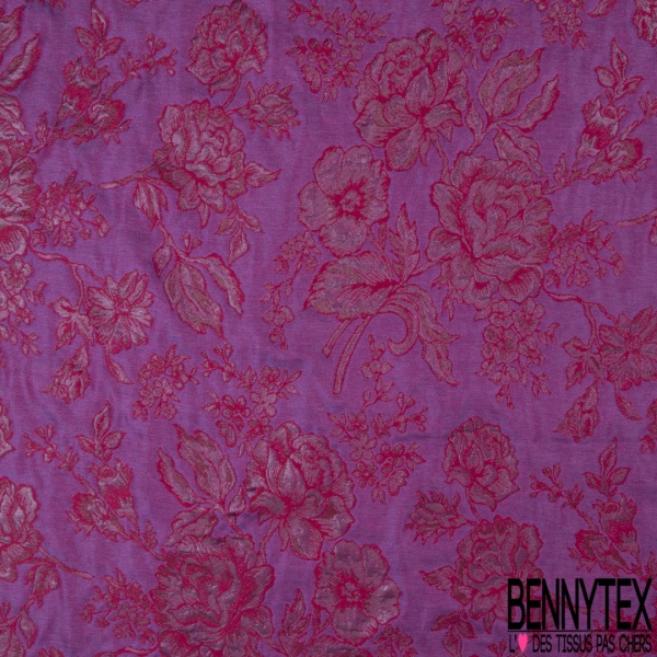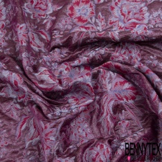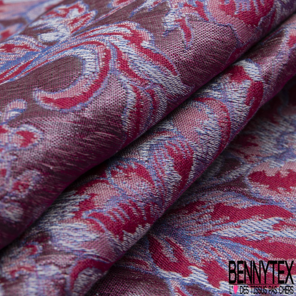 Laissez-vous tenter par notre Brocart haute couture fin couture fin fabriqué en France motif floral baroque framboise fond changeant orchidée bleu roi