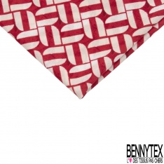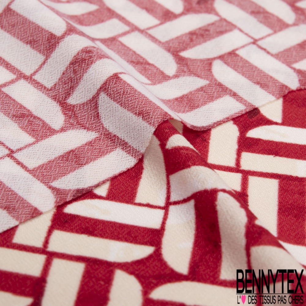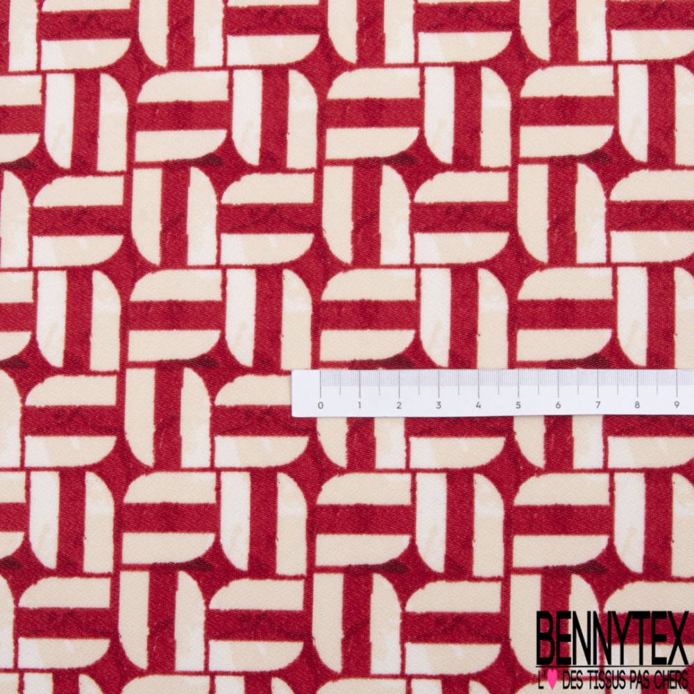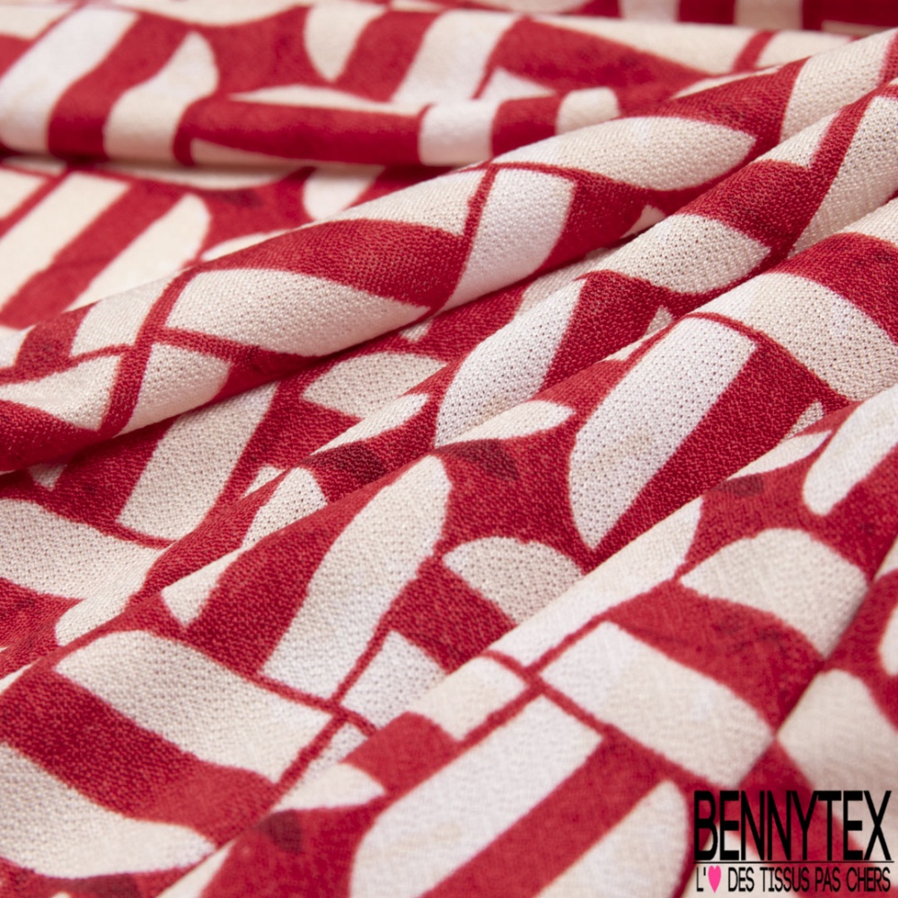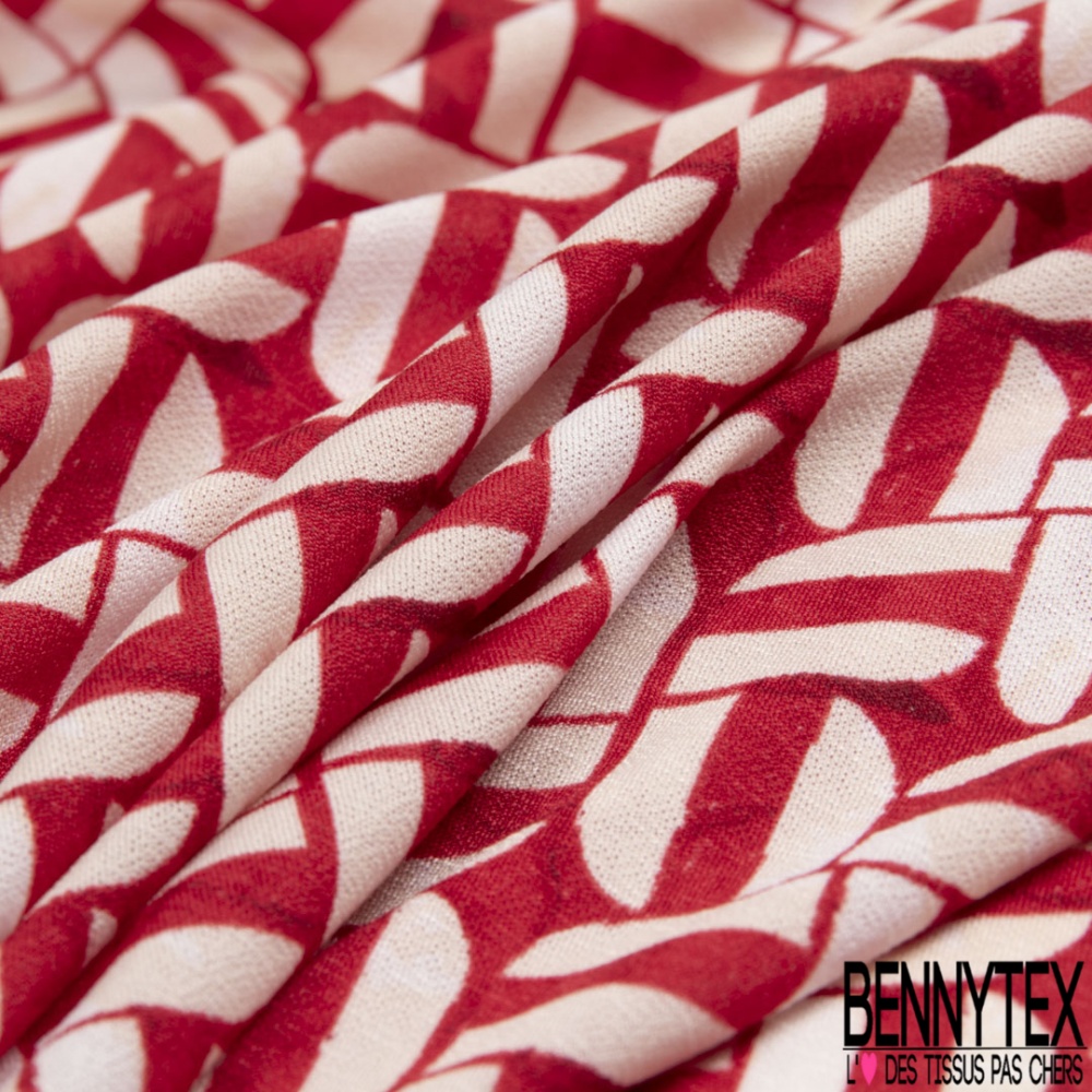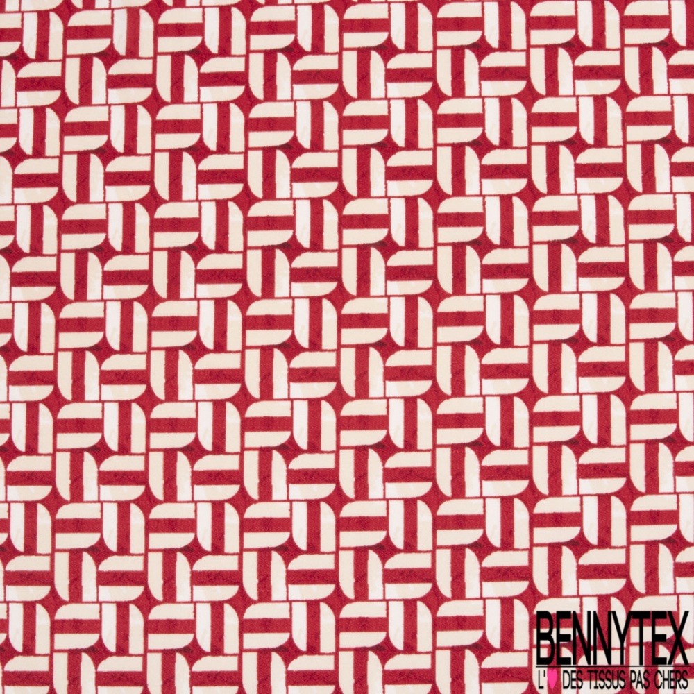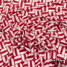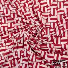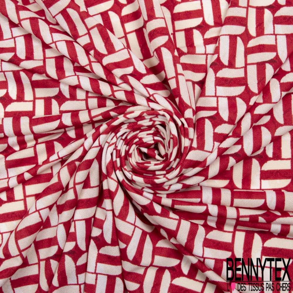 Crêpe jersey polyester élasthanne imprimé géométrique blanc cassé fond rouge aquarelle
