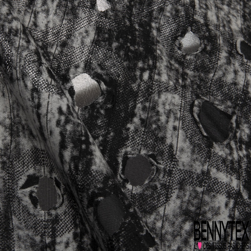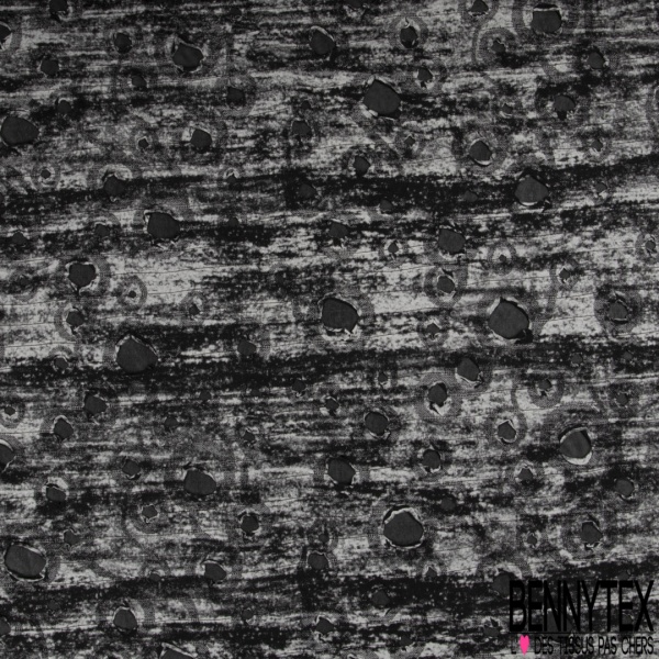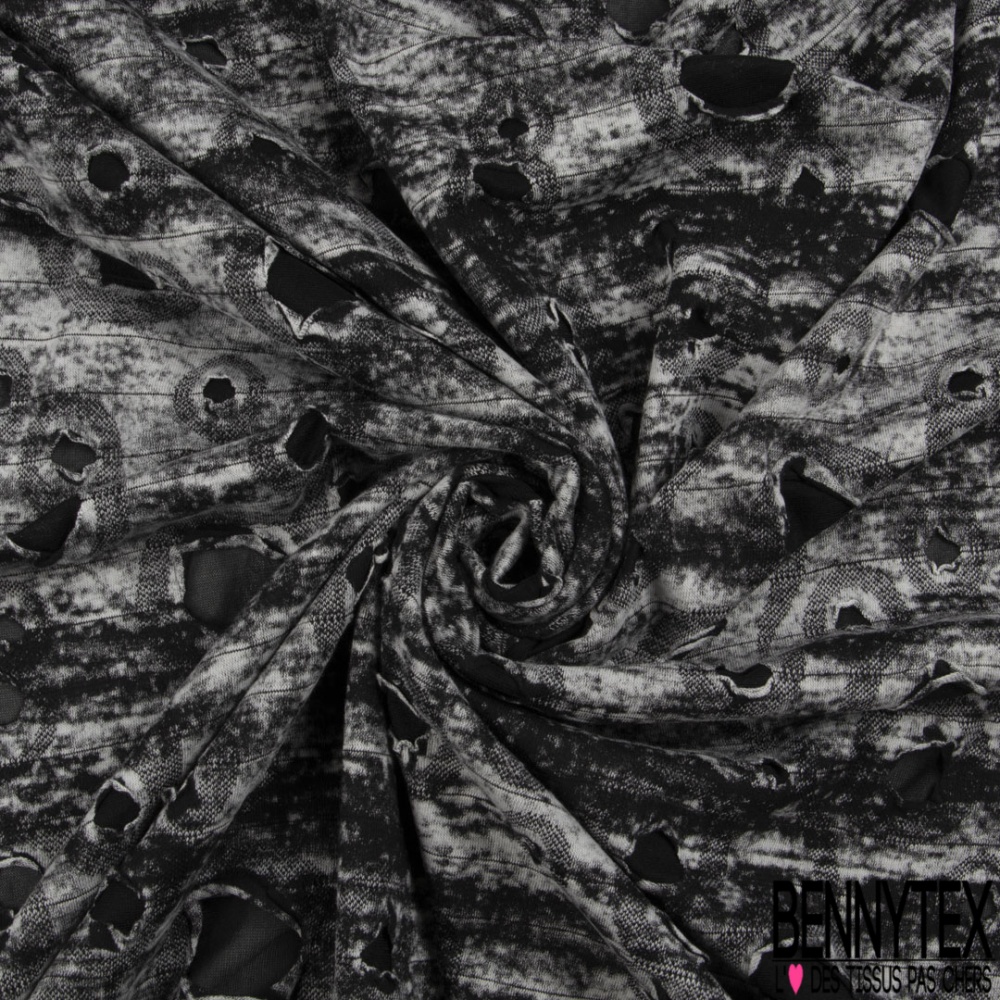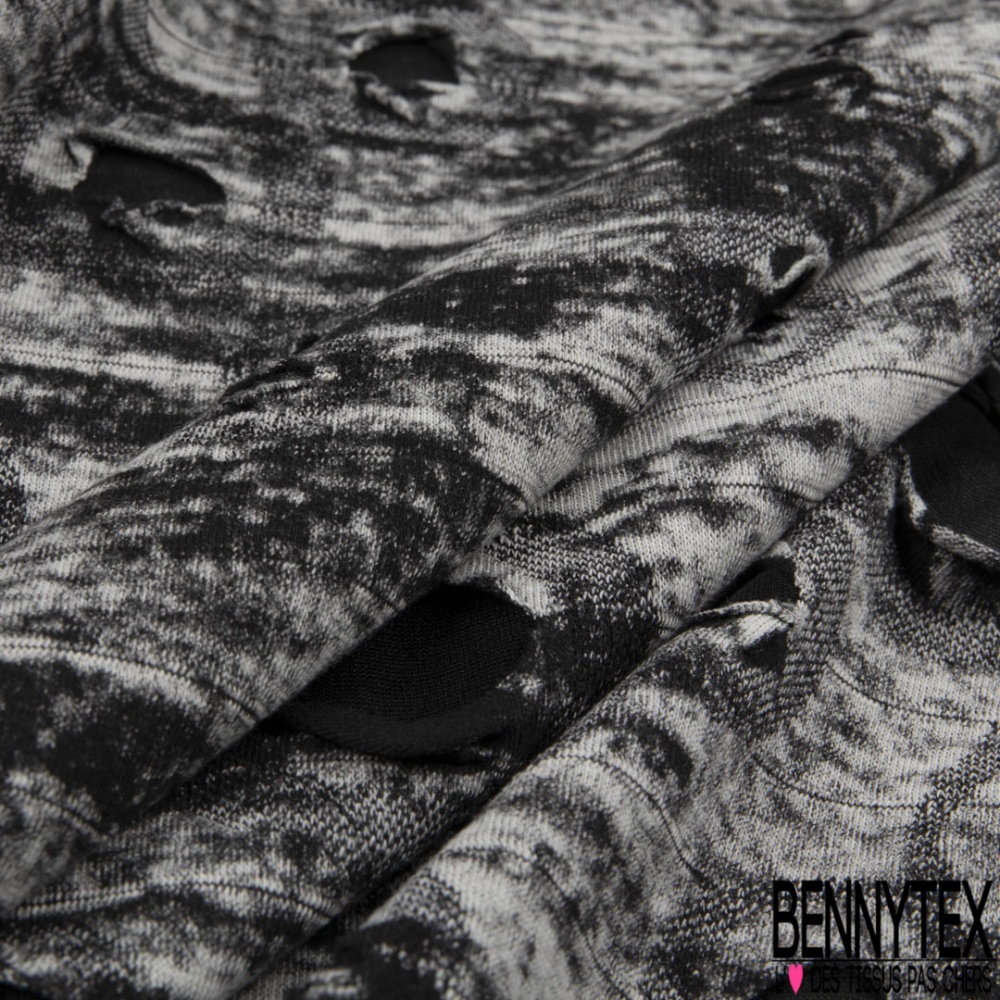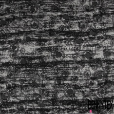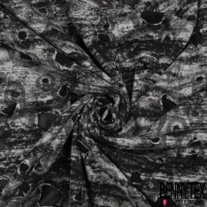 Jersey polyester fin contrecollé troué chiné noir blanc cassé