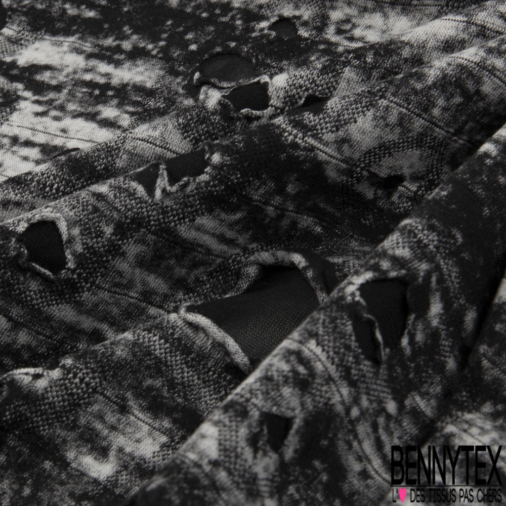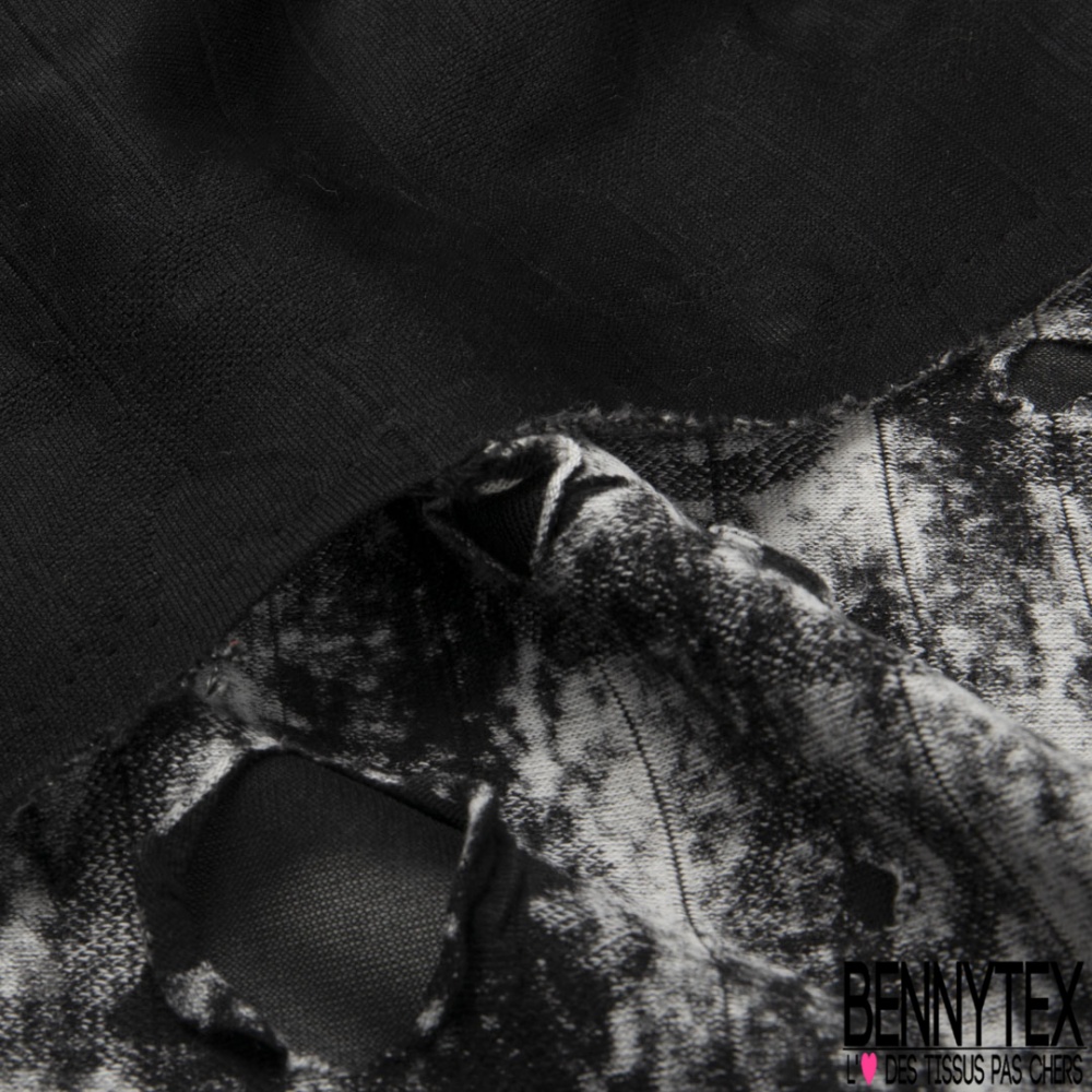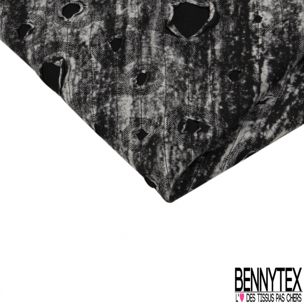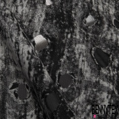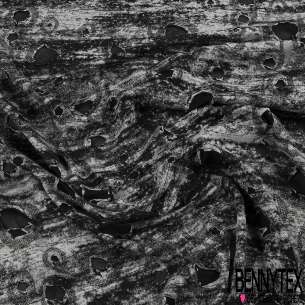 Jersey polyester fin contrecollé troué chiné noir blanc cassé