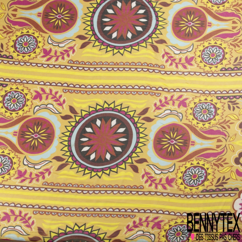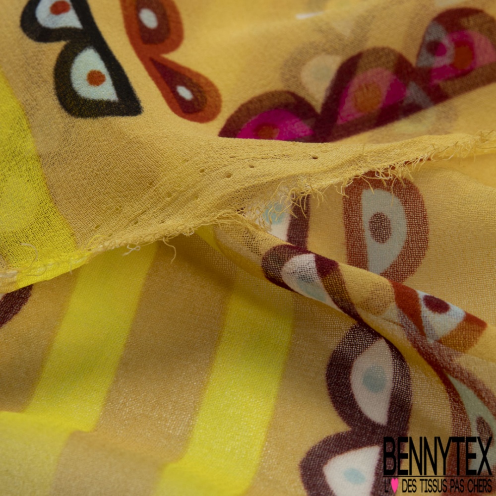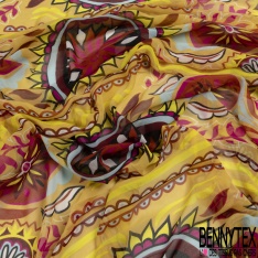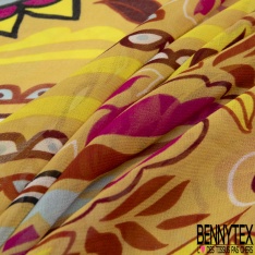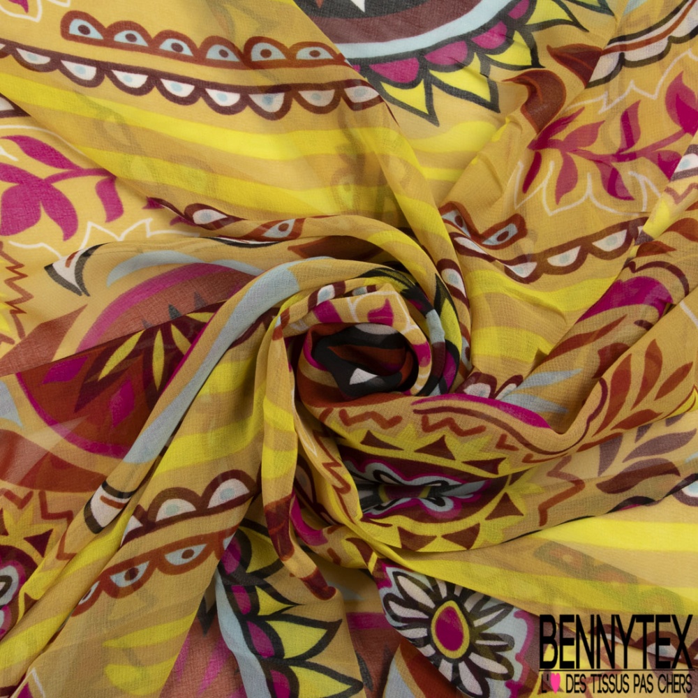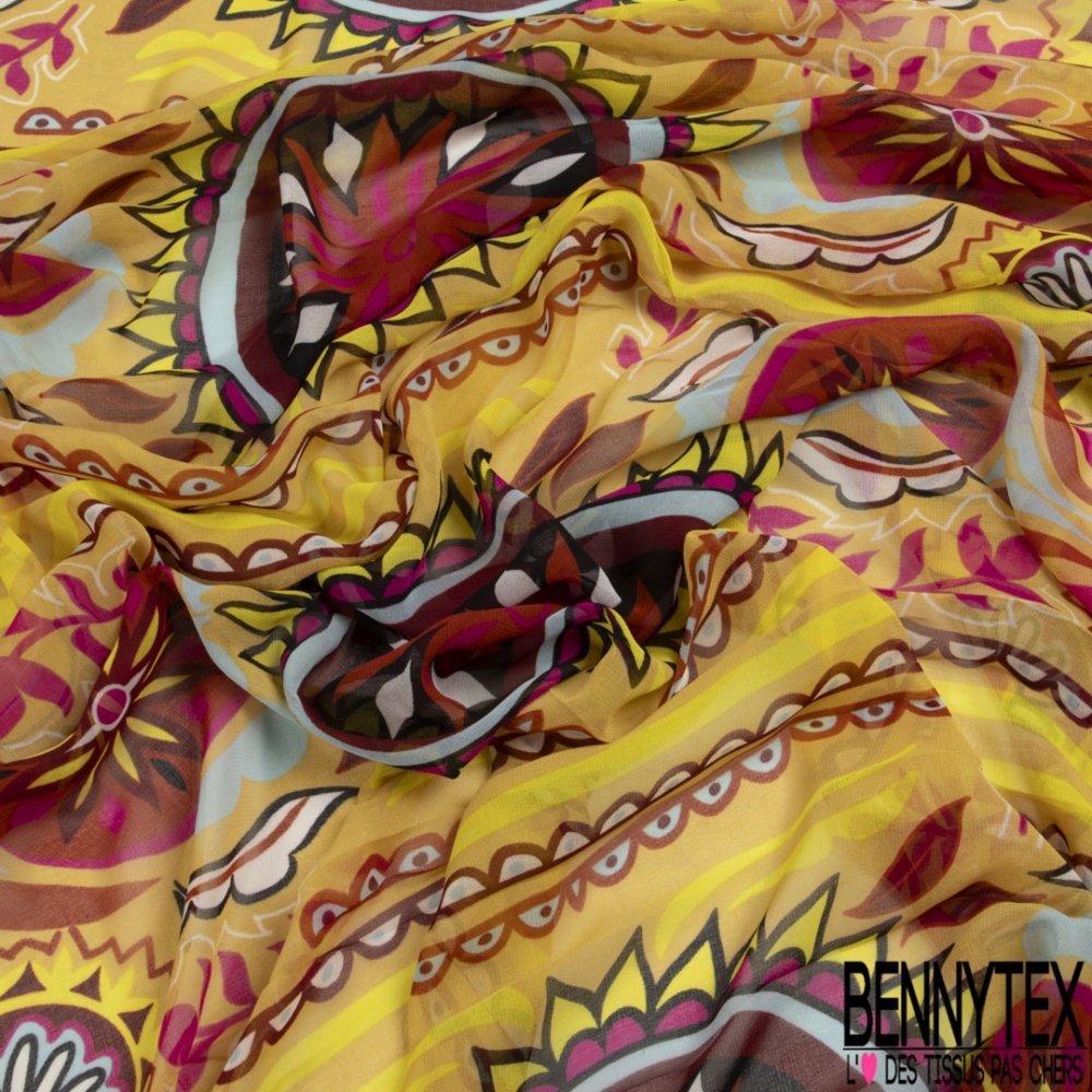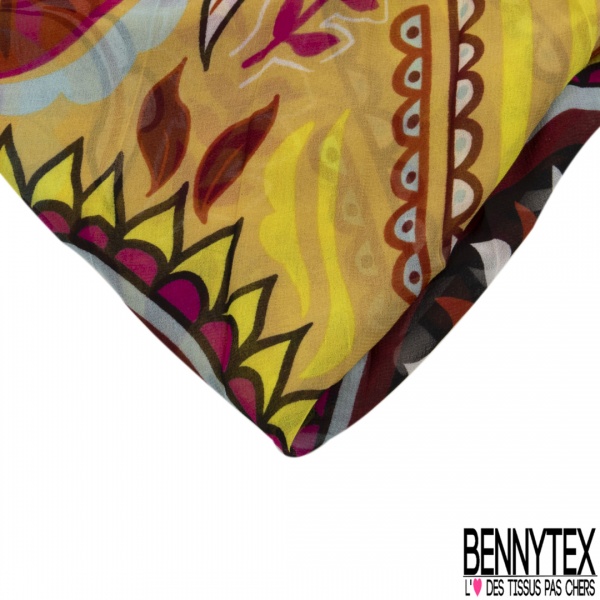 Coupon 3m mousseline georgette imprimé cachemire vintage ton chaud