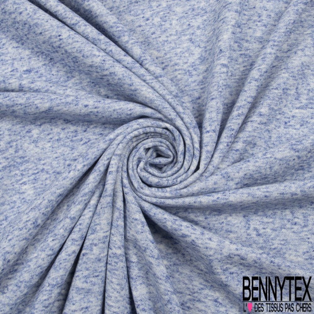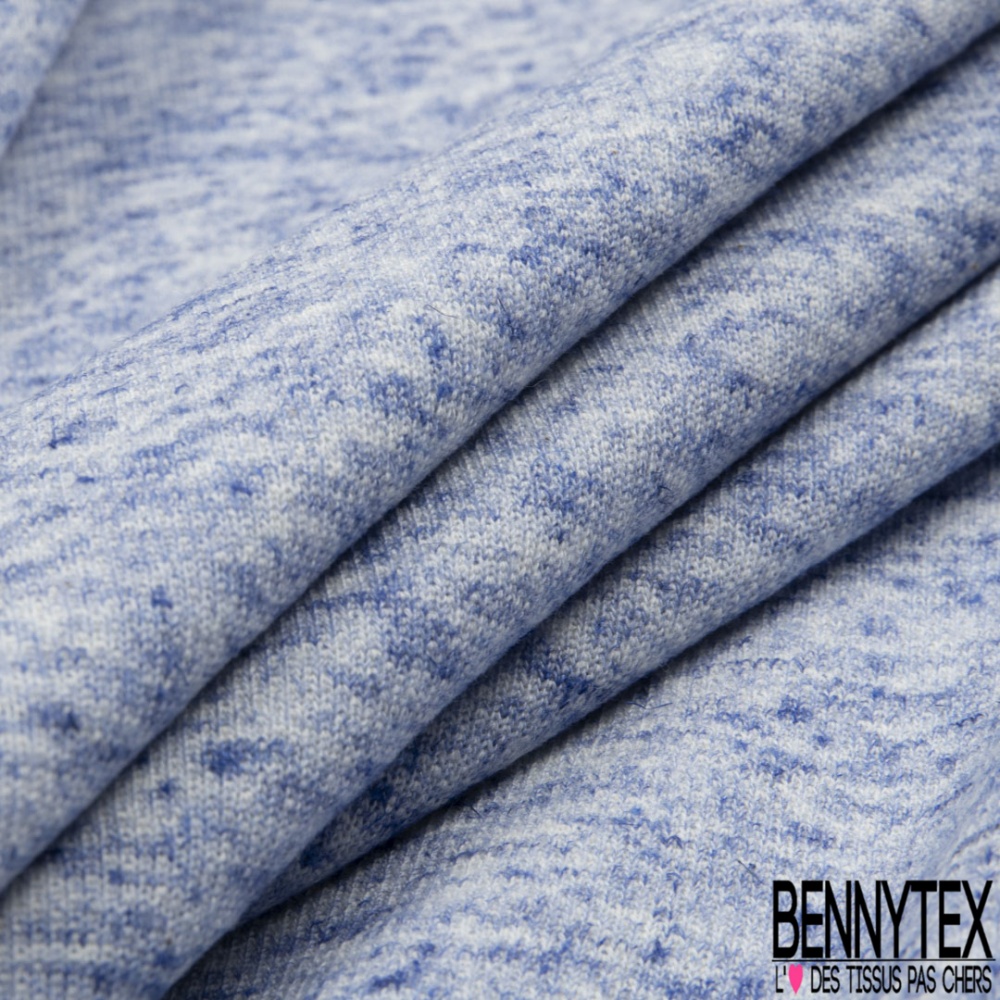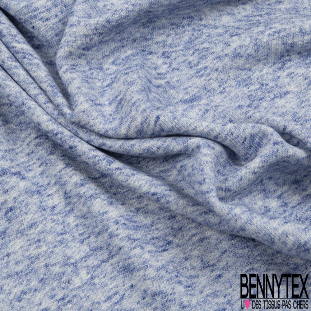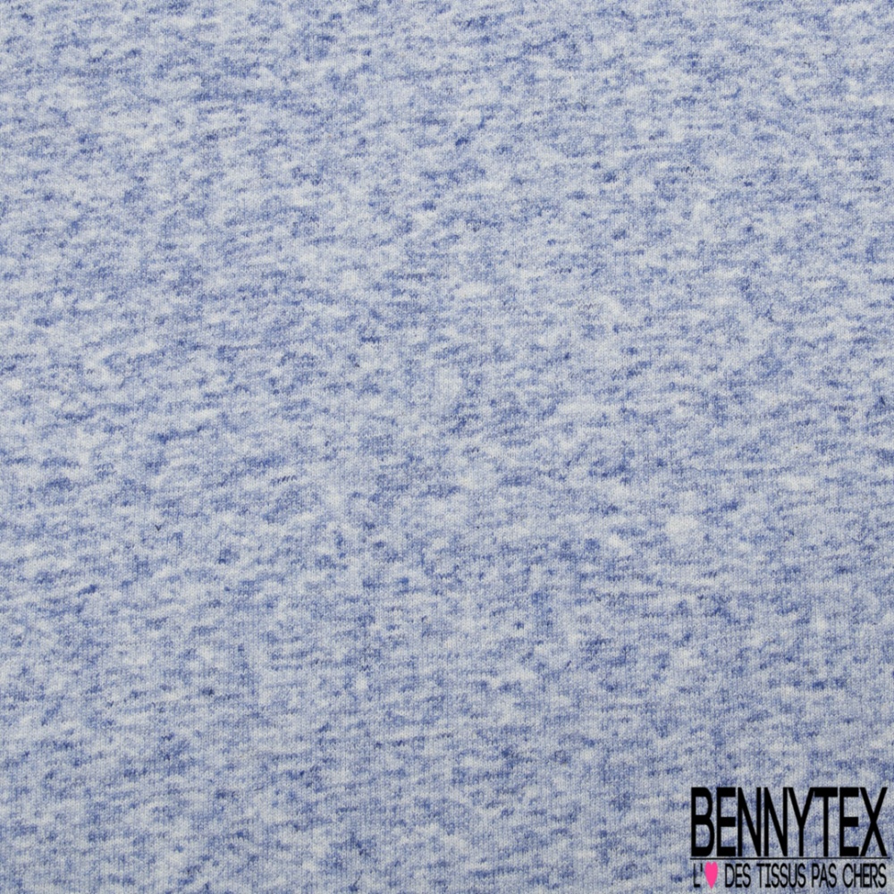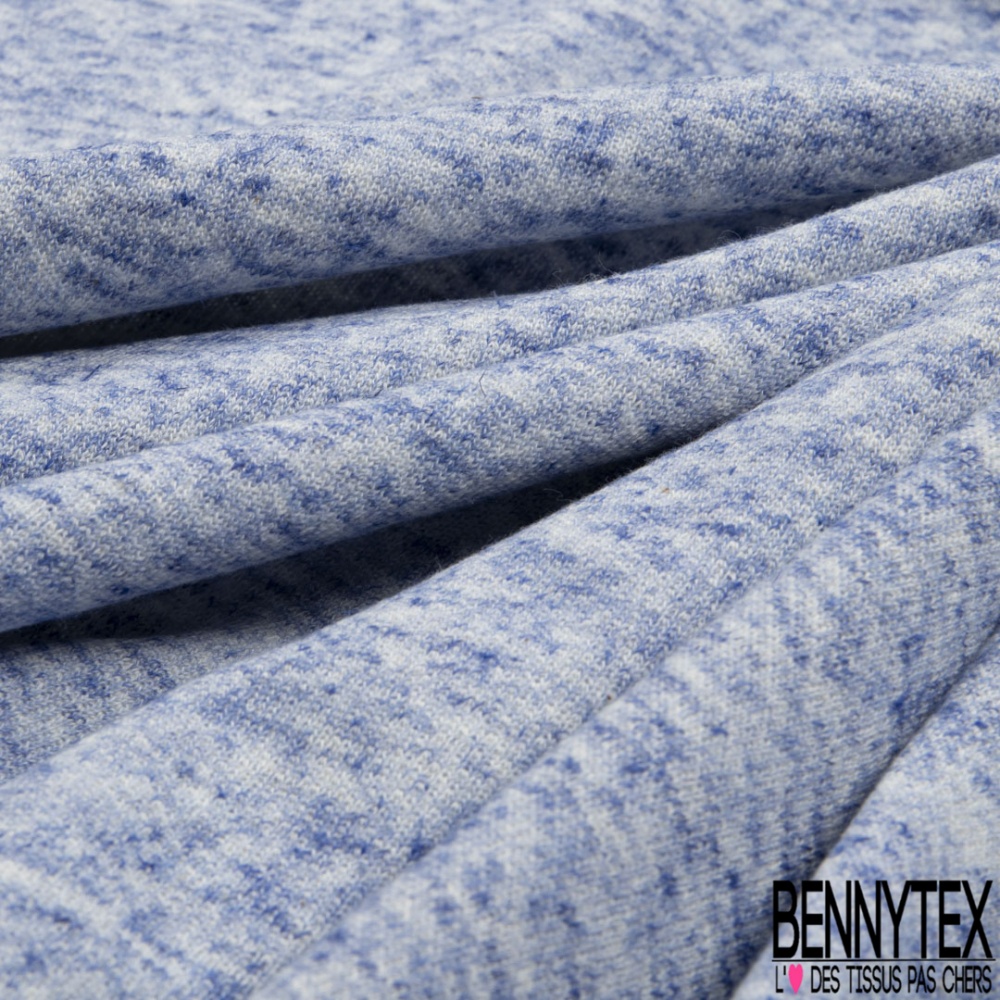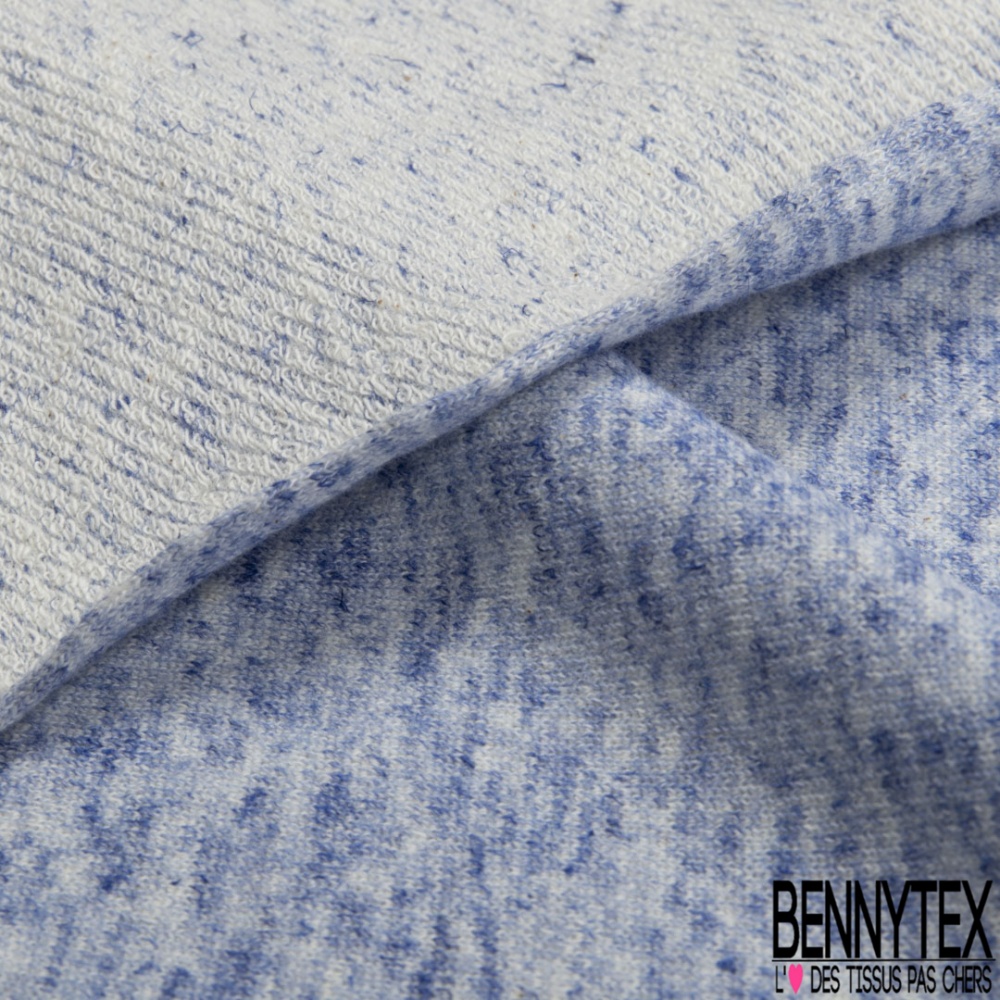 Molleton bouclette fin polycoton lin chiné bleu