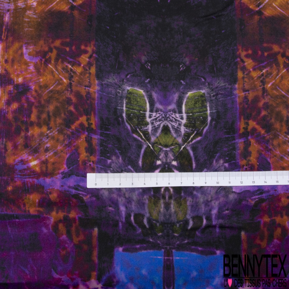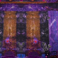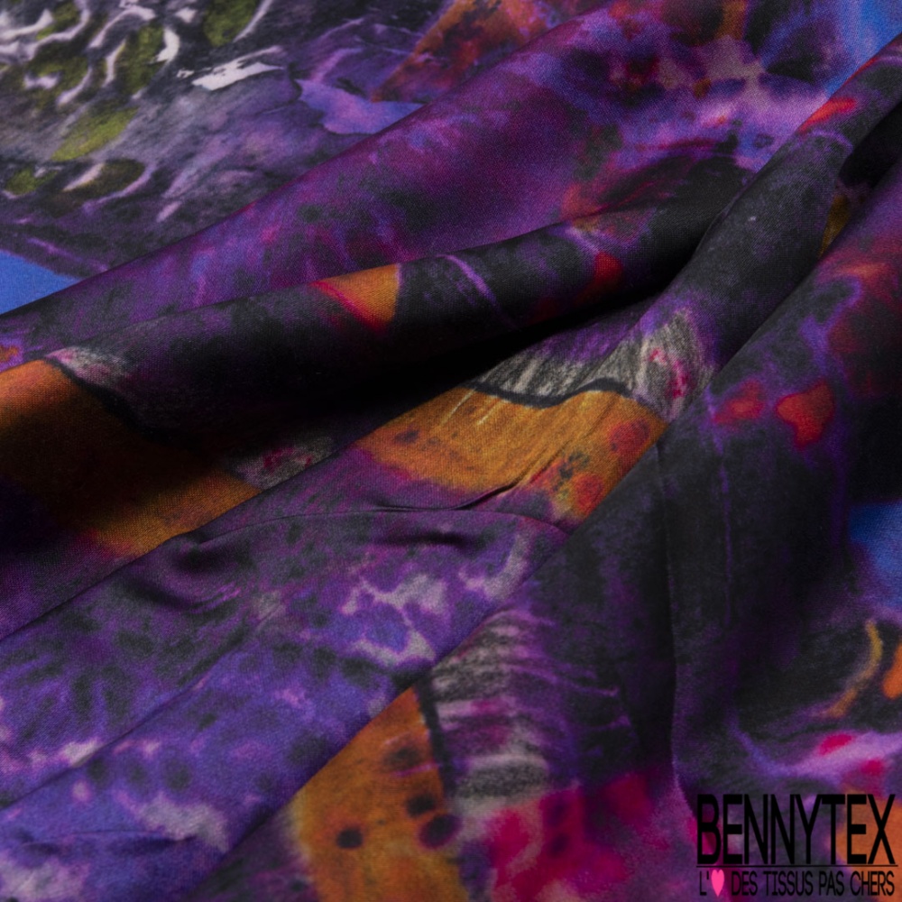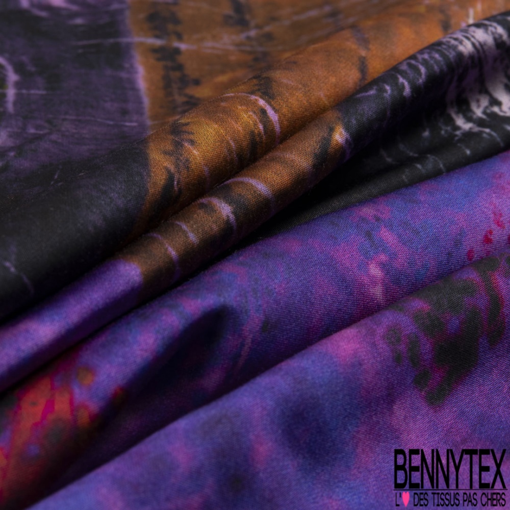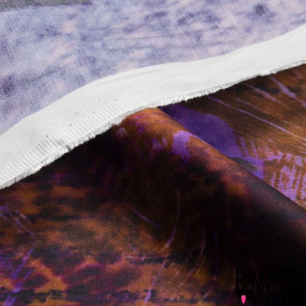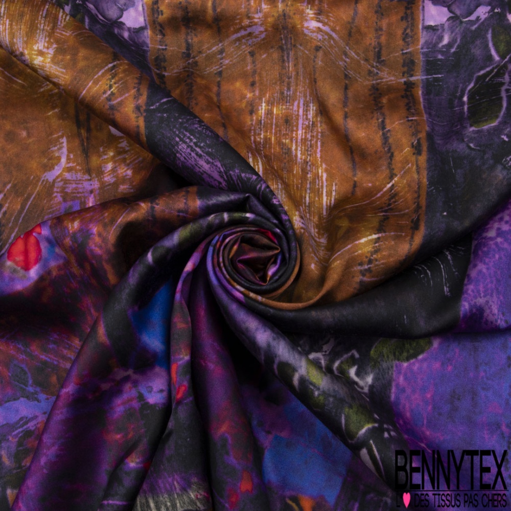 Panneau Satin viscose imprimé abstrait ton violet cappuccino noir
