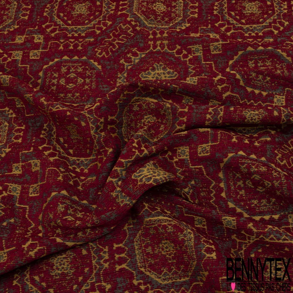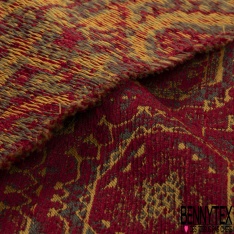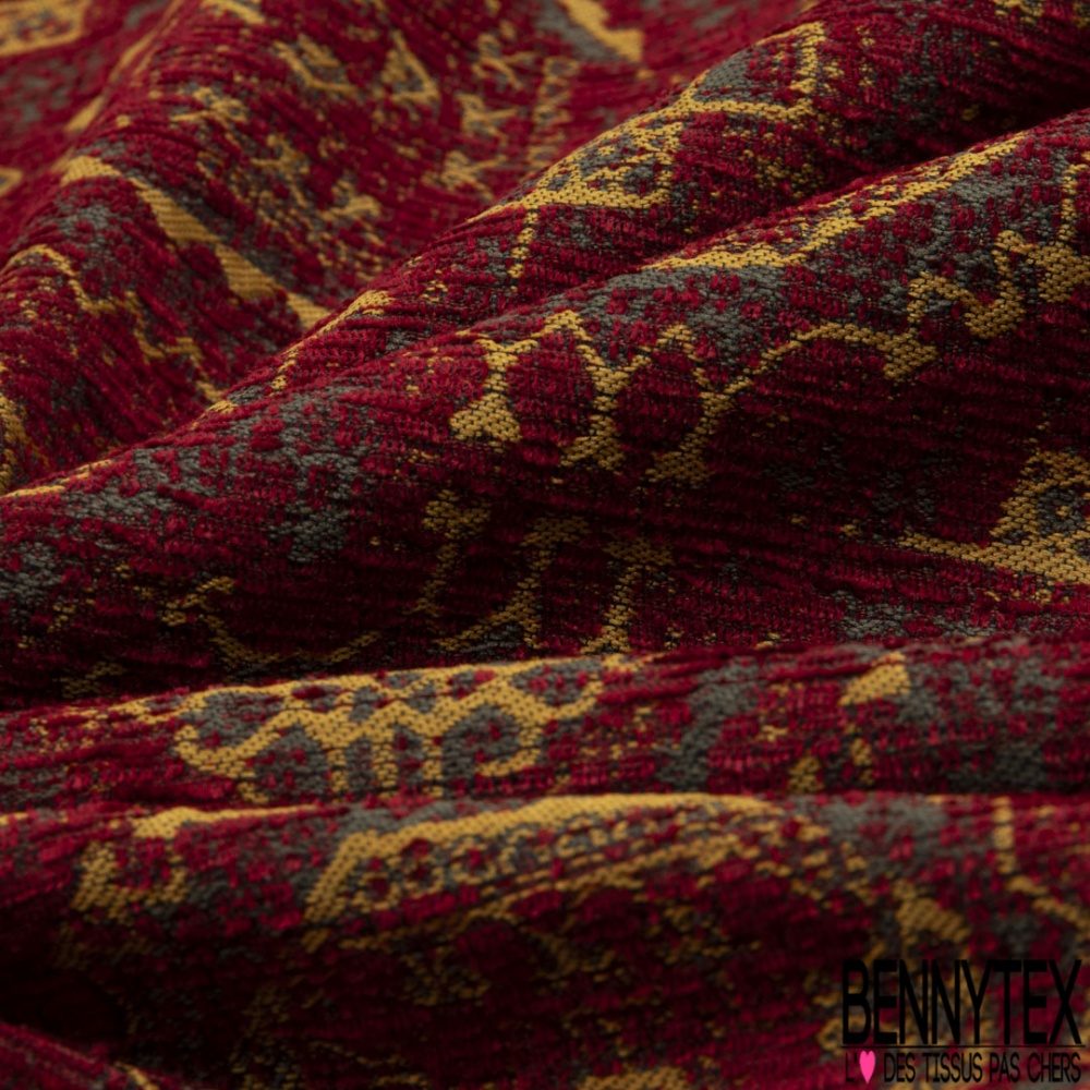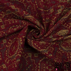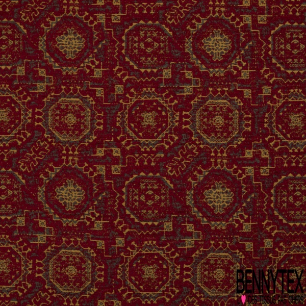 Laissez-vous tenter par notre Brocart tissé motif géométrique vintage bordeaux moutarde taupe