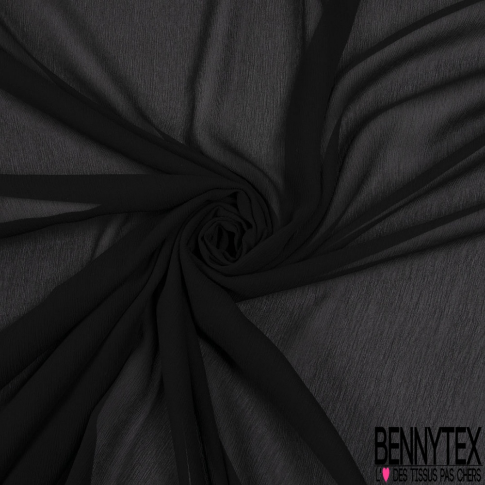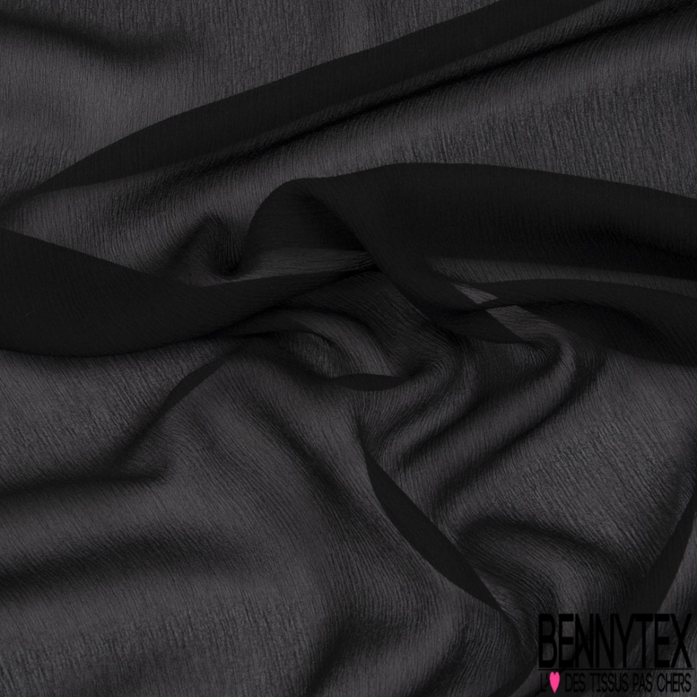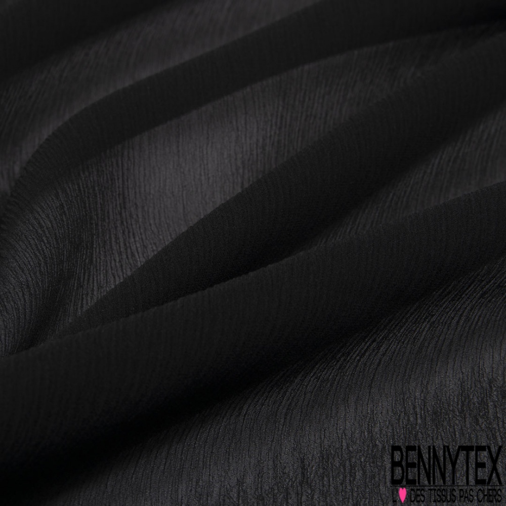 Mousseline crêpon de soie uni grotte noir