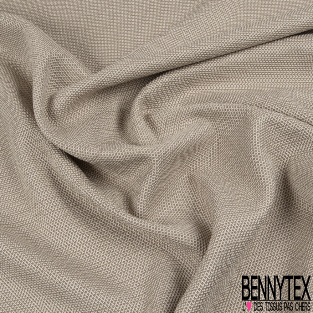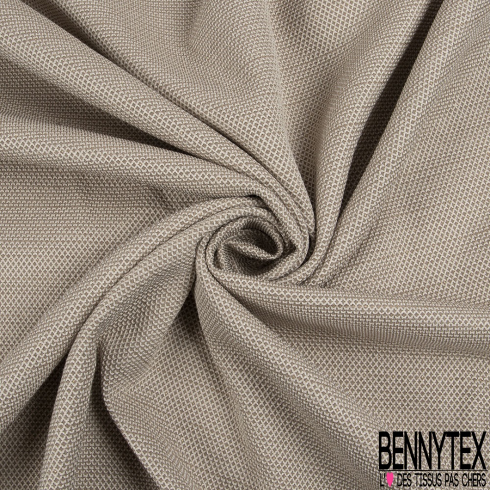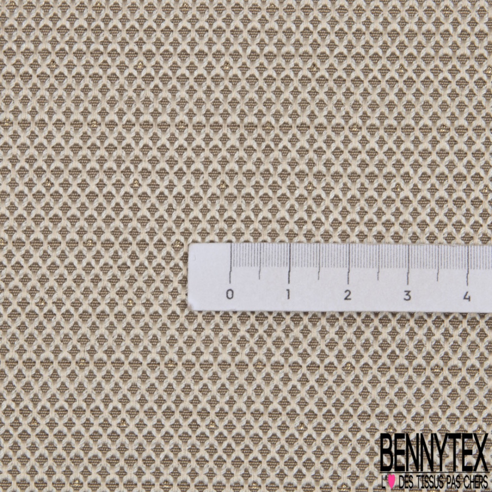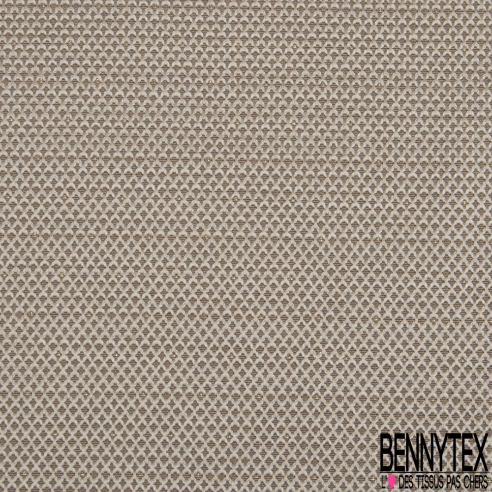 Le Jacquard motif plumetis or fond beigeest une matière à effet de tissage.