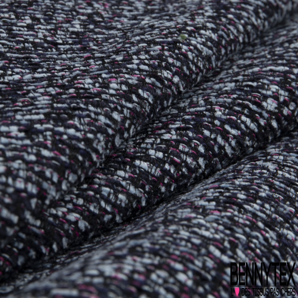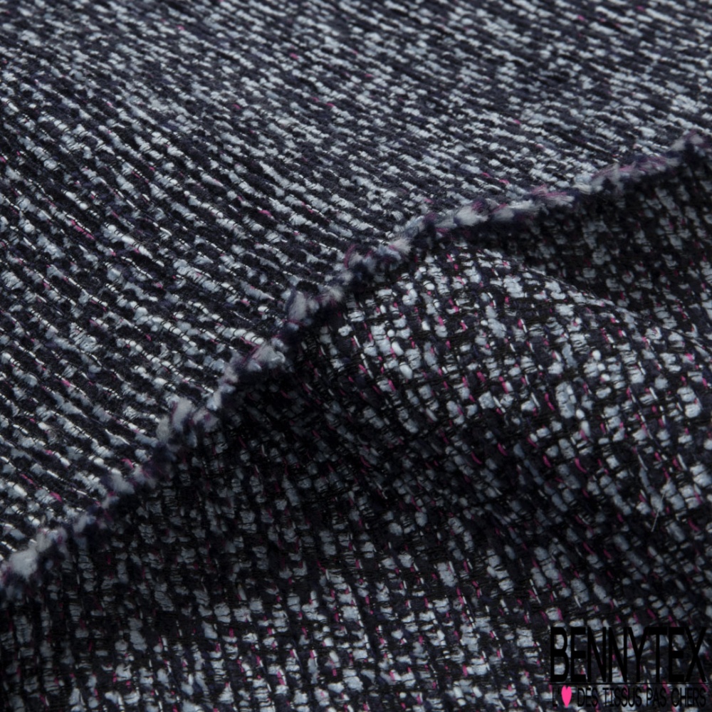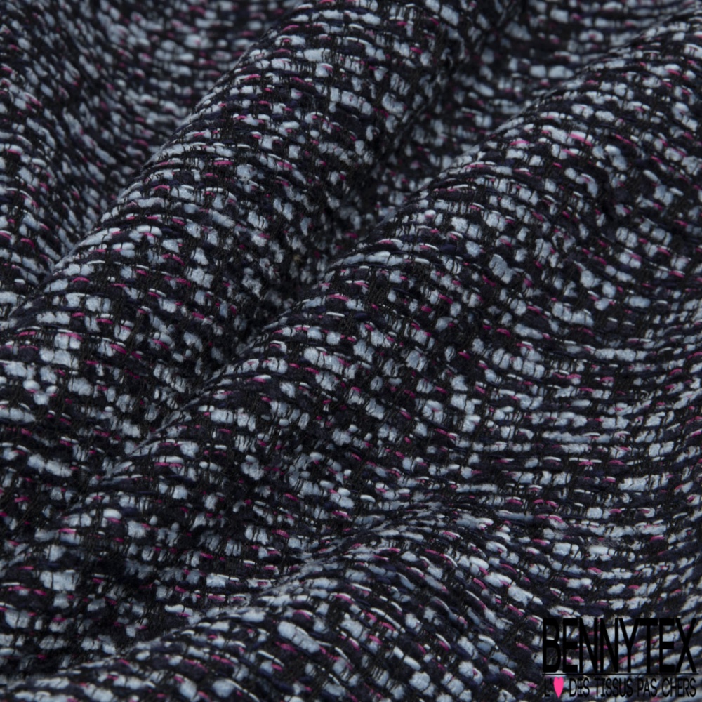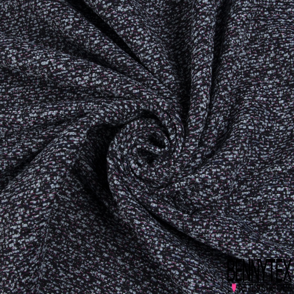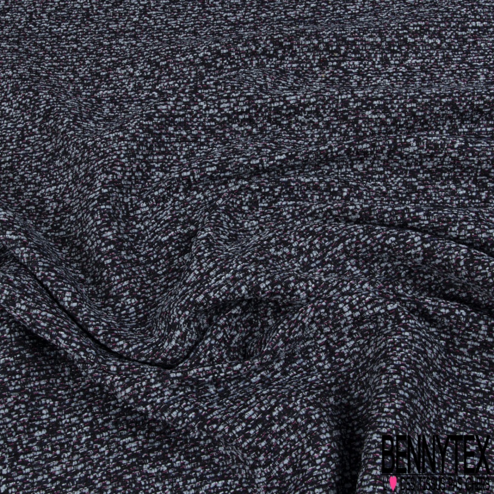 Jacquard imprimé chiné ciel bleu nuit framboise