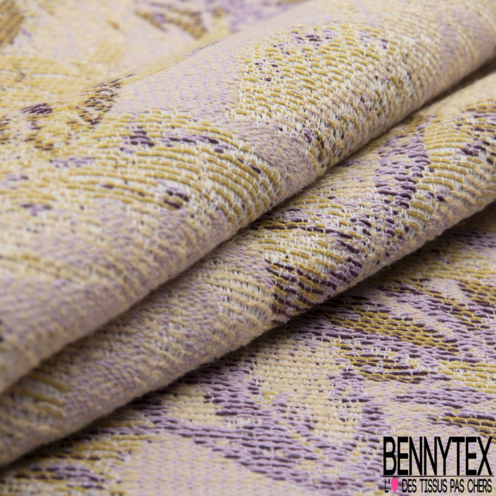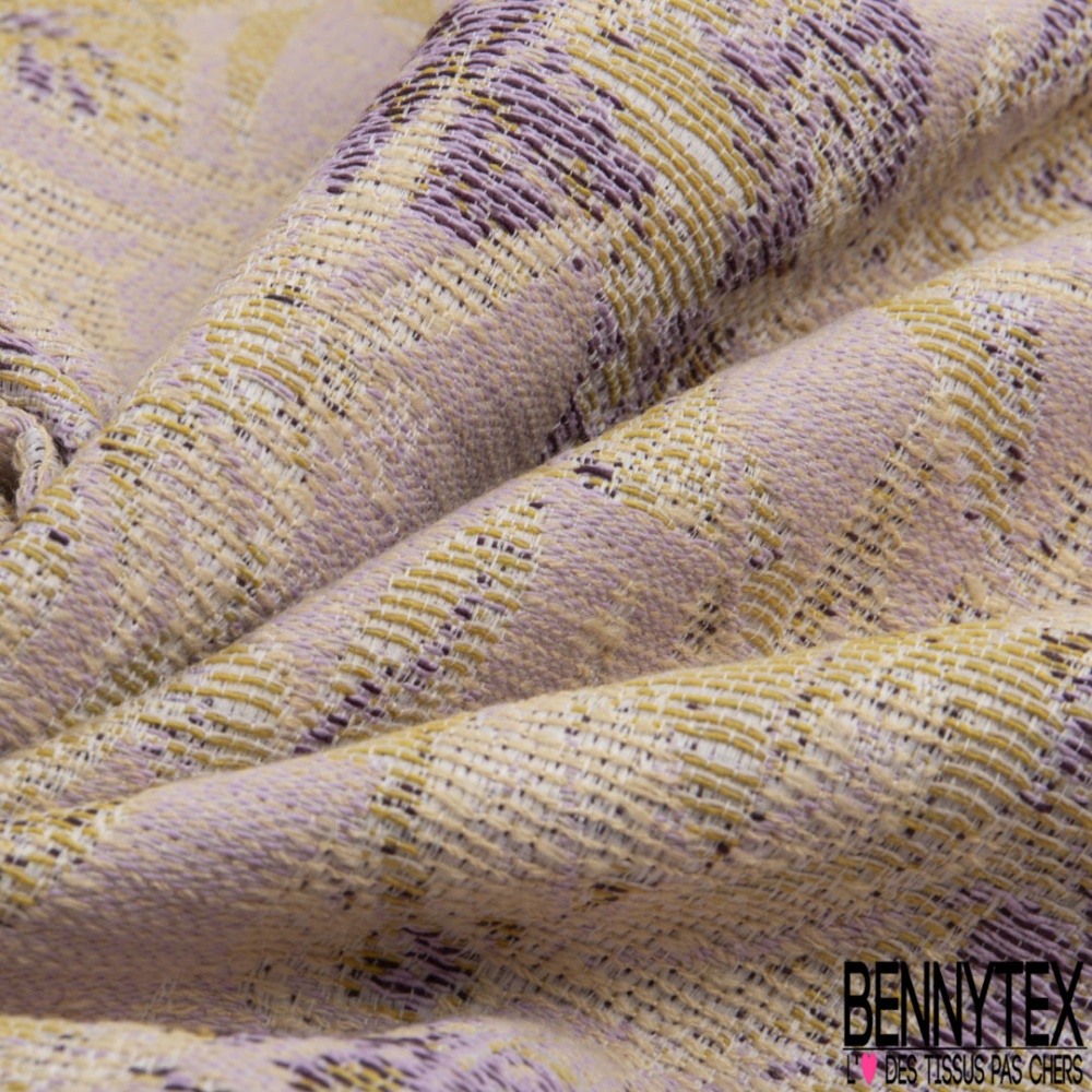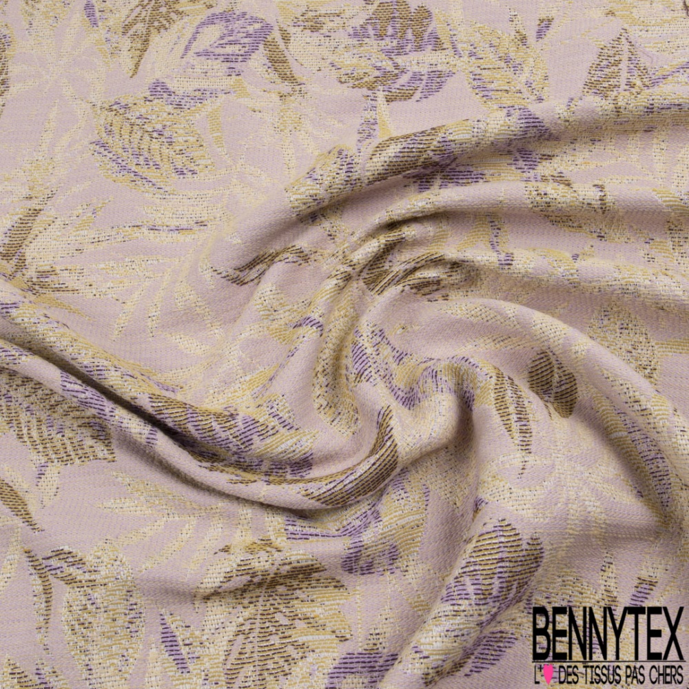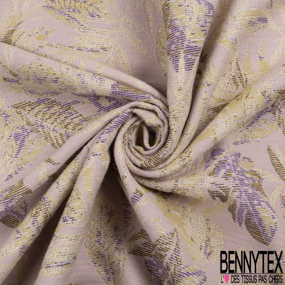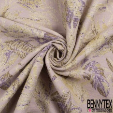 Jacquard imprimé plante tropicale anis pastel fond lilas pastel