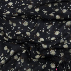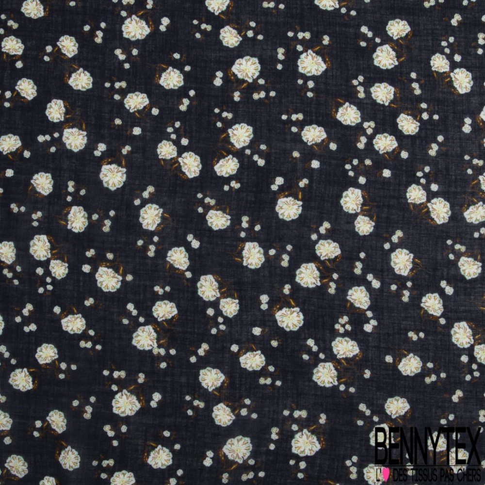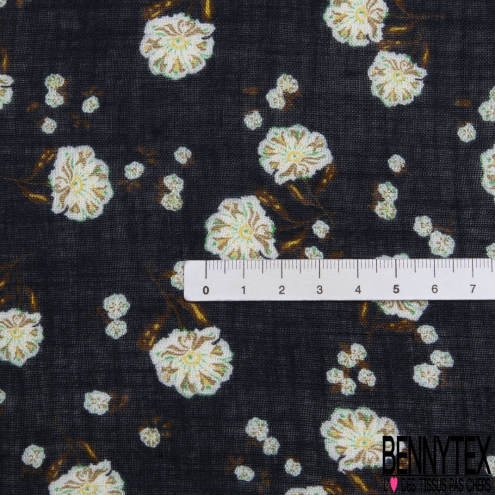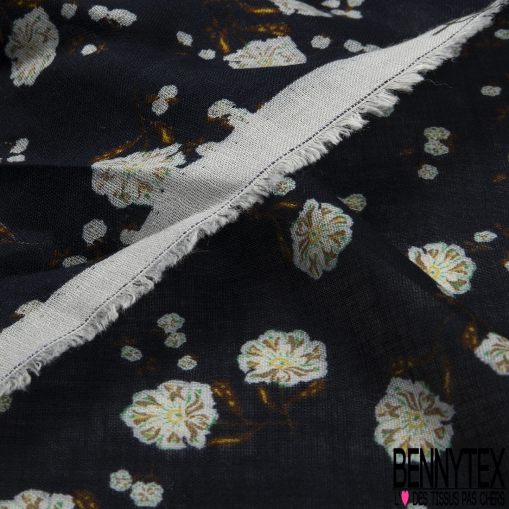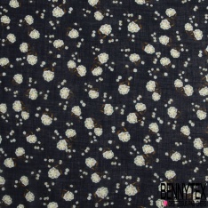 Voile lin imprimé floral cachemure fond bleu nuit