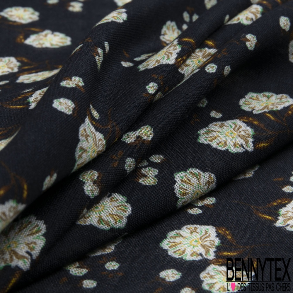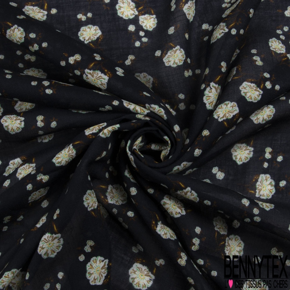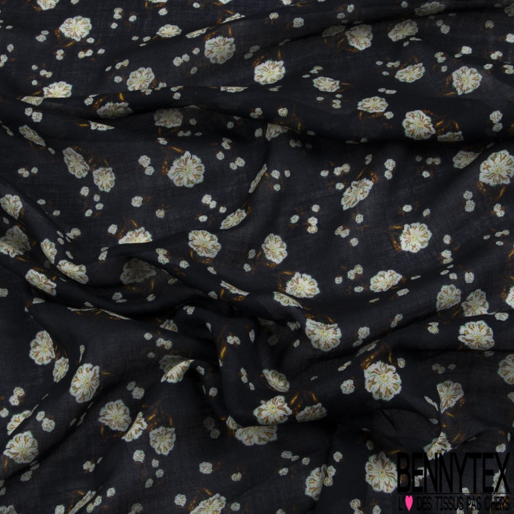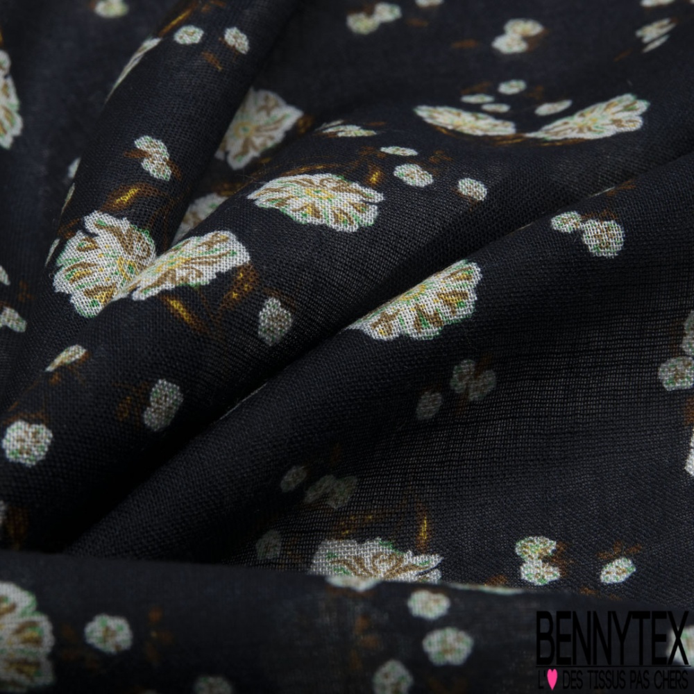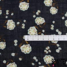 Le Voile lin imprimé floral cachemure fond bleu nuit est un tissu noble aux qualités diverses et variées: en effet, le lin est une fibre naturelle qui a la particularité d'être isolante en hiver et respirante en été.
