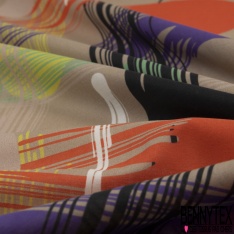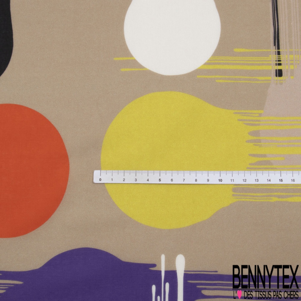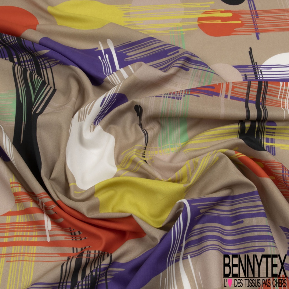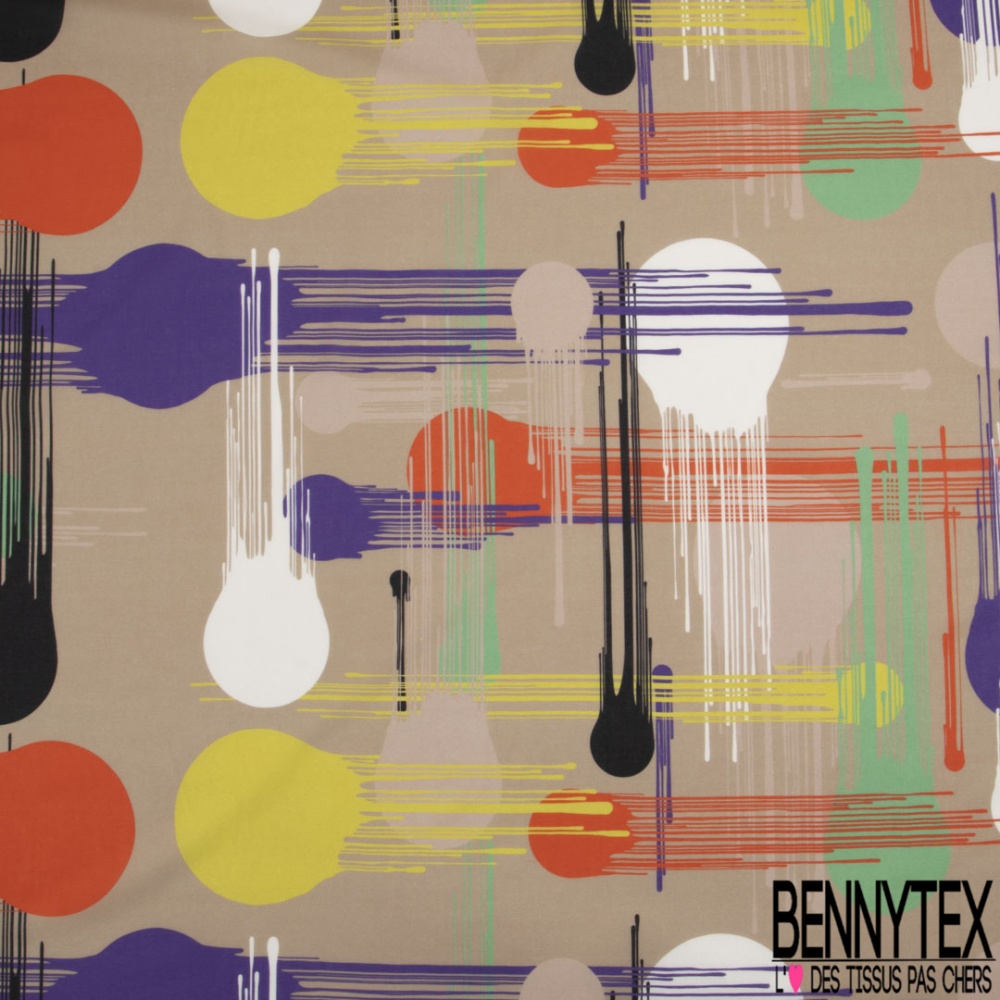 Voile de coton suisse élasthanne imprimé abstrait artistique multicolore fond sable mouillé