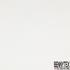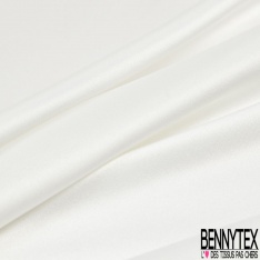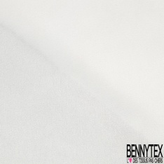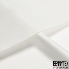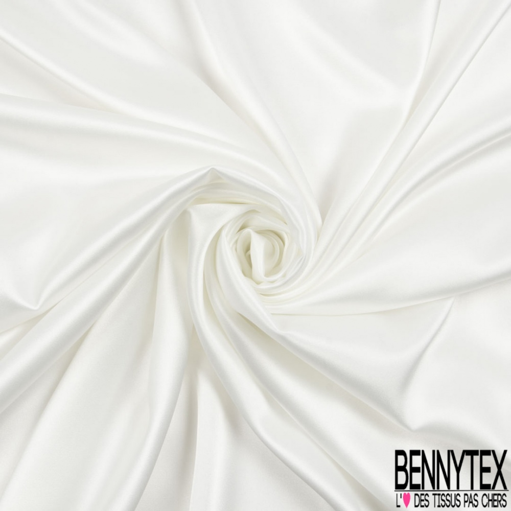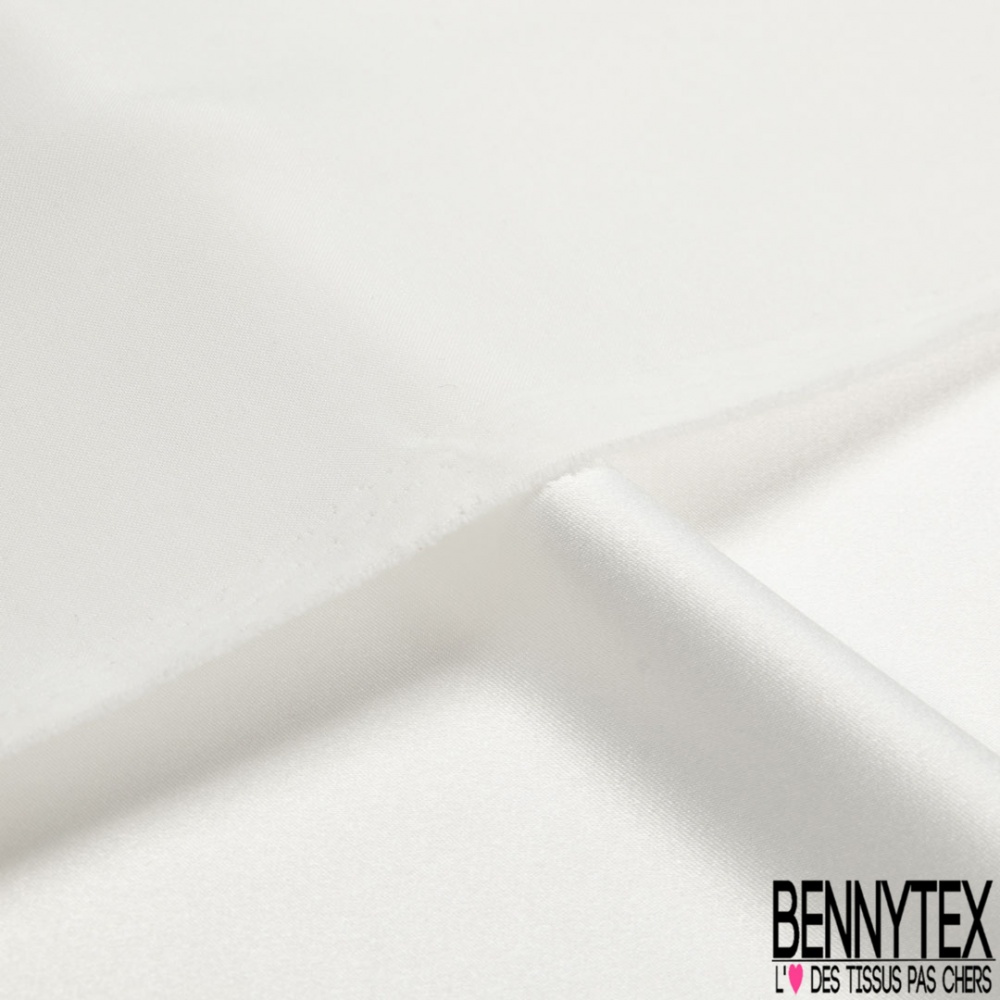 Le Satin polyester recyclé de luxe élasthanne blanc optique petite laize est de très belle qualité, très légèrement fluide et doux est brillant d'un côté et mat de l'autre.