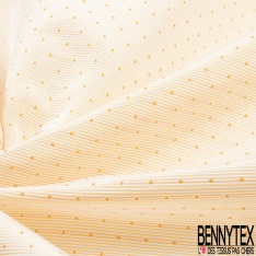 Jacquard polyester coton motif plumetis orange fluo fond ottoman blanc cassé