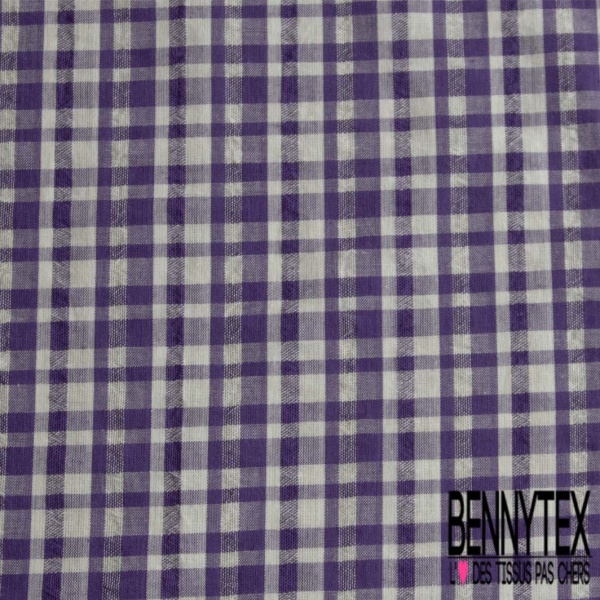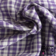 Coton tissé teint petit quadrillage écossais violet blanc optique