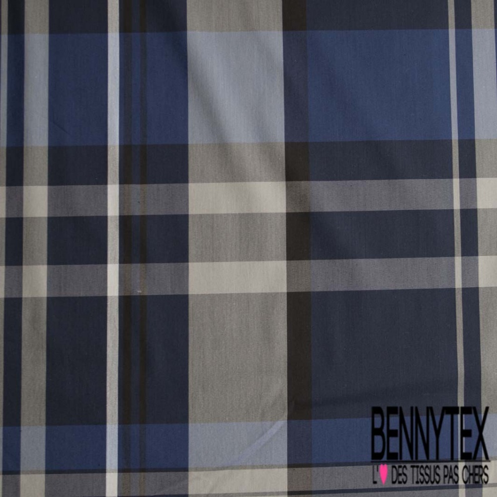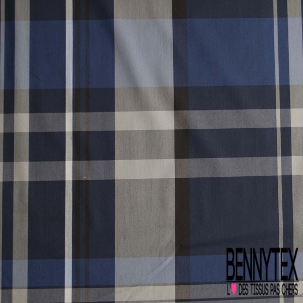 Description Motif : grands carreaux écossais ton marine bleu nuit gris clair noir