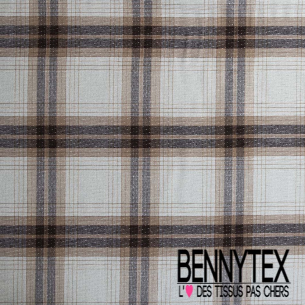 Coton gaze double face recto tartan brun beige fond crème verso crème