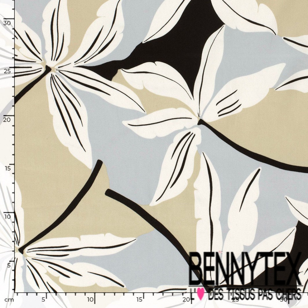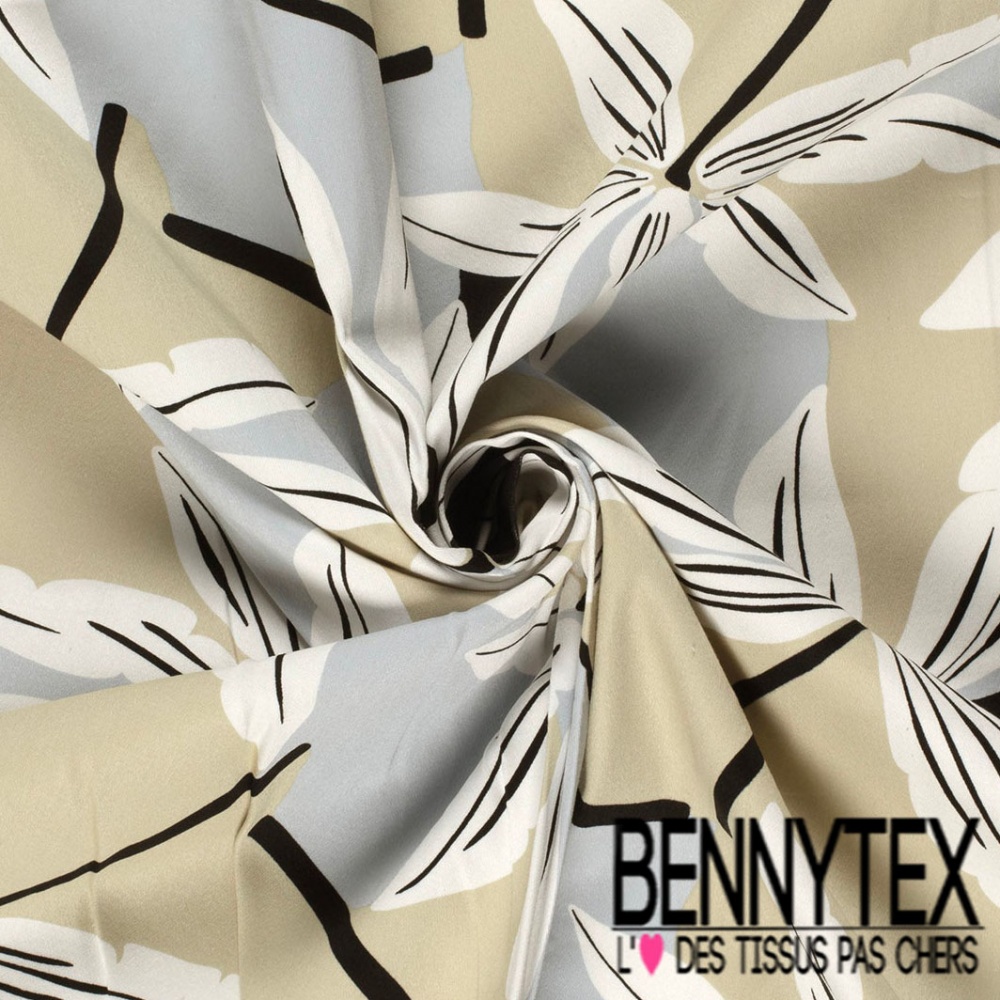 Coupon 3m Satin coton élasthanne imprimé grande fleur tropicale fond sable mouillé oeko tex tex