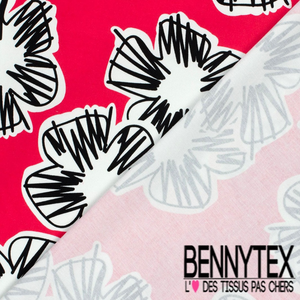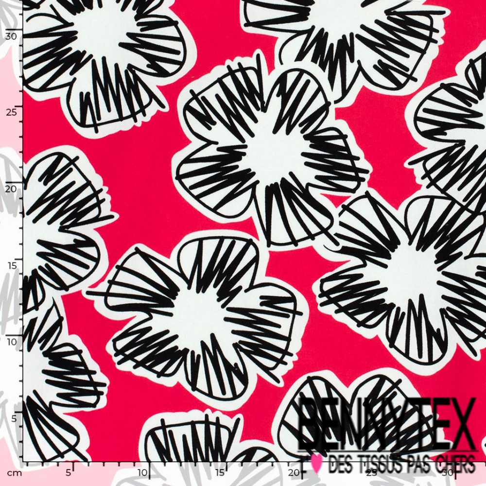 Coupon 3m Satin coton élasthanne imprimé grande fleur graphique fond grenadine oeko tex