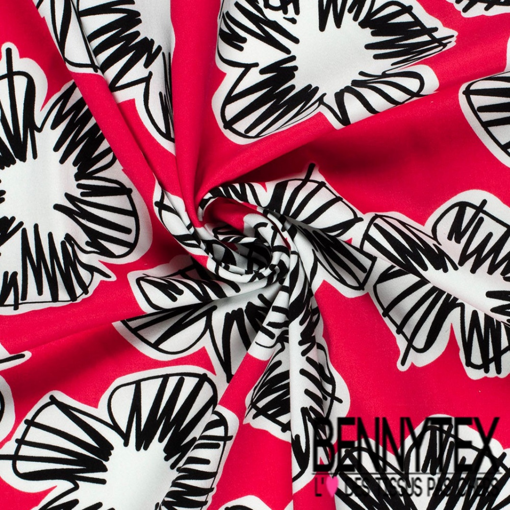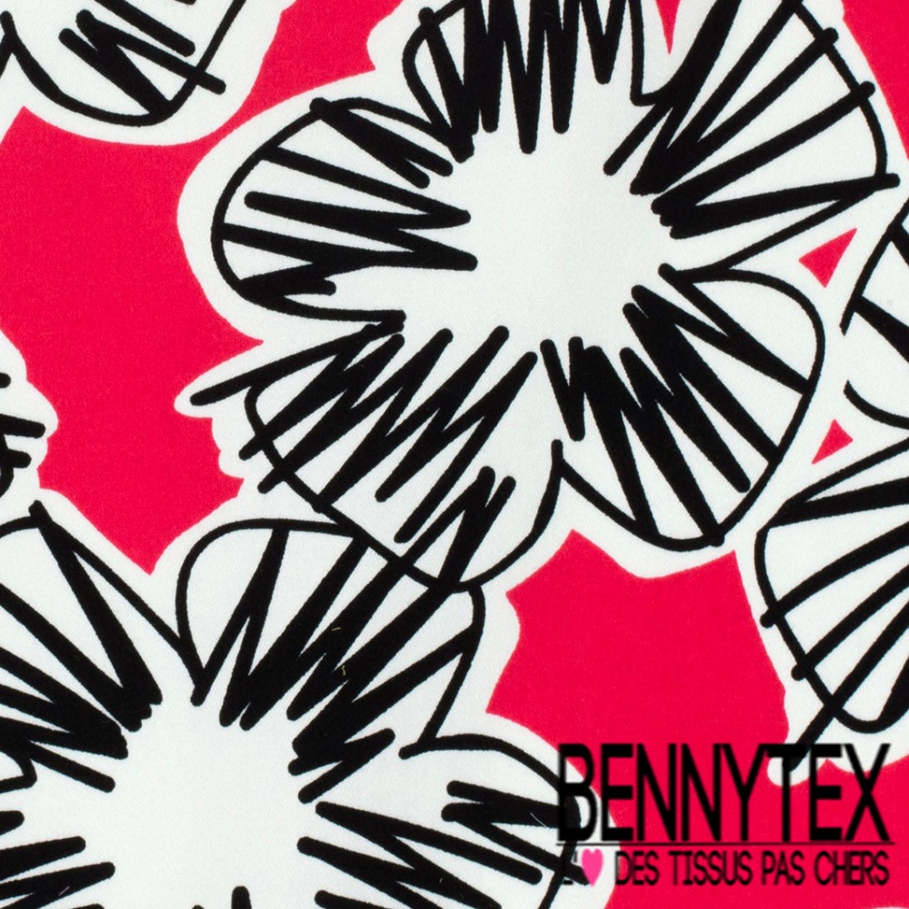 Ce Satin coton élasthanne imprimé grande fleur graphique fond grenadine oeko tex sera idéal pour la confection de robes fiftie's, de jupes rétro,pour robe de mariée, cérémonie, de pantalons, de chemisiers et pour de la décoration tel que housses de couette , coussins déco...