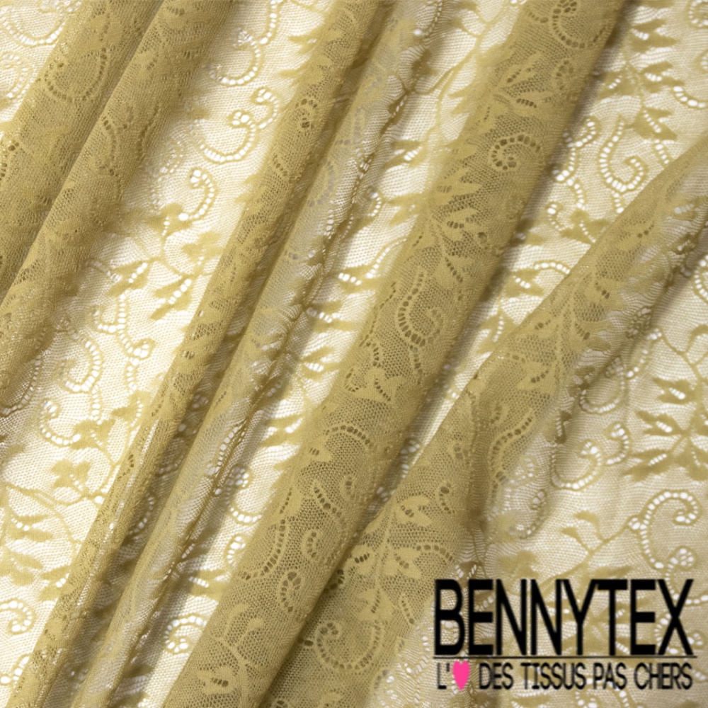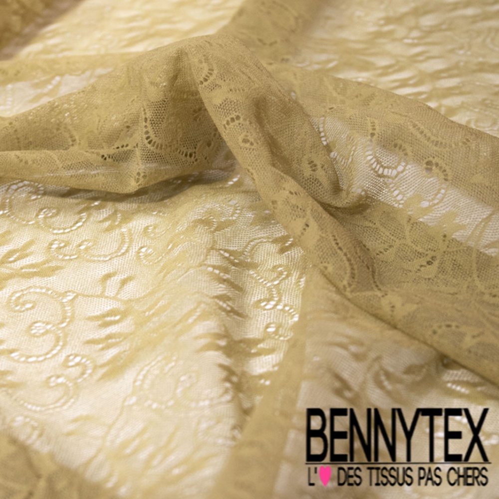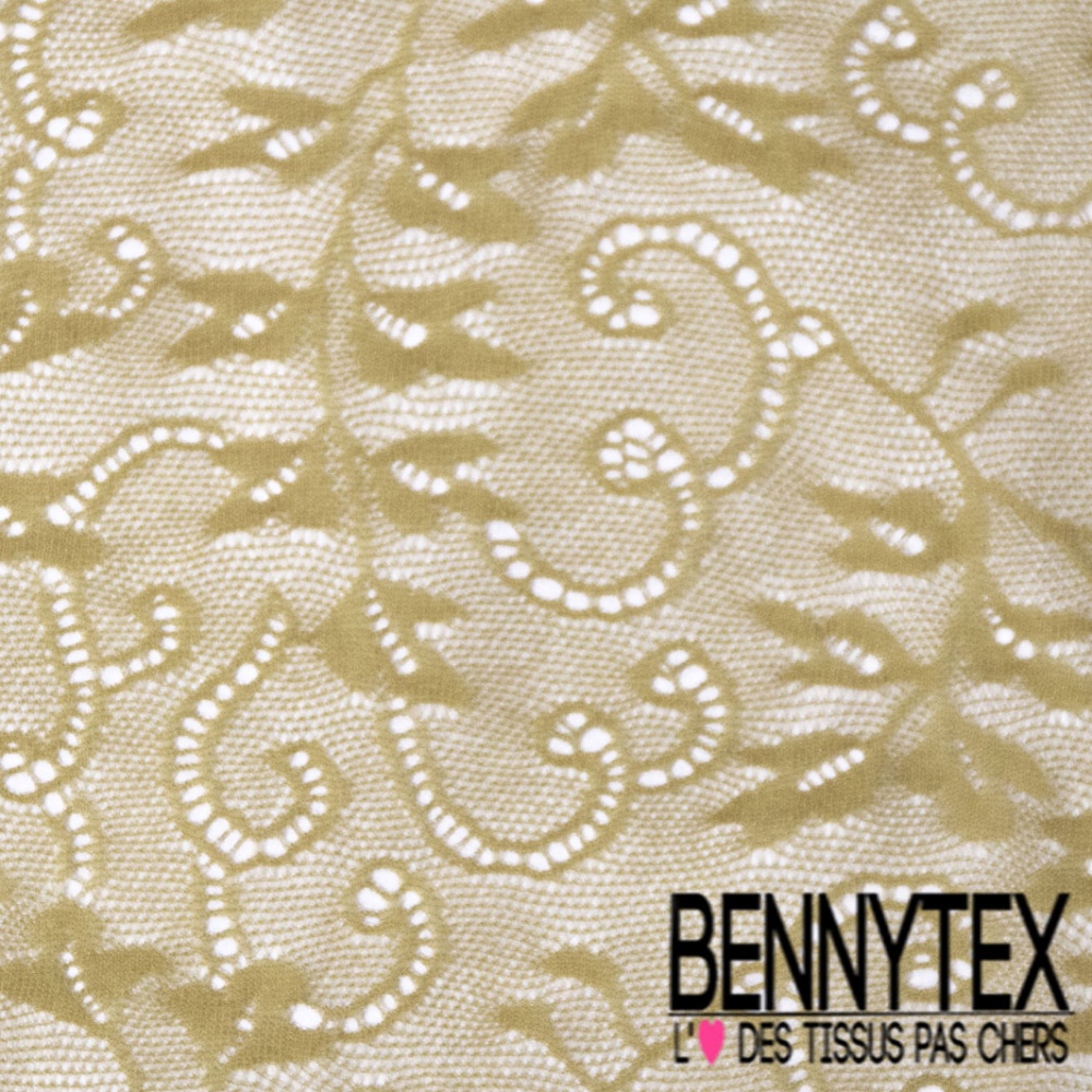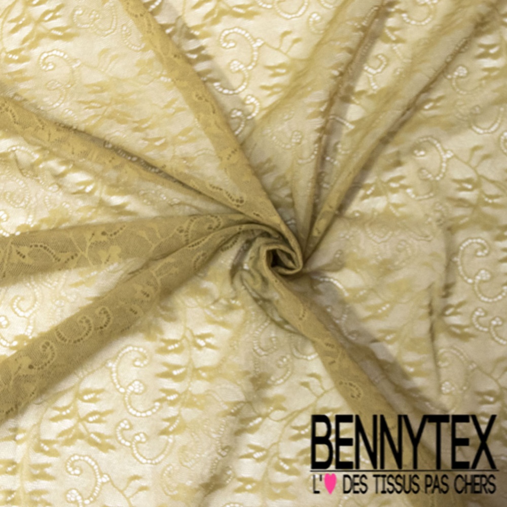 Dentelle polyamide fine cachemire baroque ton sur ton jaune ceylan