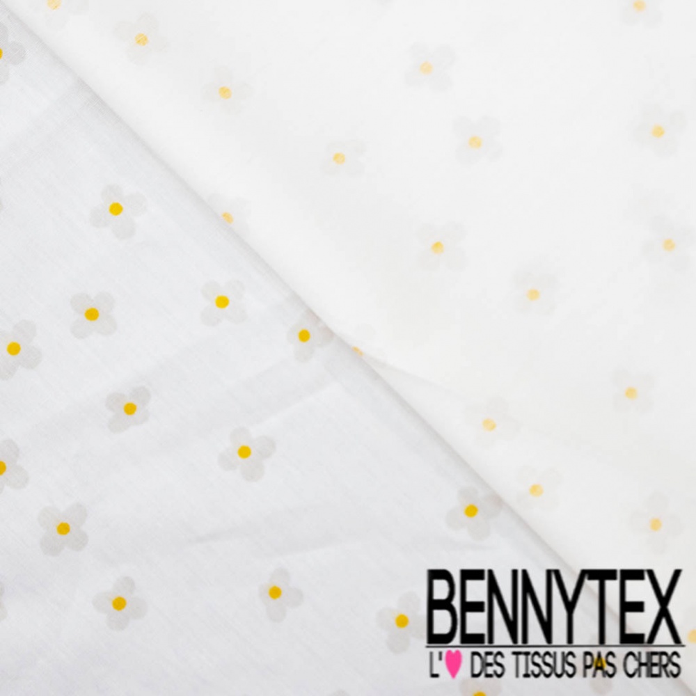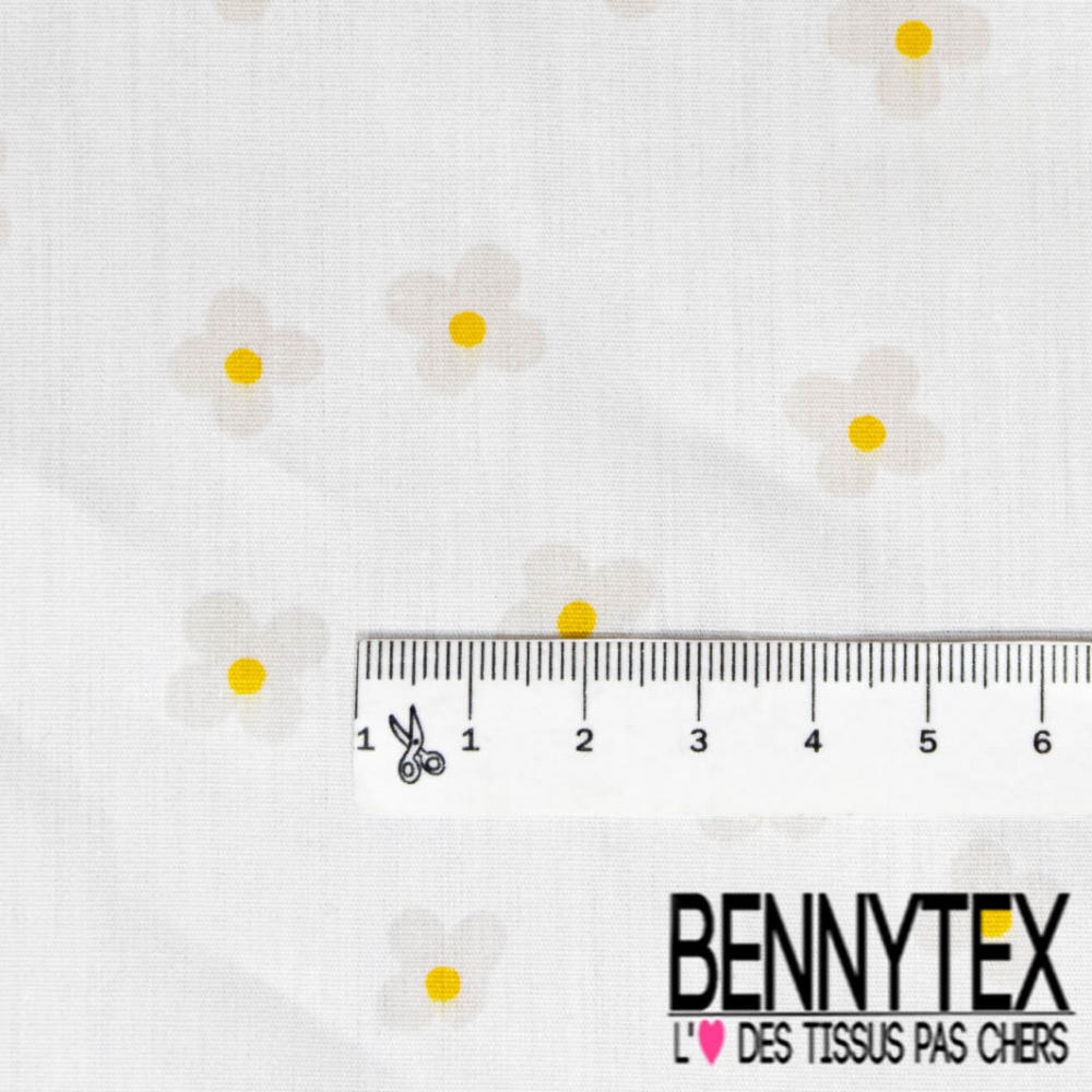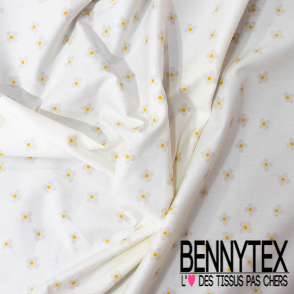 Coupon 3m Popeline coton 120 fils imprimé petite fleur blanche fond blanc discret