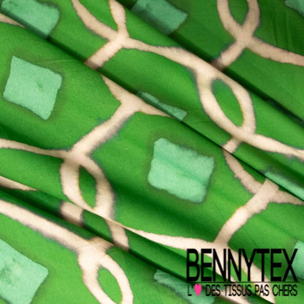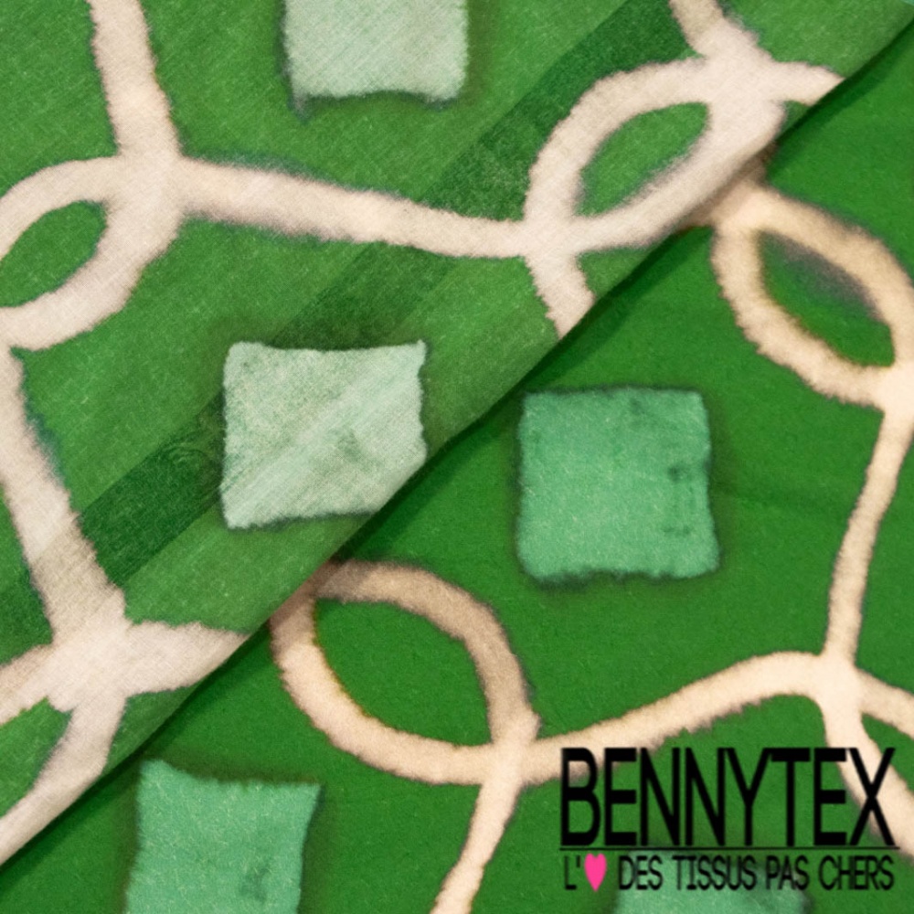 Voile de coton digital imprimé africain abstrait gazon blanc cassé