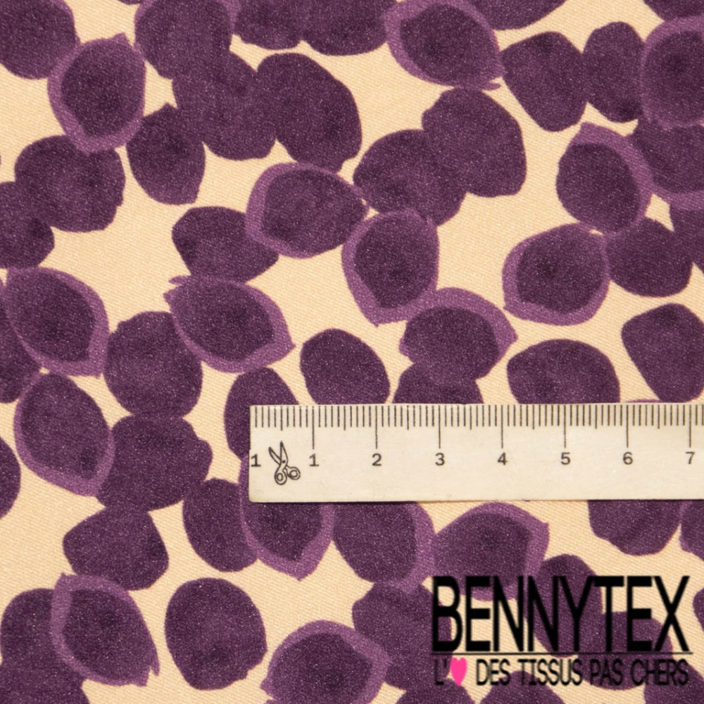 Twill satin polyester digitale motif pois stylisé aubergine fond chair