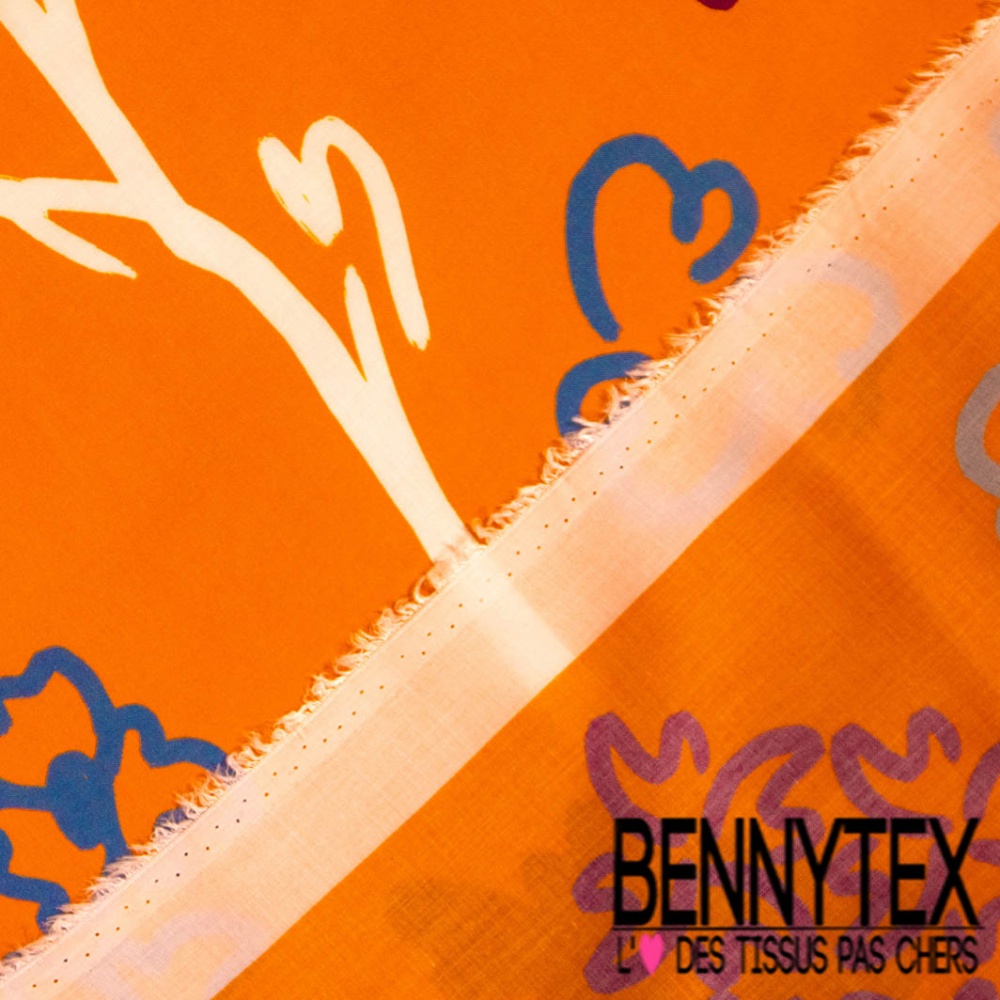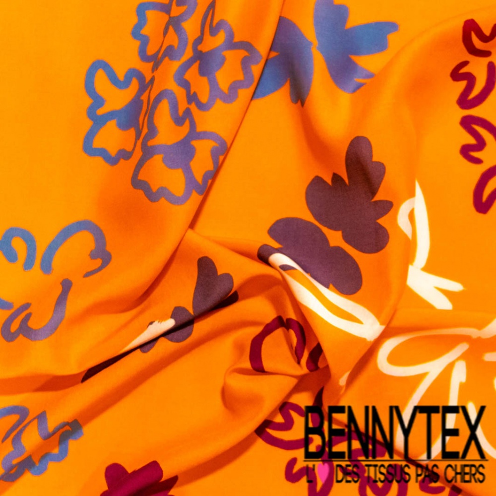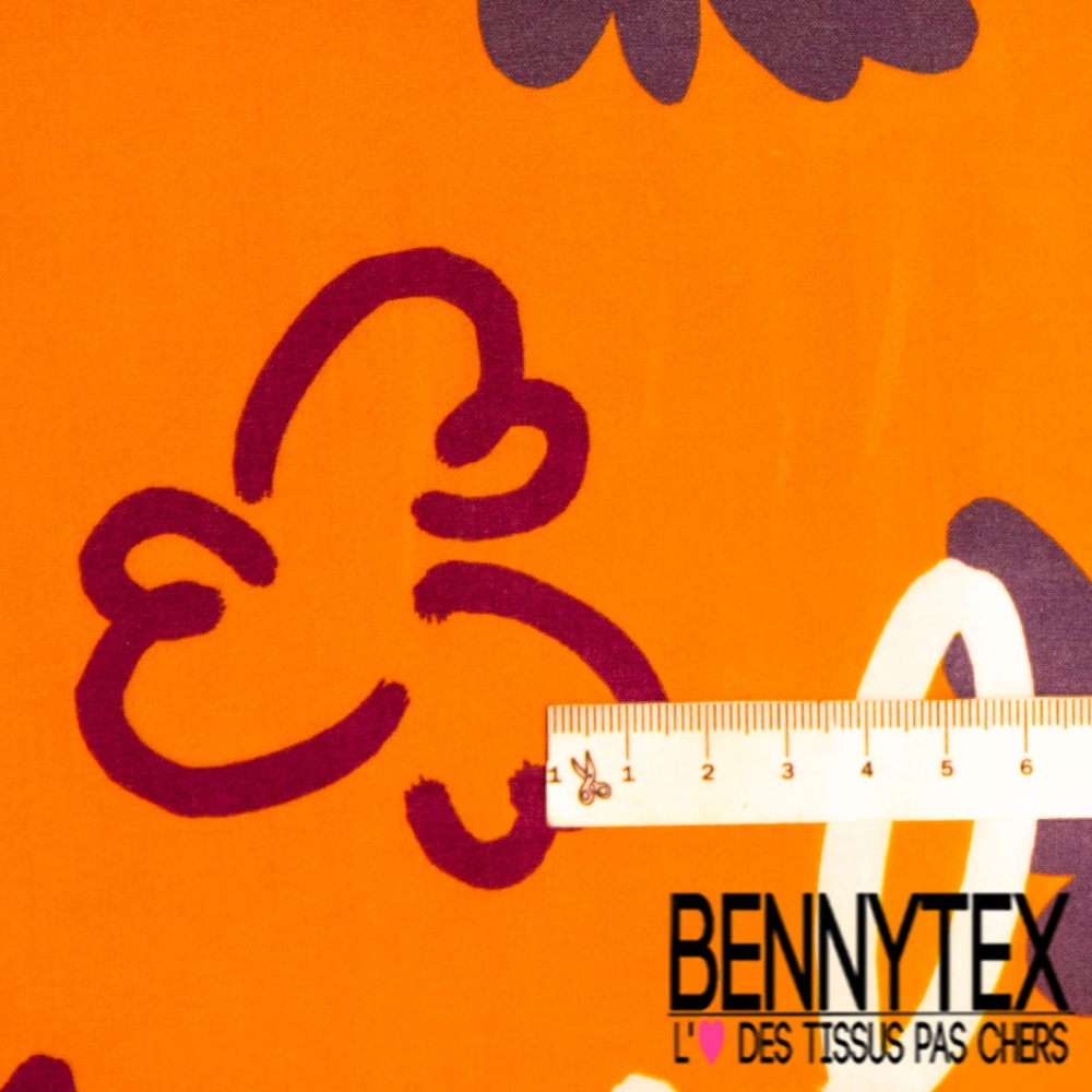 Fibranne viscose digitale imprimé floral stylisé fond mandarine