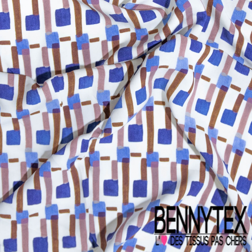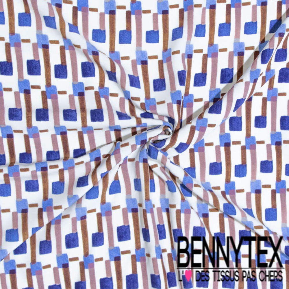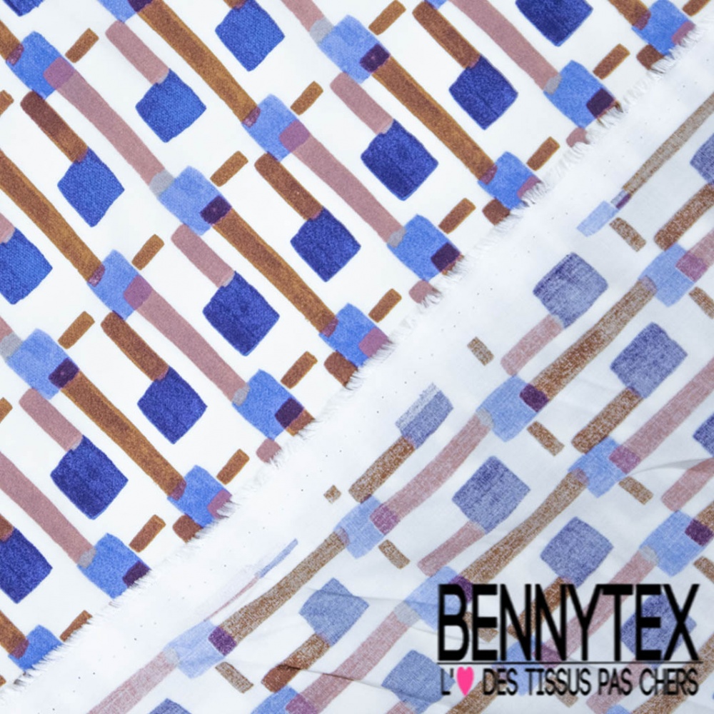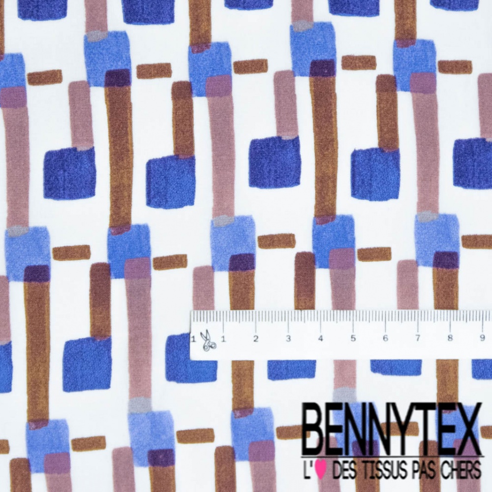 Fibranne viscose digitale imprimé géométrique pictural fond blanc cassé