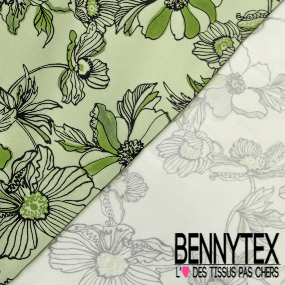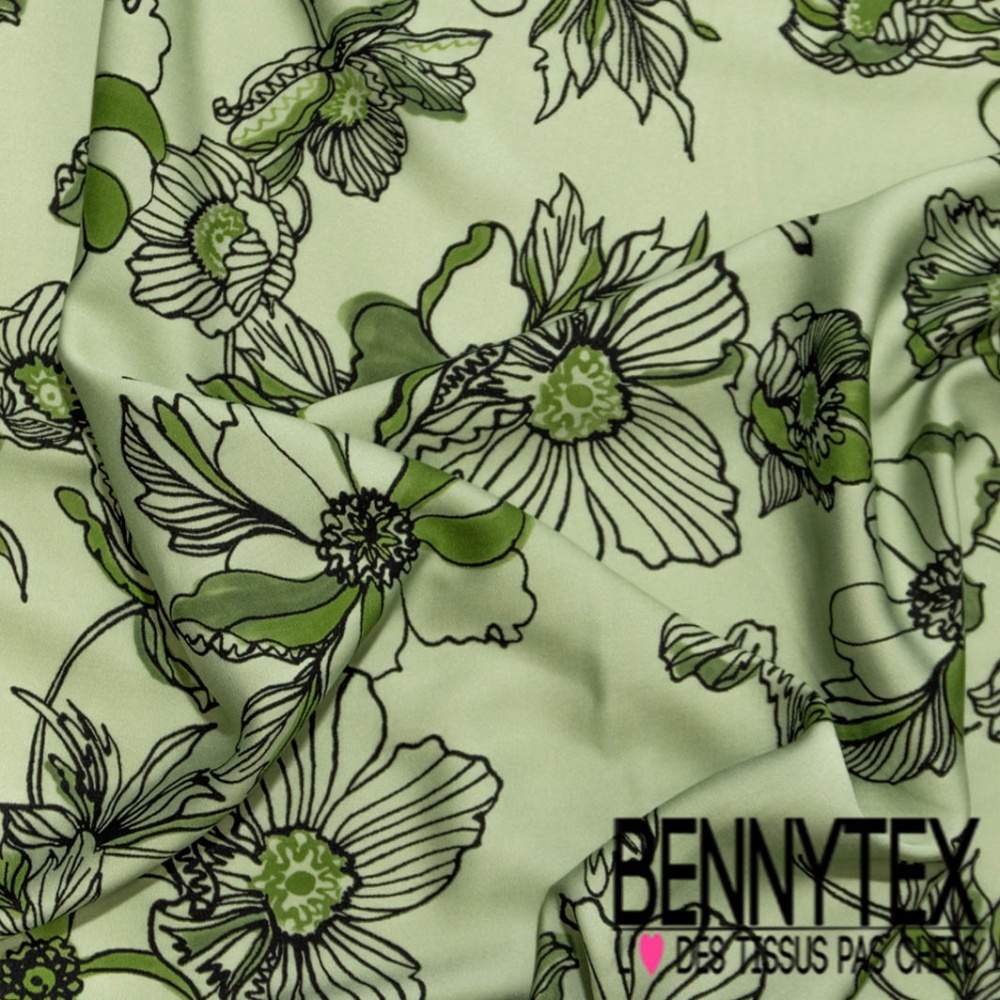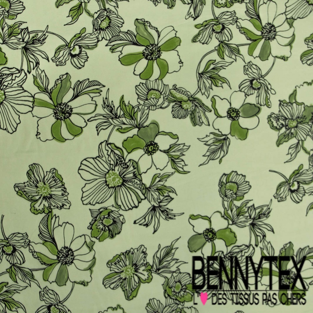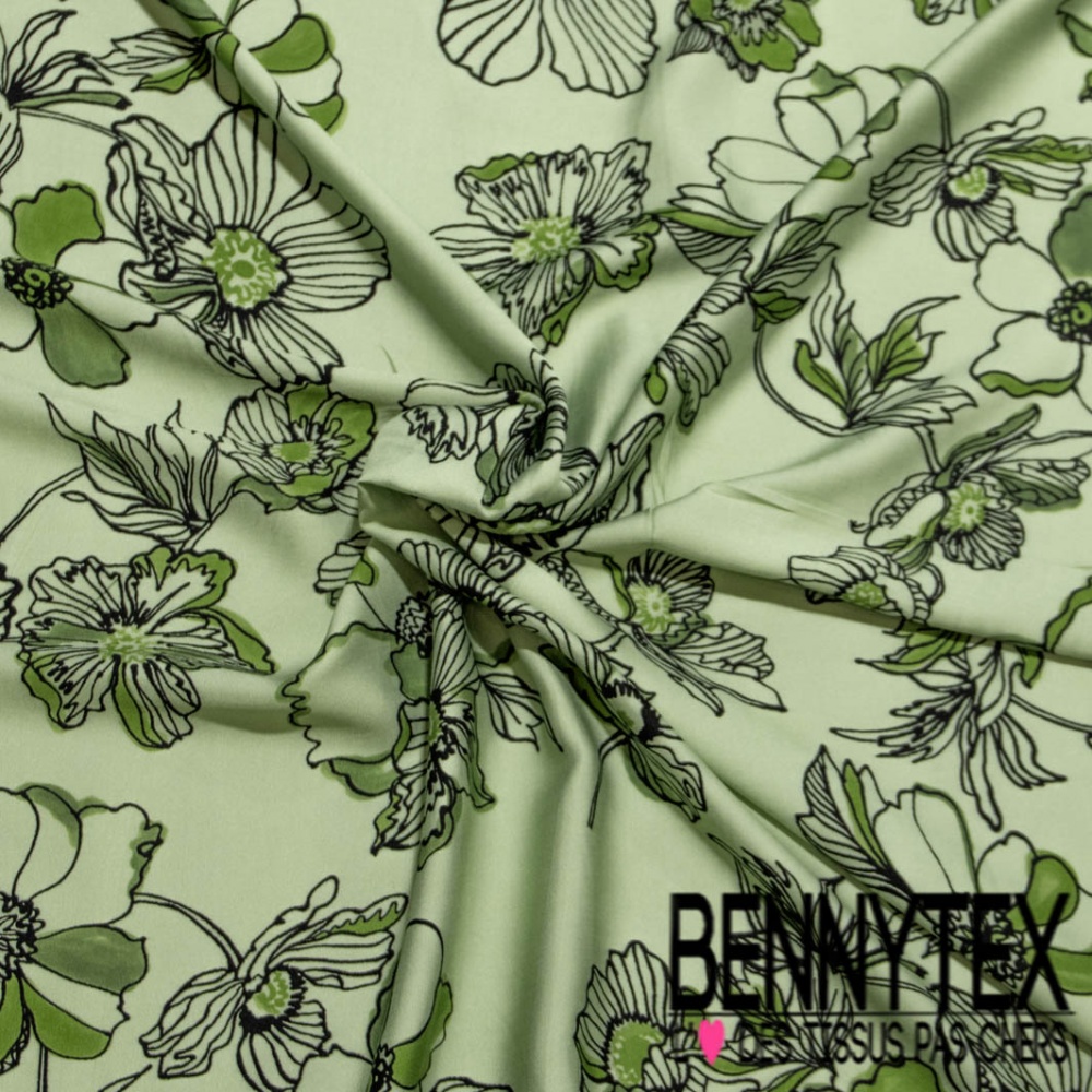 Fibranne viscose digitale élasthanne satinée imprimé floral au trait fond amande