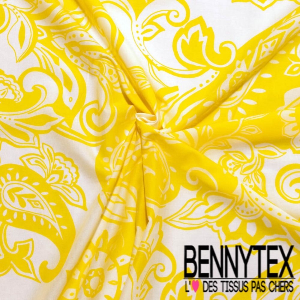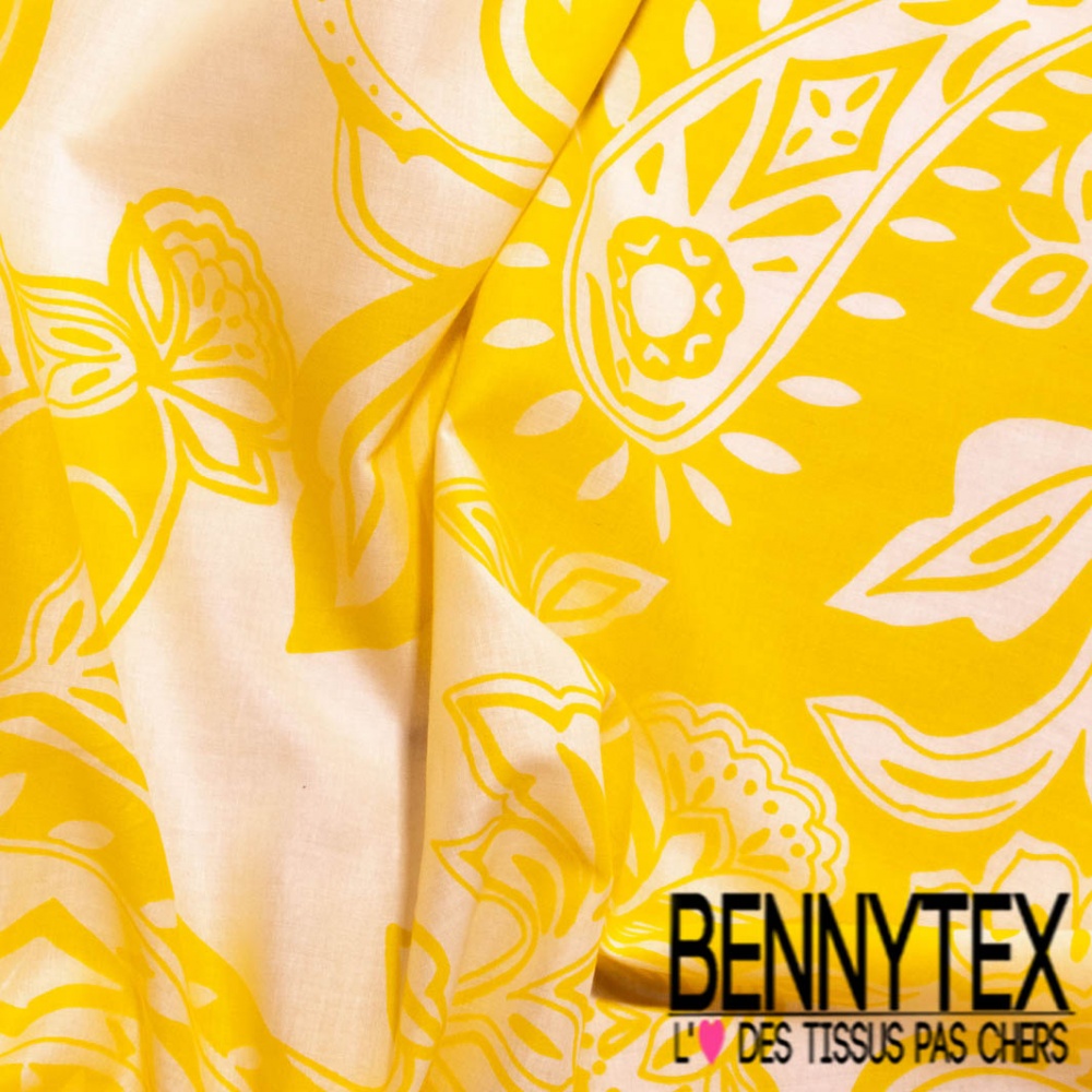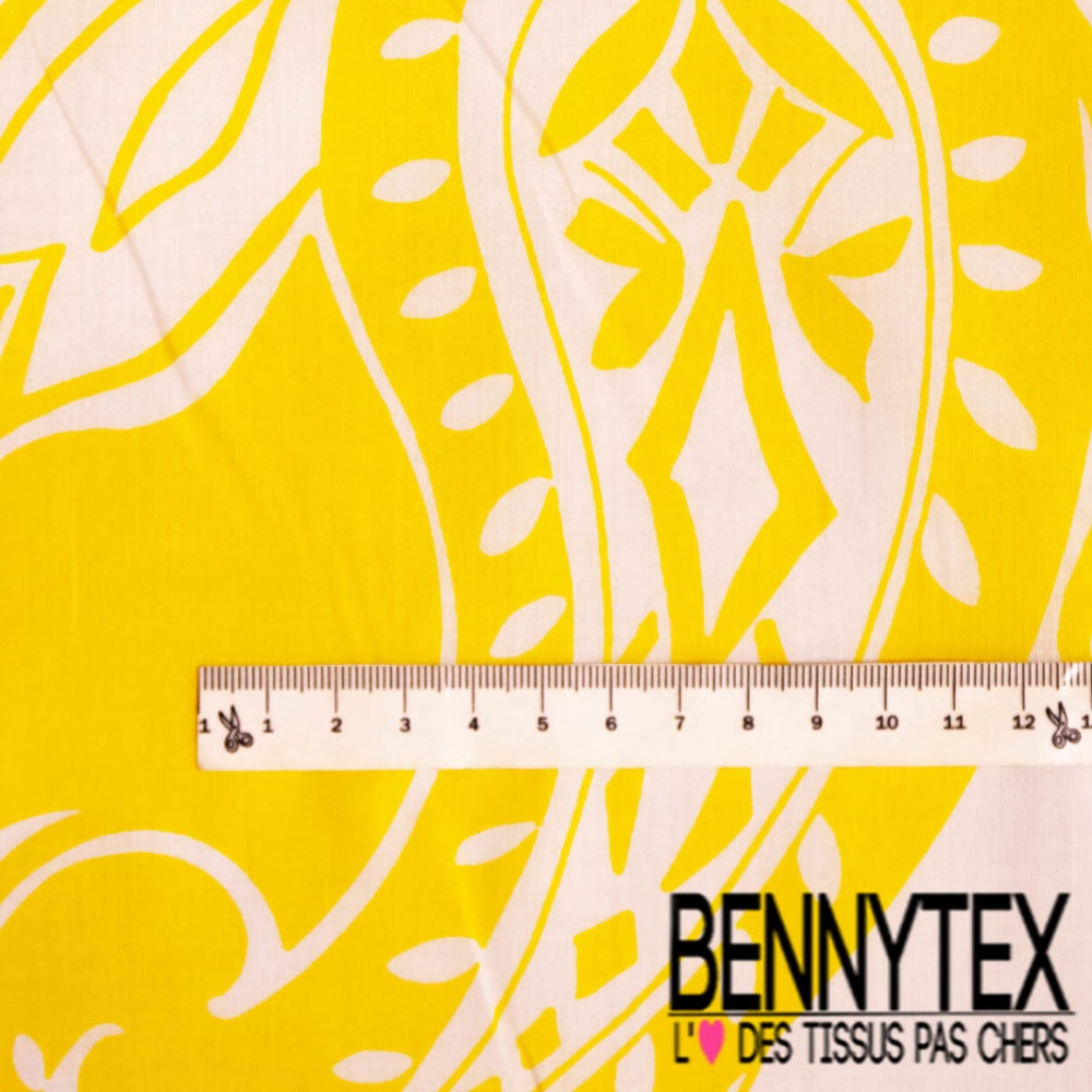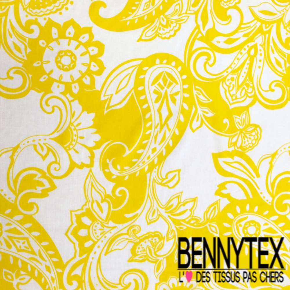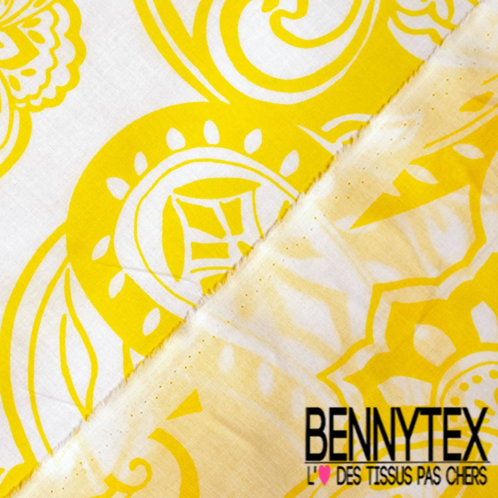 Voile de coton digital imprimé grand cachemire banane fond blanc discret