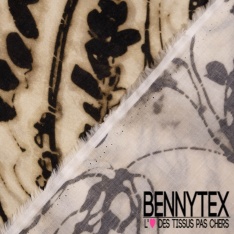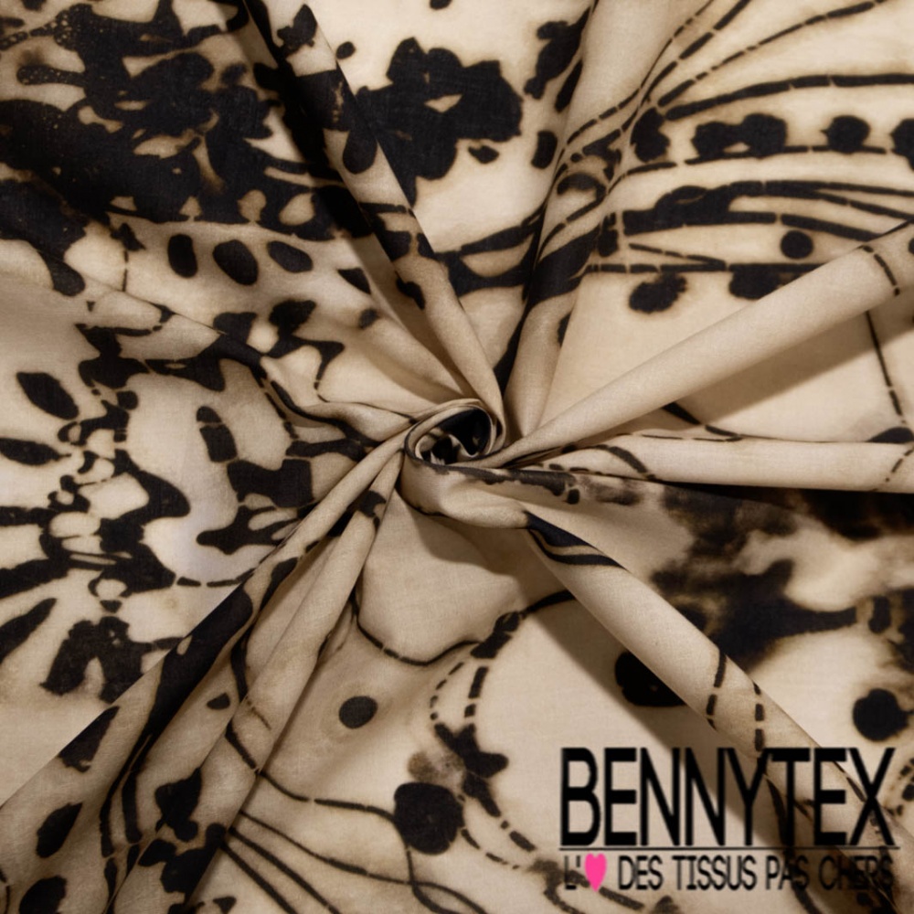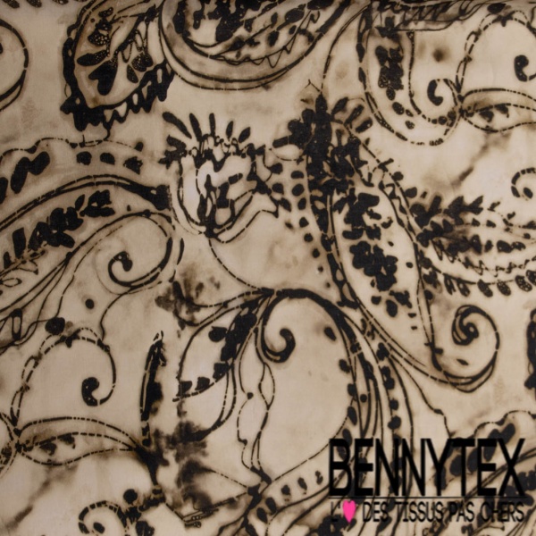 Voile de coton digital imprimé grand cachemire café fond beige café aquarelle
