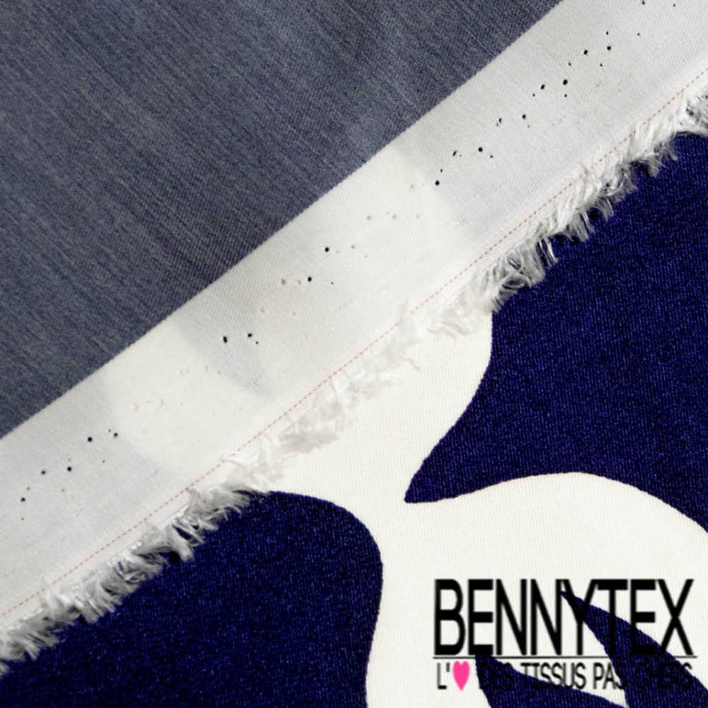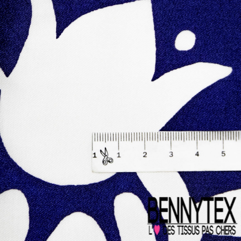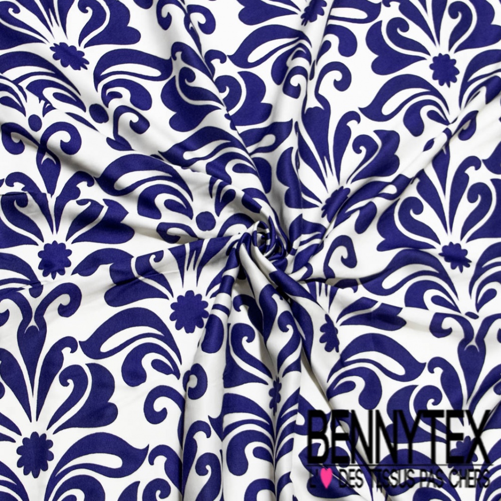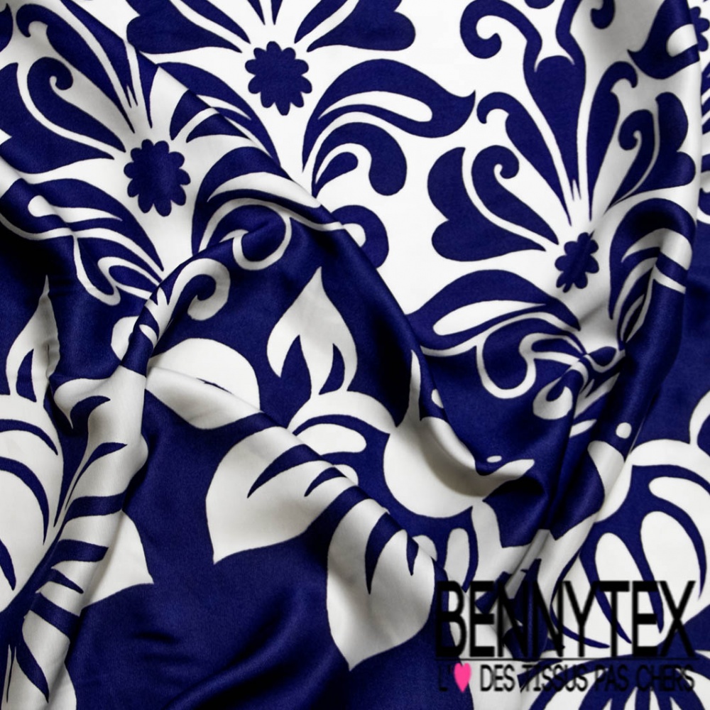 Twill satin viscose imprimé digital simple base floral cachemire blanc discret fond bleu capitaine