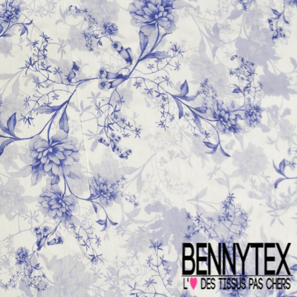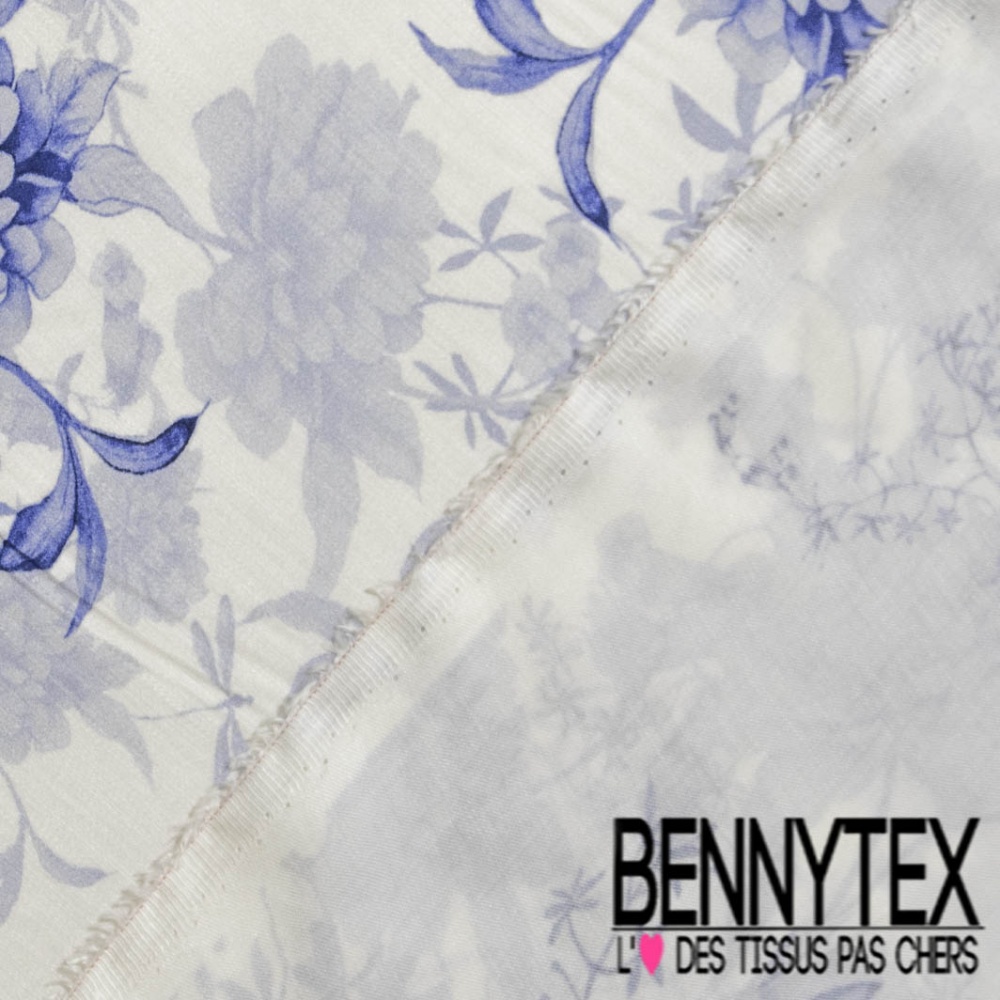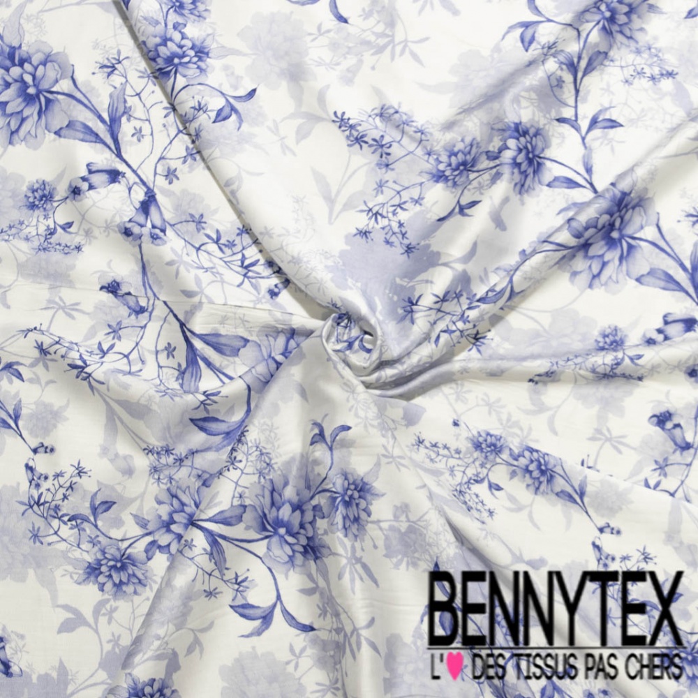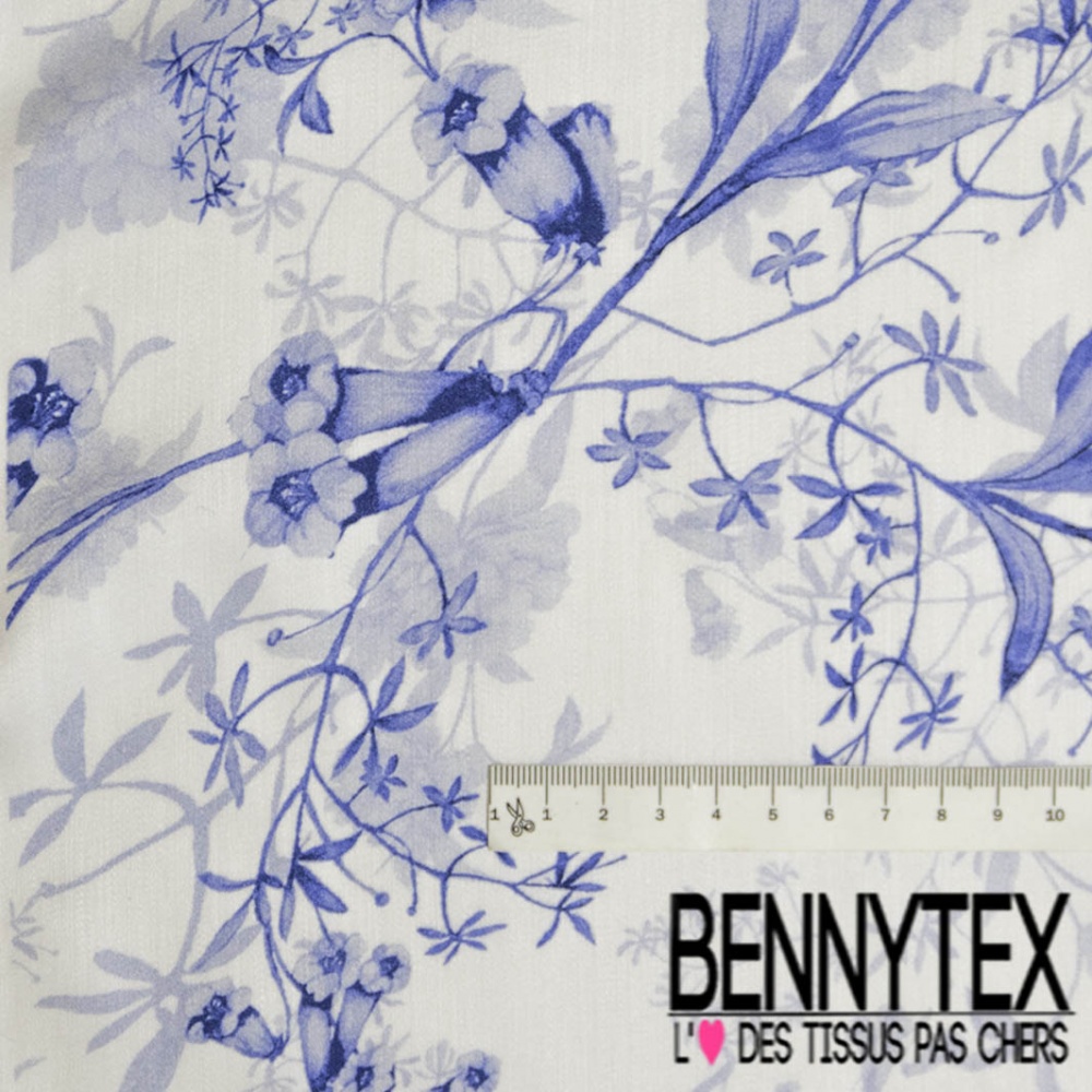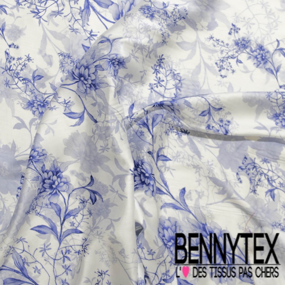 Fibranne satin viscose imprimé digital planate sauvage bleu vif fond blanc optique