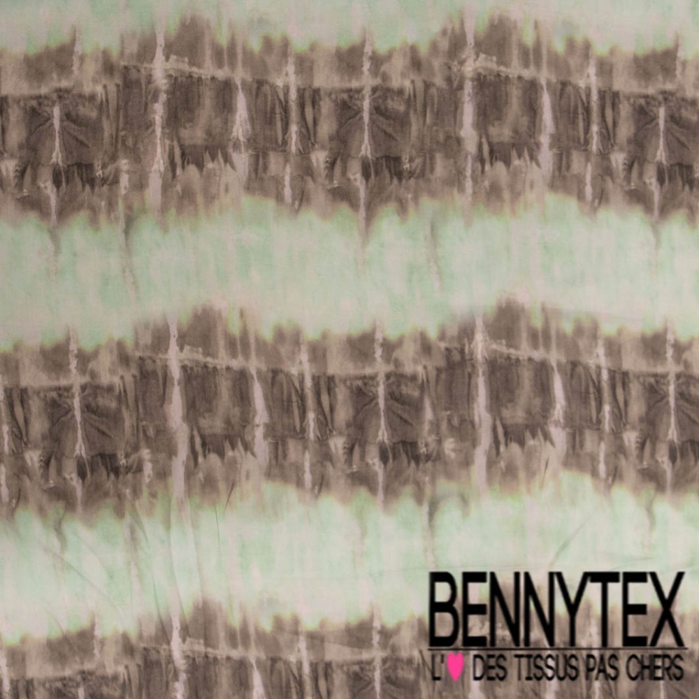 Fibranne viscose imprimé digital rayure horizontale trie and die vert d'eau charbon blanc discret