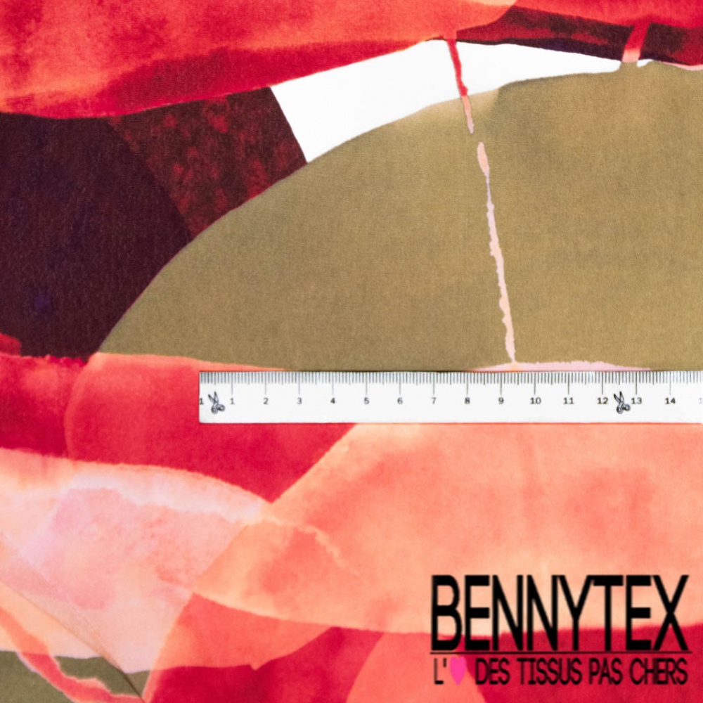Crêpe viscose digital motif enchevêtrement de grande bulle ton rouge beige blanc cassé noir