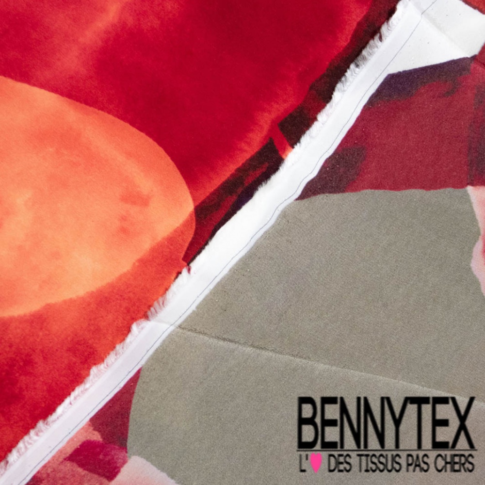 Crêpe viscose digital motif enchevêtrement de grande bulle ton rouge beige blanc cassé noir